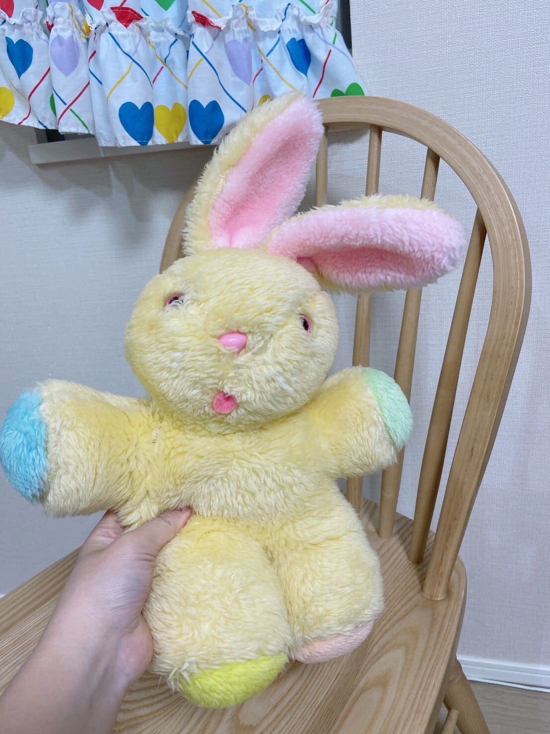 Vtg ぬいぐるみ 中くらいサイズ イエローうさぎ