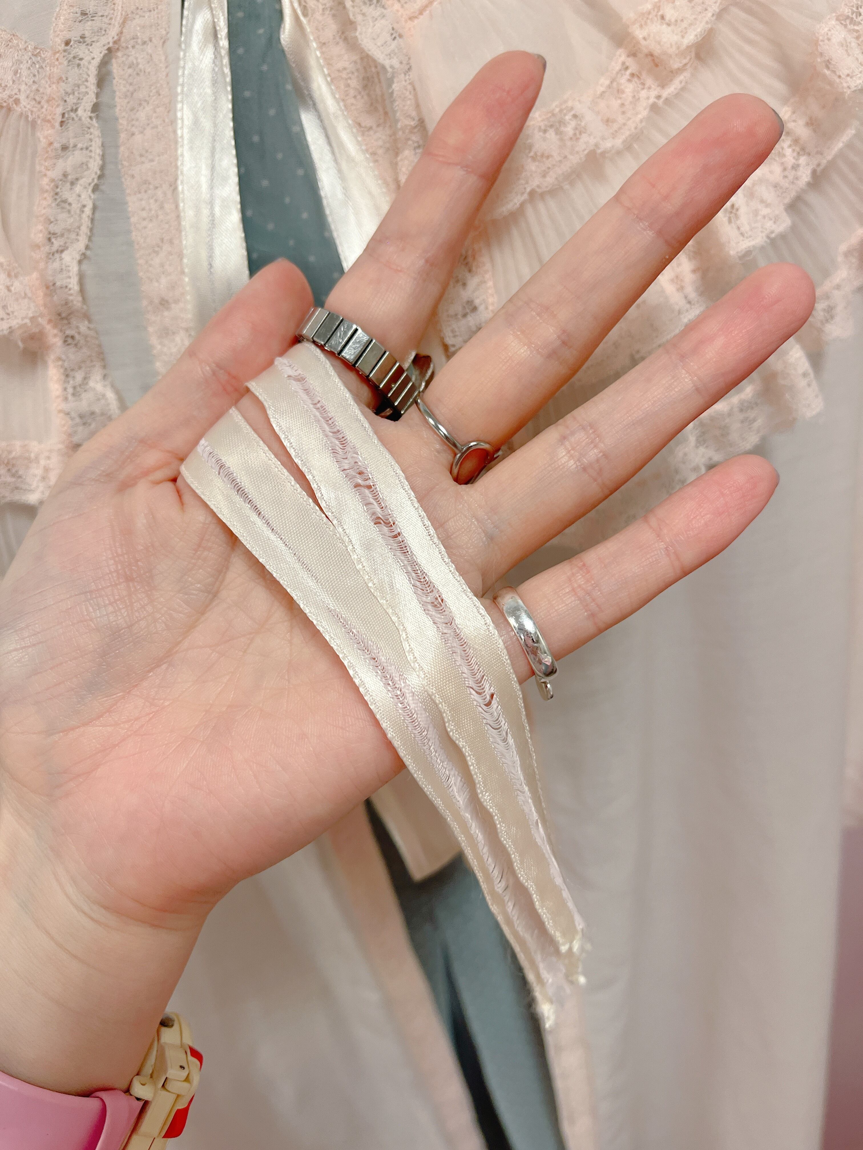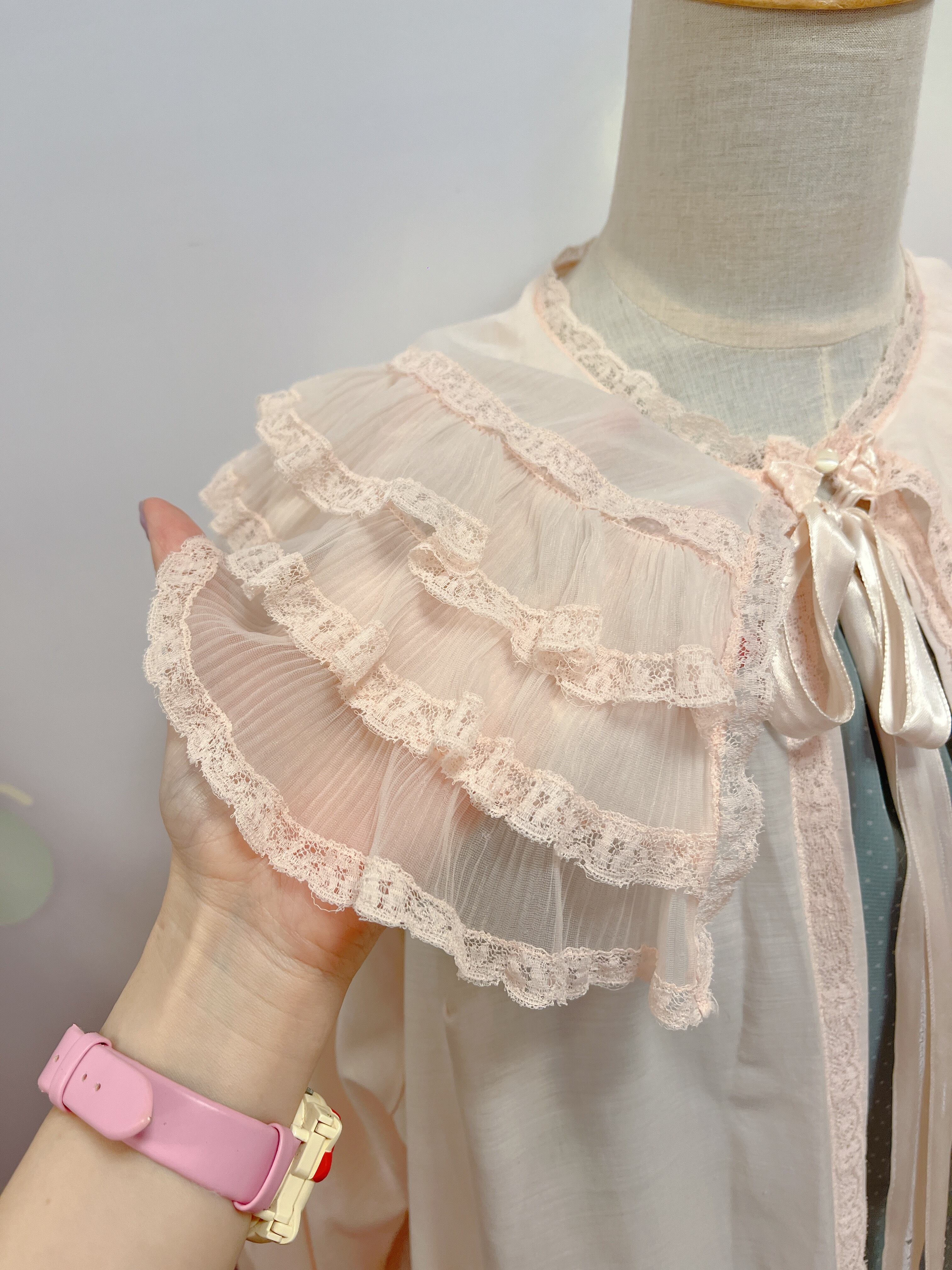Vtg ランジェリー羽織り ピーチピンク フリル襟