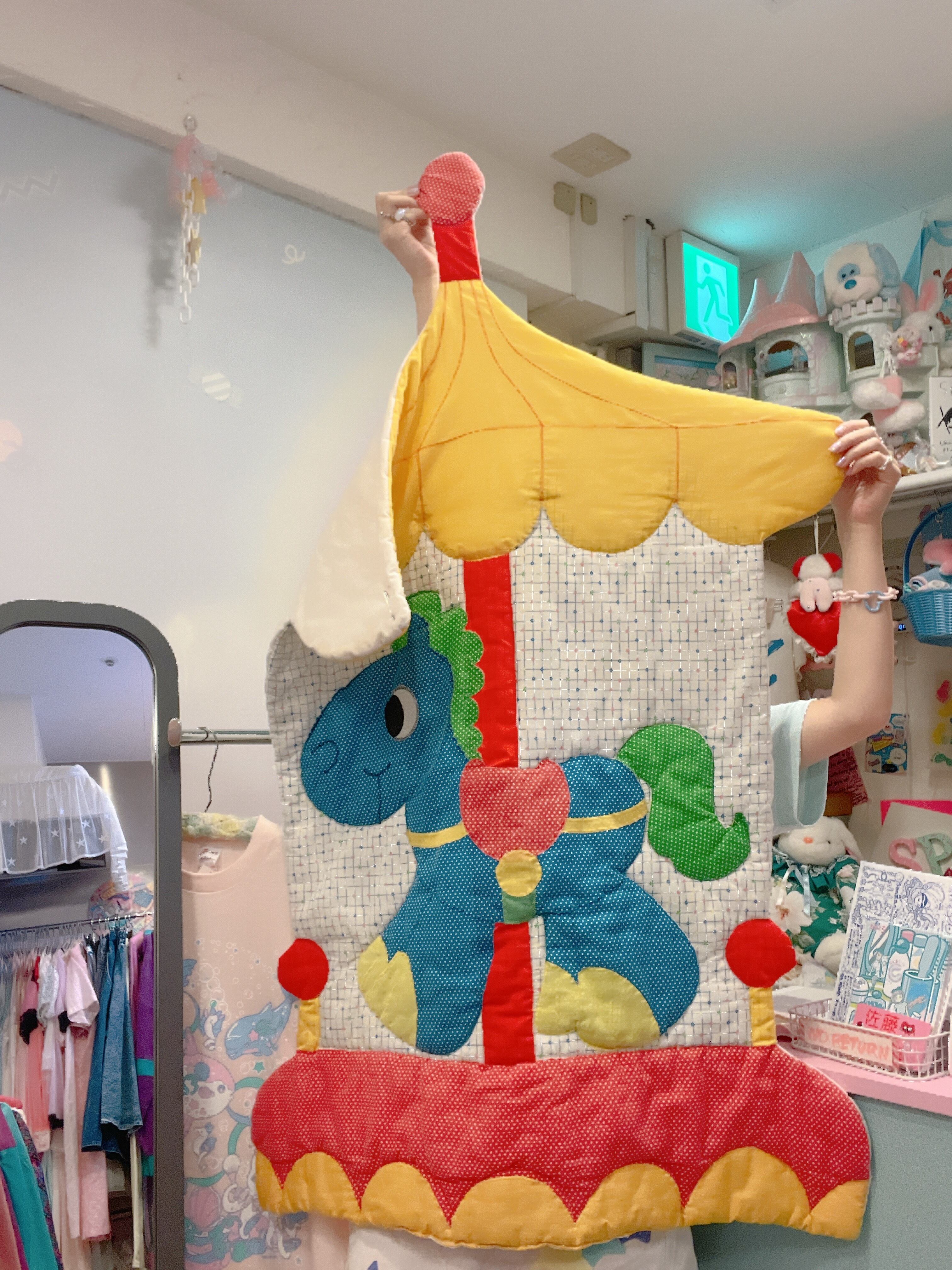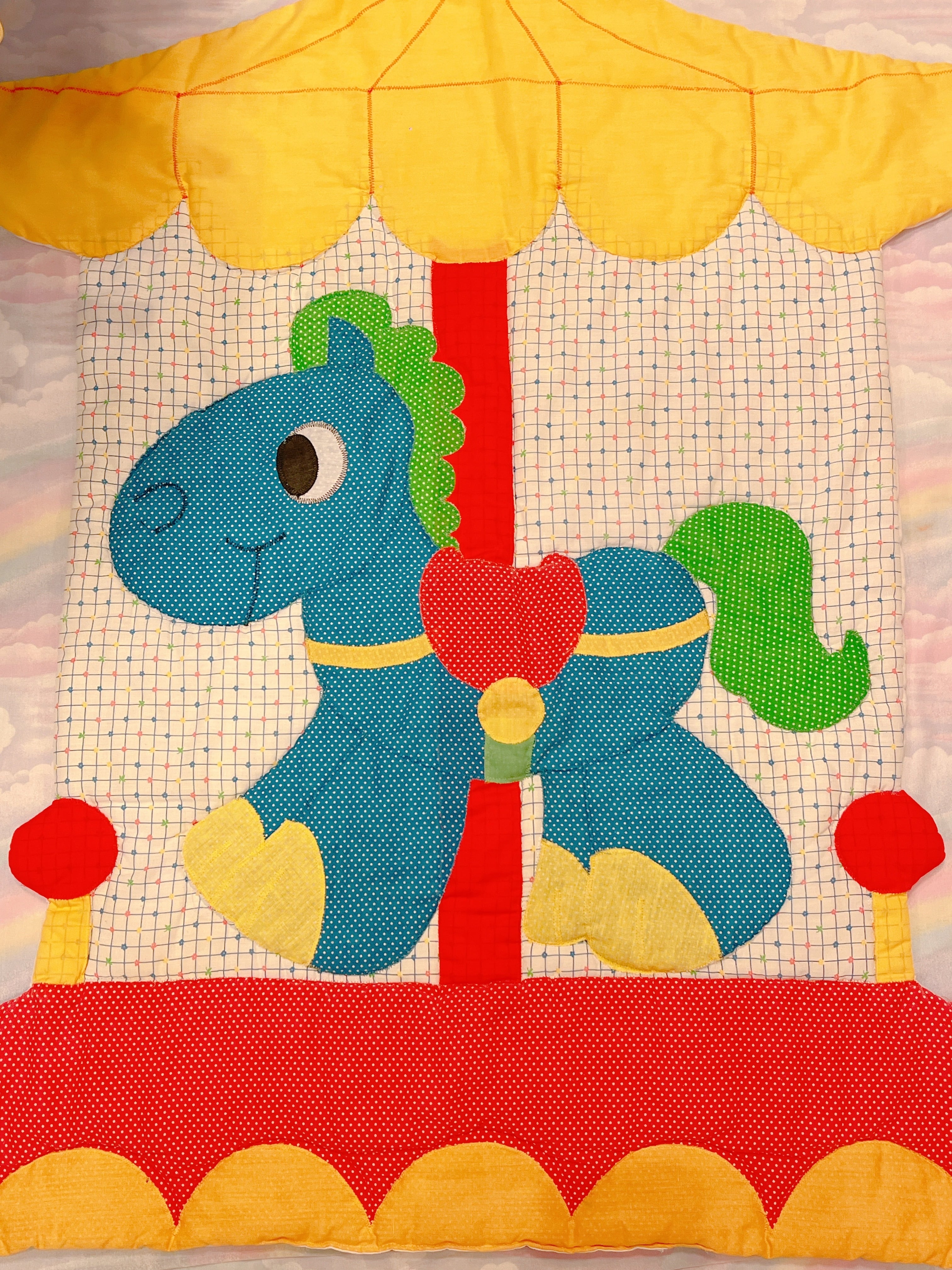 Vtg キルトウォールデコ カラフル木馬 B