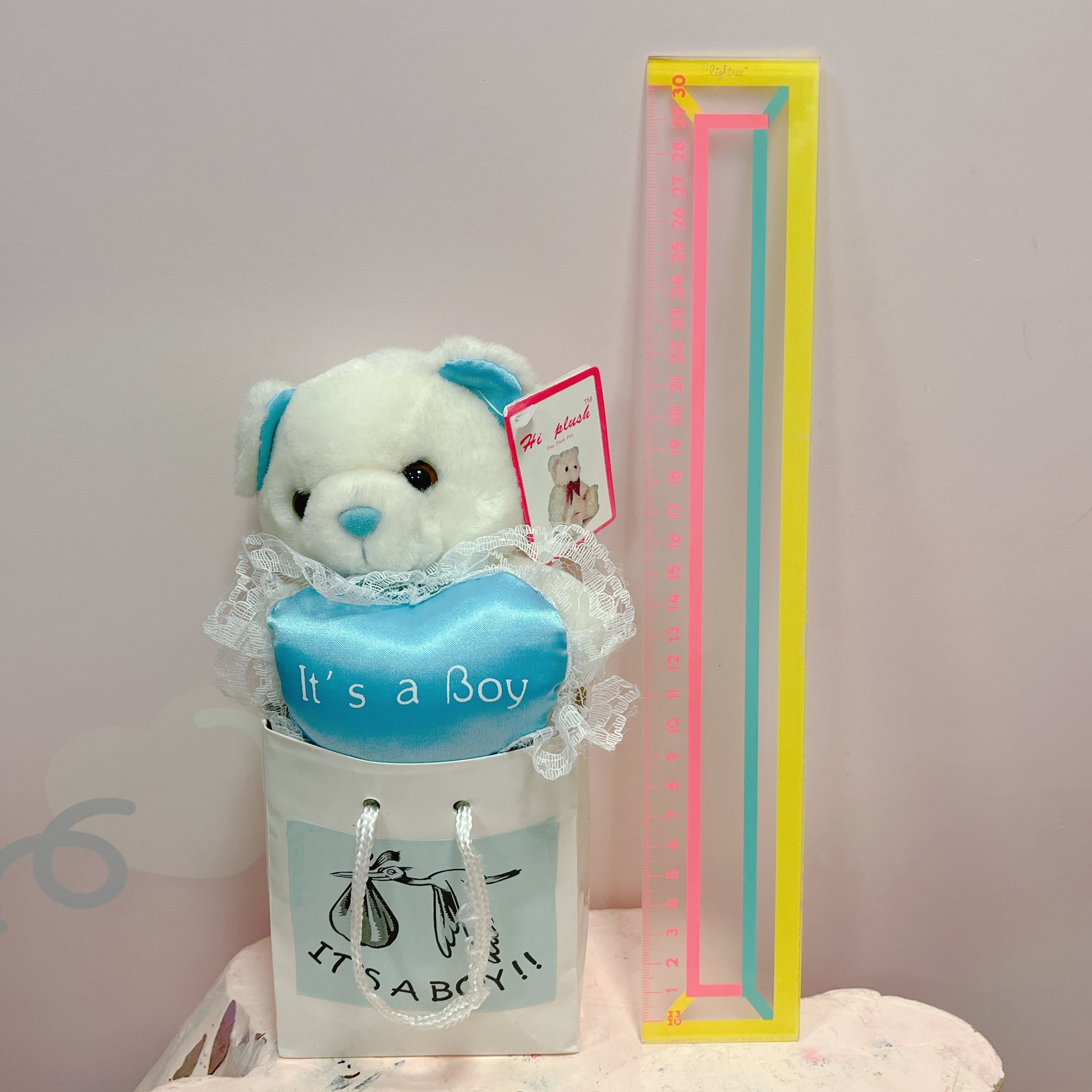 Vtg ぬいぐるみ(紙袋付き)白くま 水色 Boy