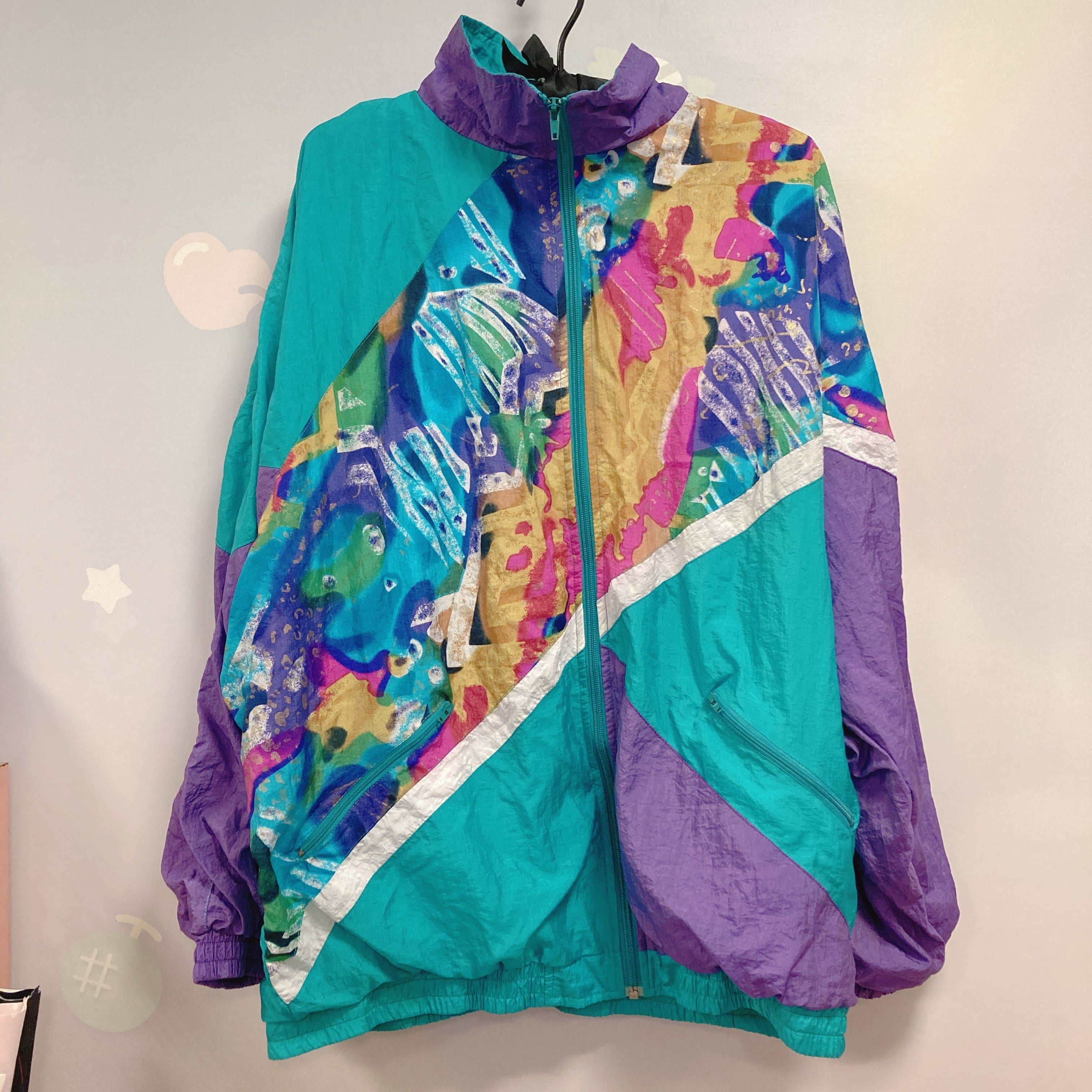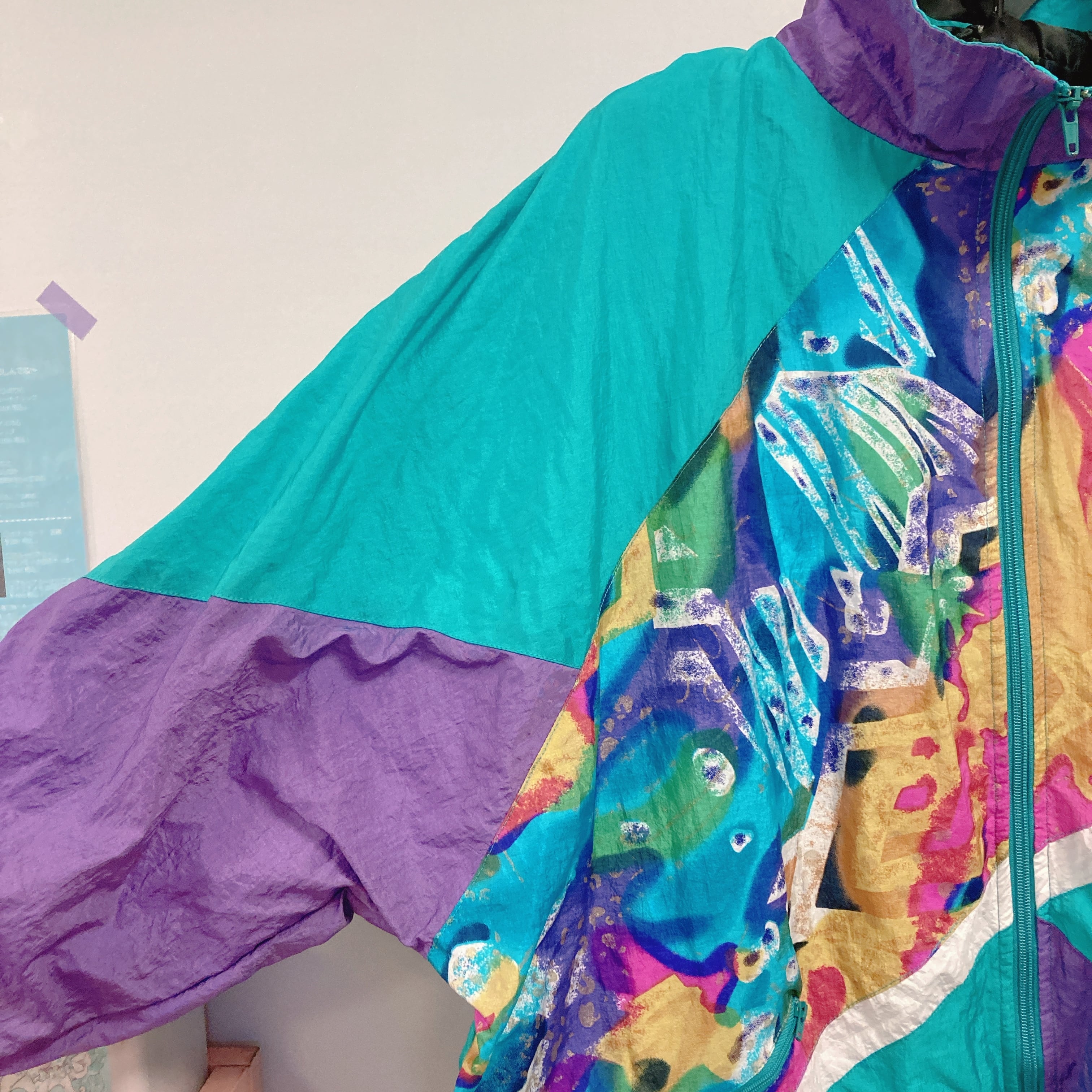Vtg ナイロンジャケット 青緑×パープル