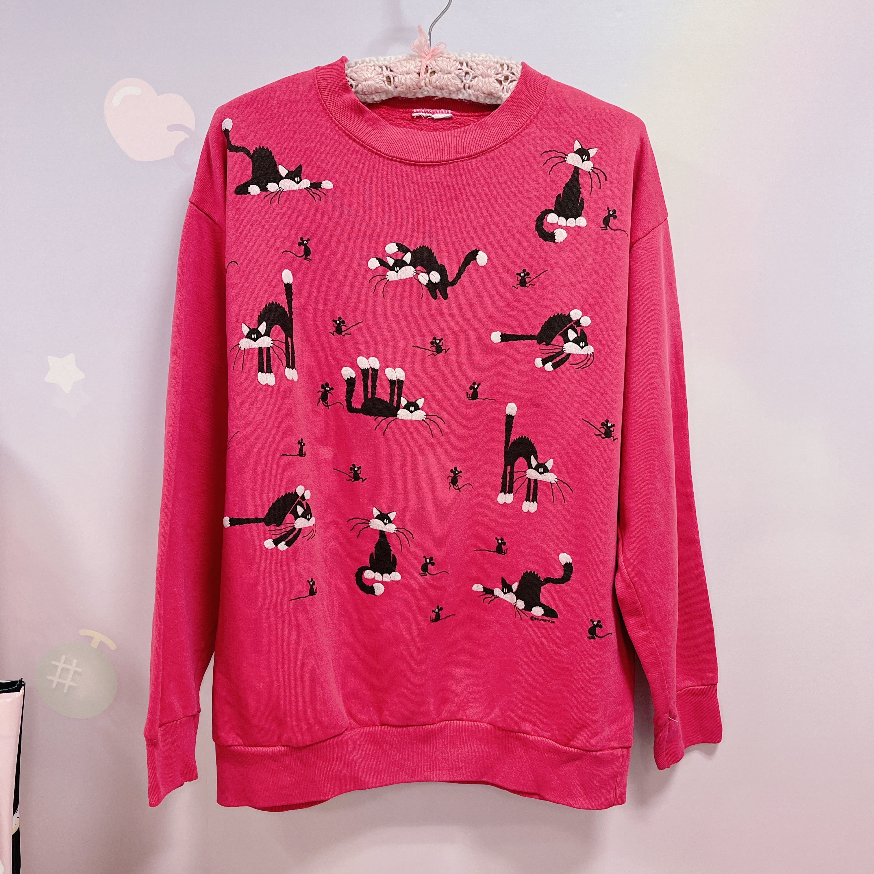 Vtg スウェット マゼンタピンク 猫・ねずみ