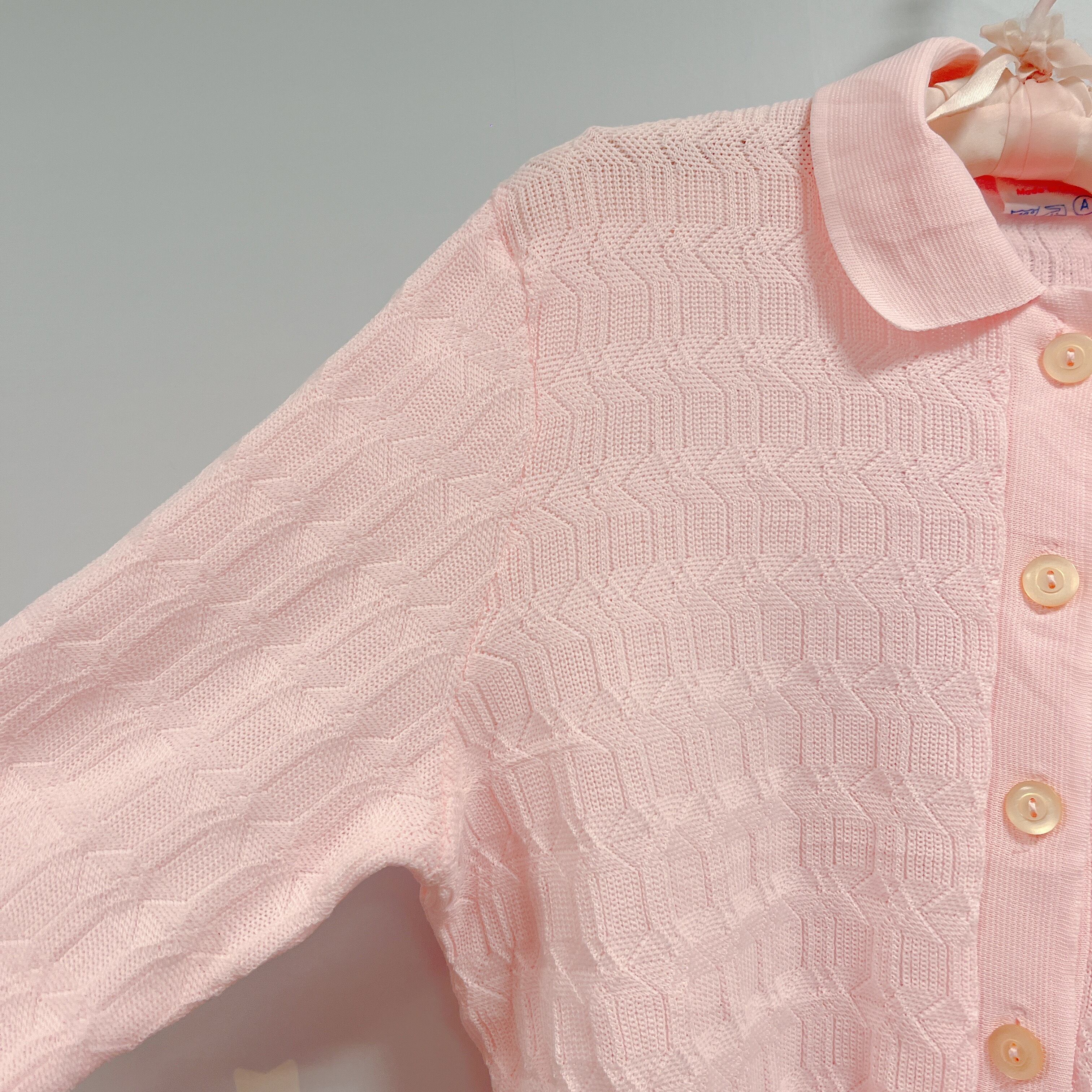 Vtg ニットカーディガン 襟付き 薄ピンク