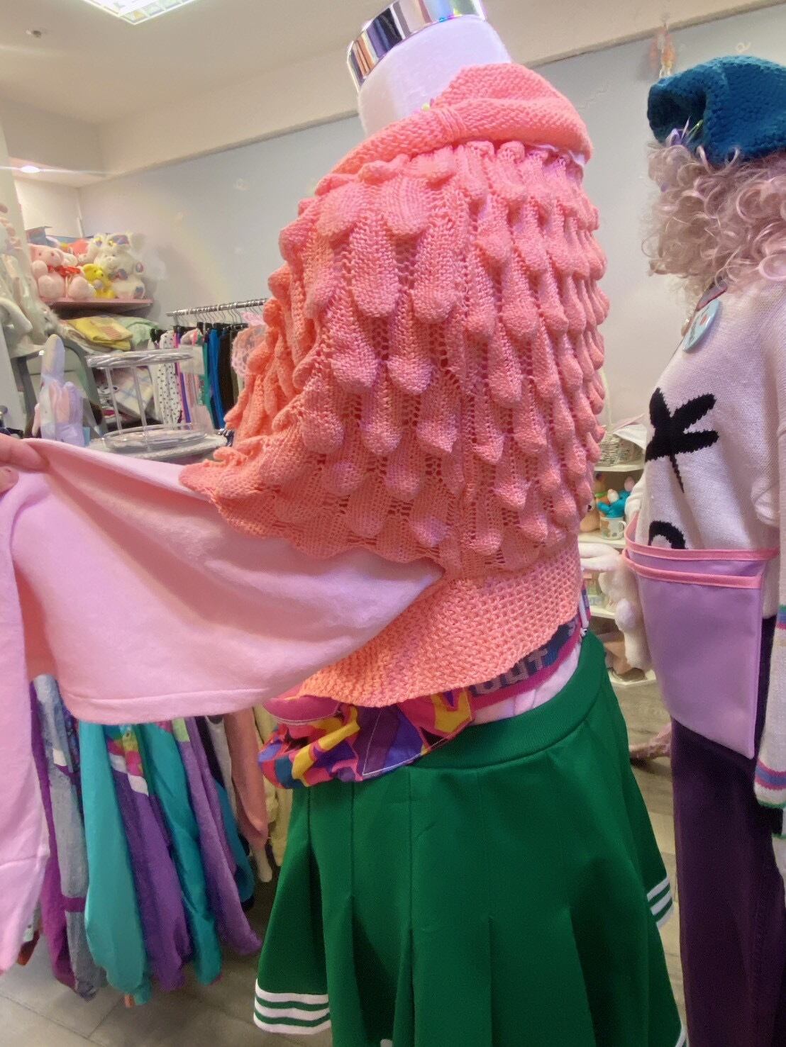 画像ではオレンジ色に写ってしまいますが、実際は少し蛍光っぽいピーチピンクです。最後の画像が1番実物に近いです。
