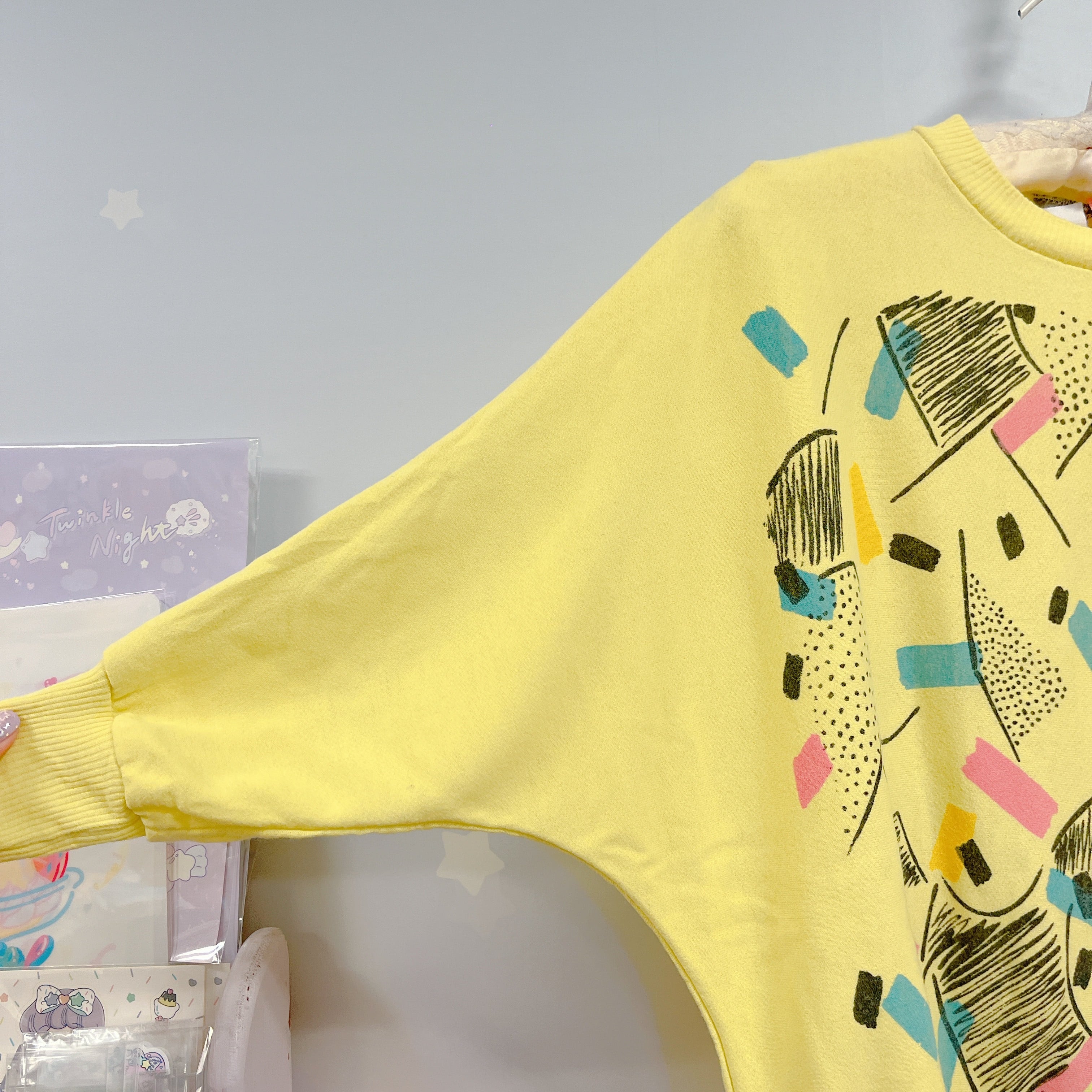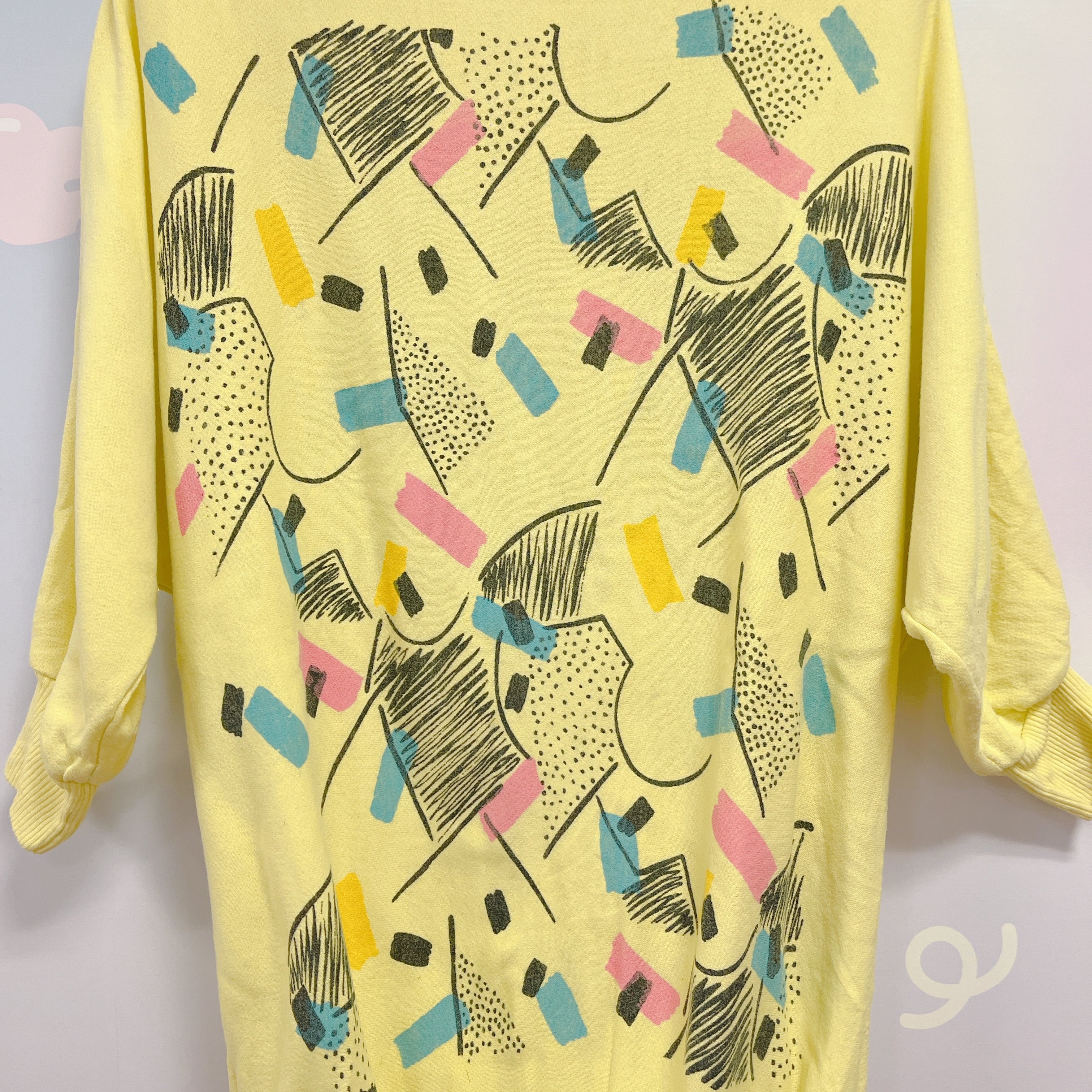 Vtg スウェット イエロー 80's柄 ドルマン袖