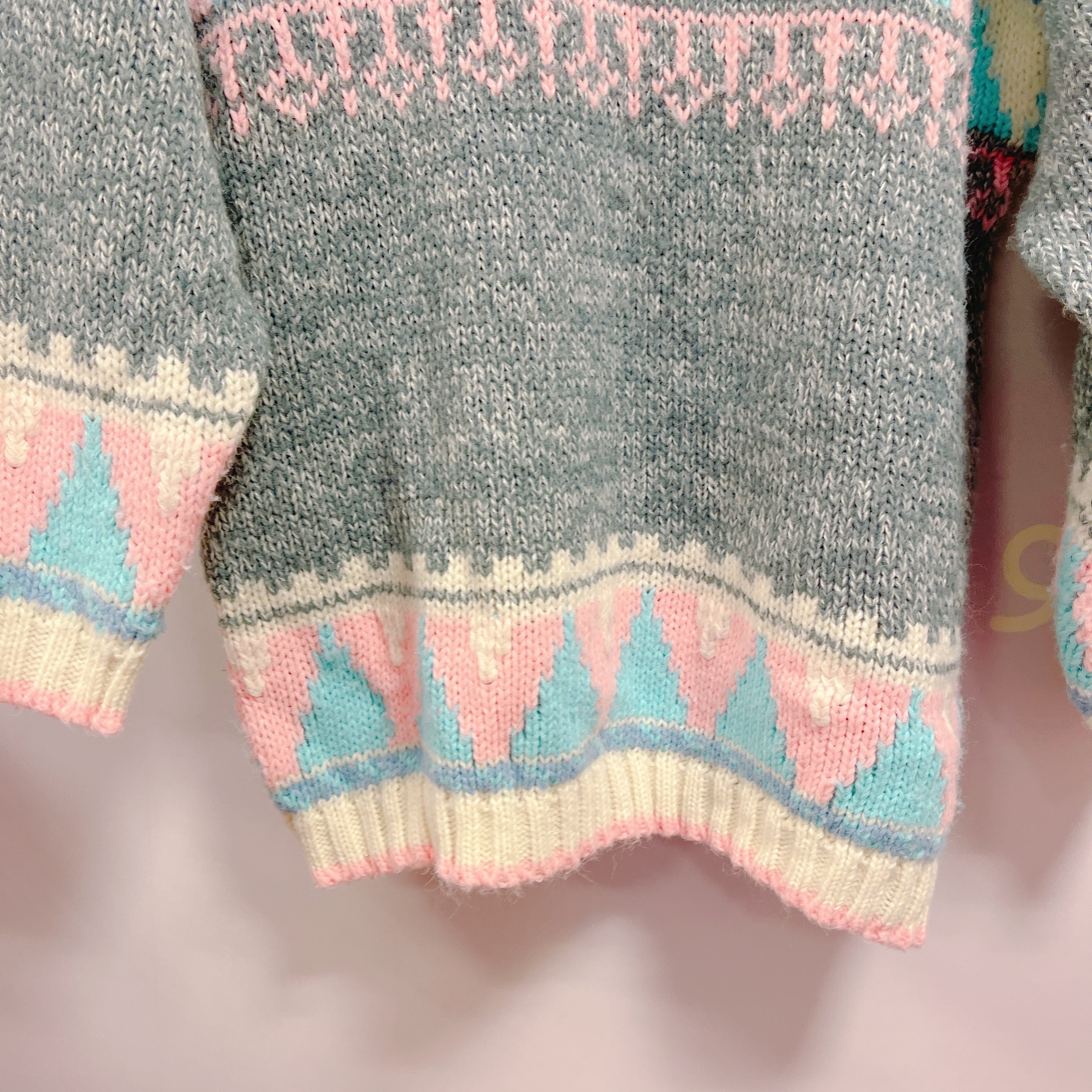 Vtgセーター グレー×水色×ピンク
