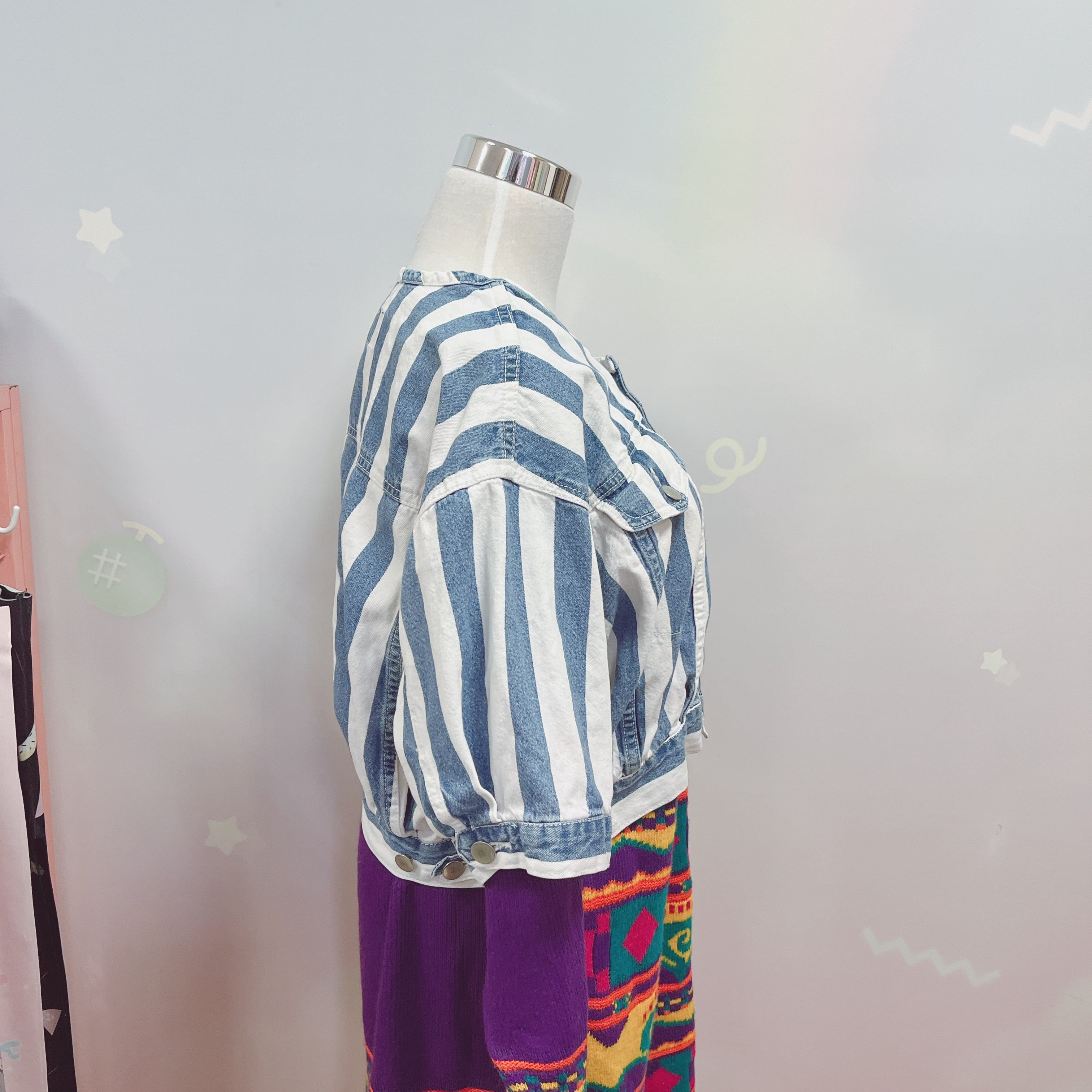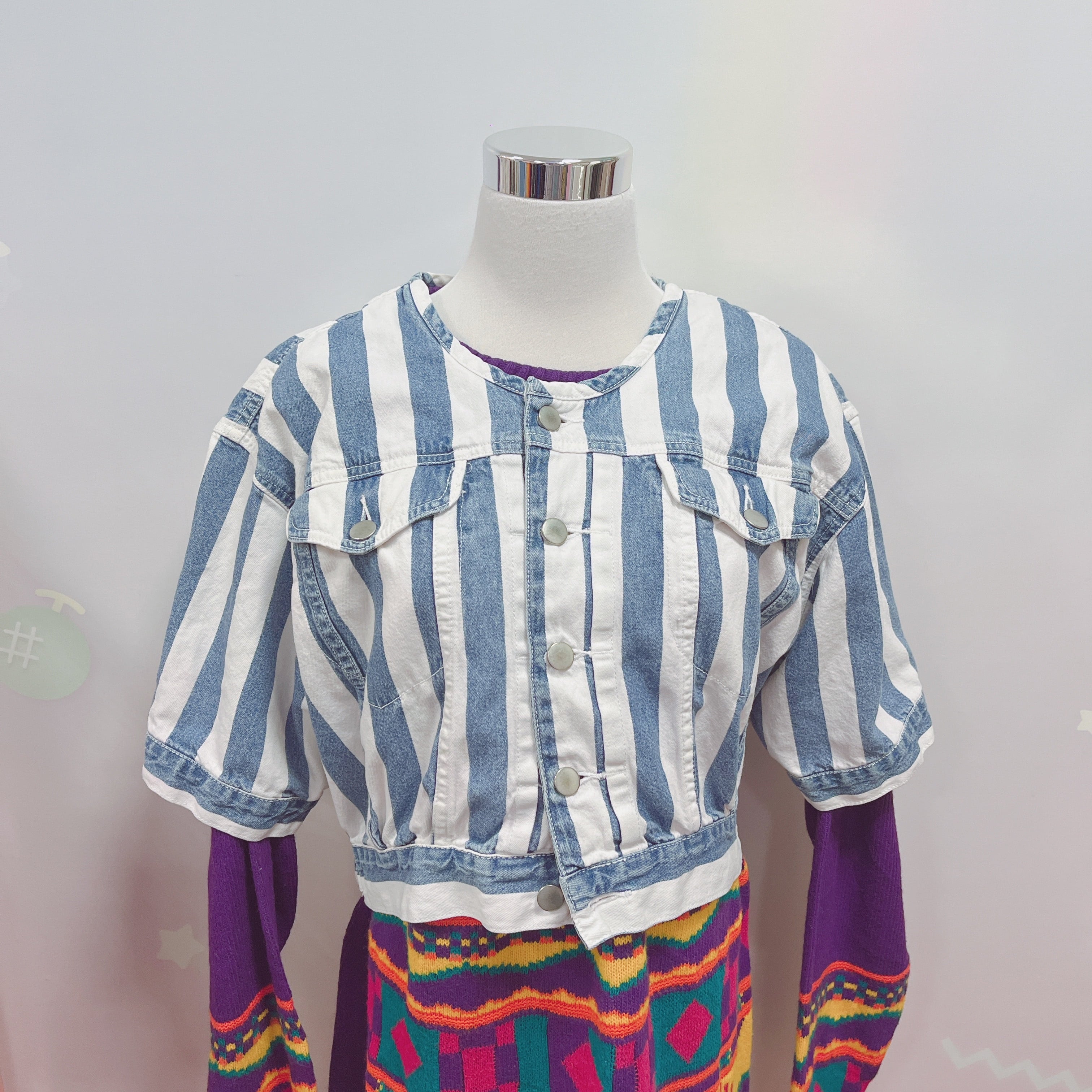 Vtg デニムジャケット ストライプ 半袖