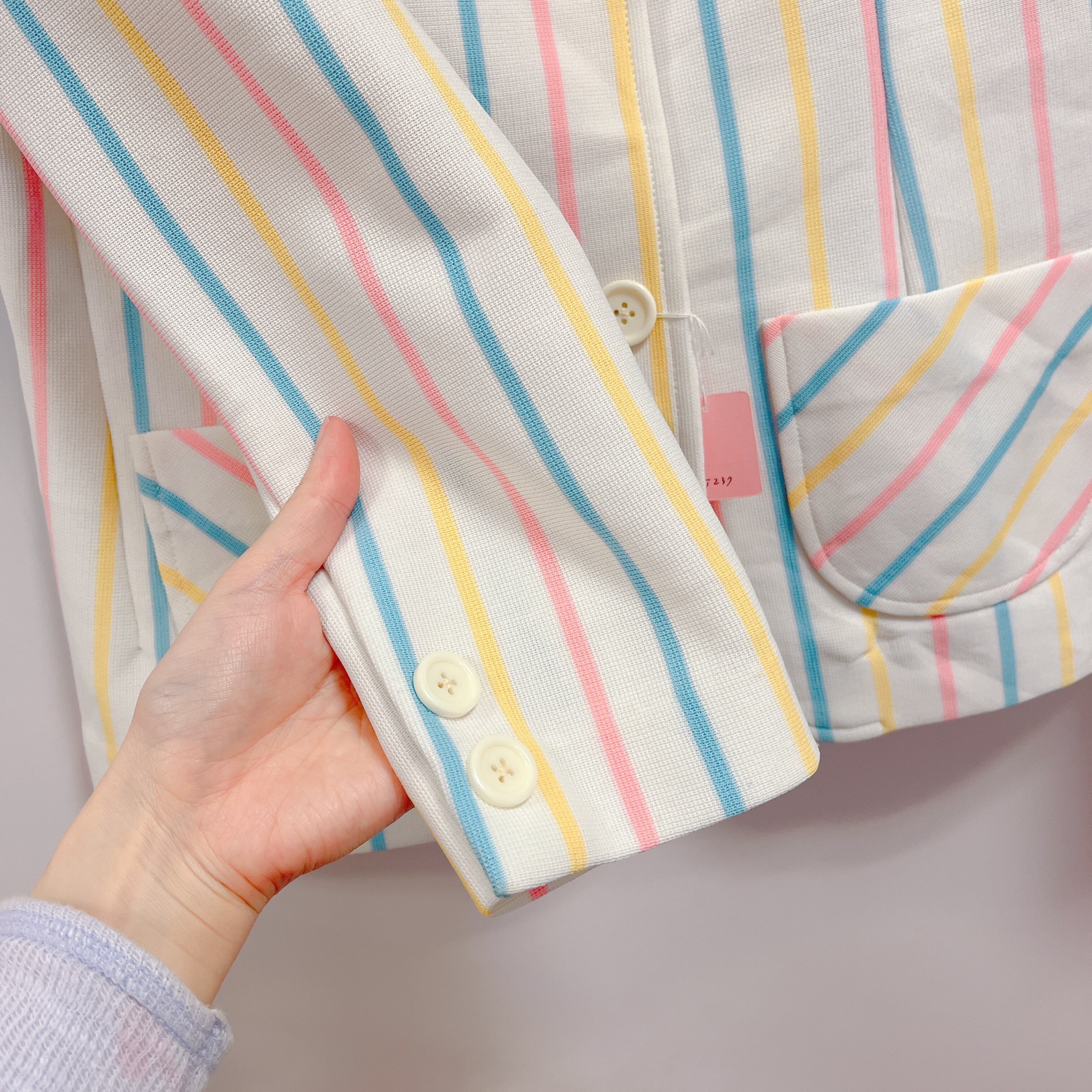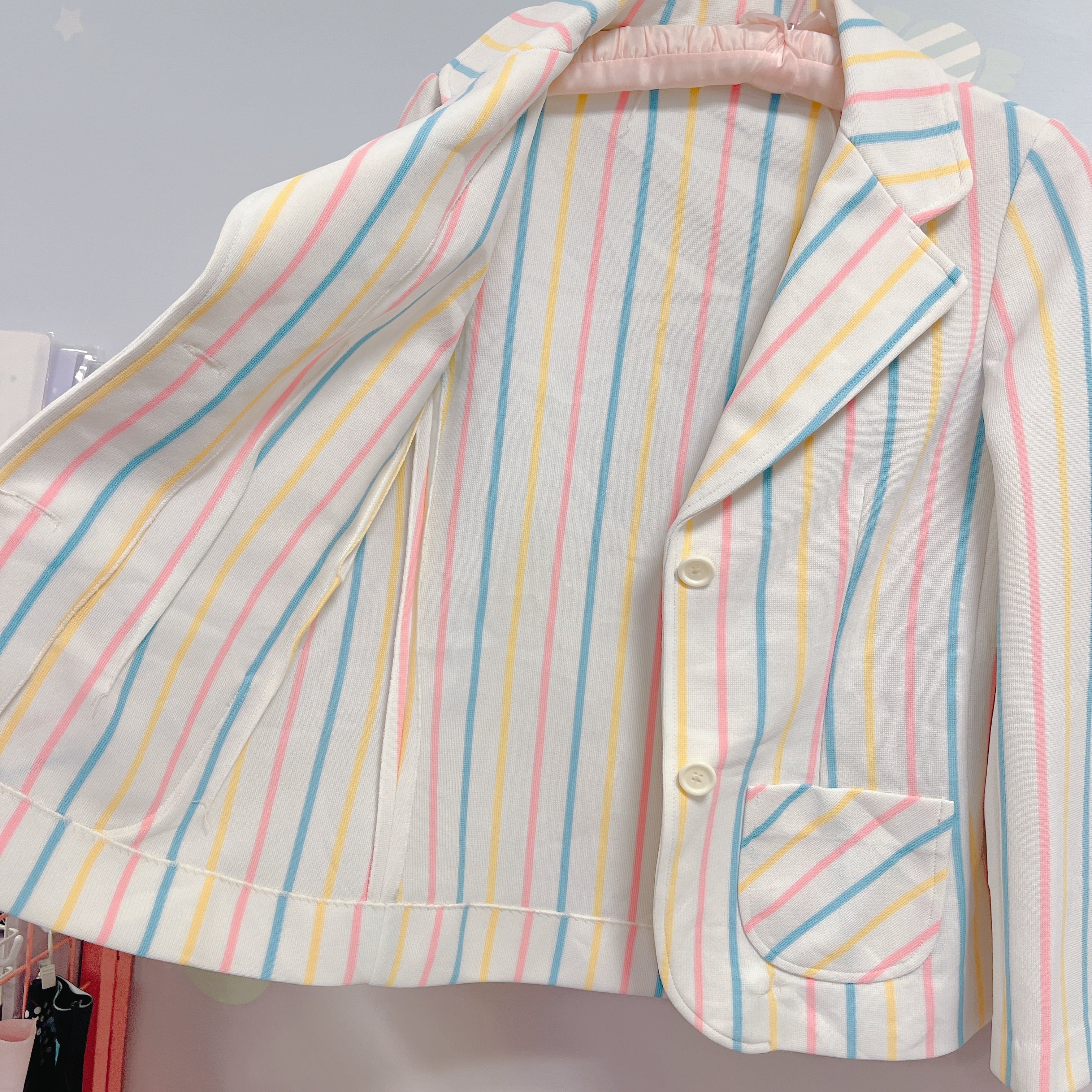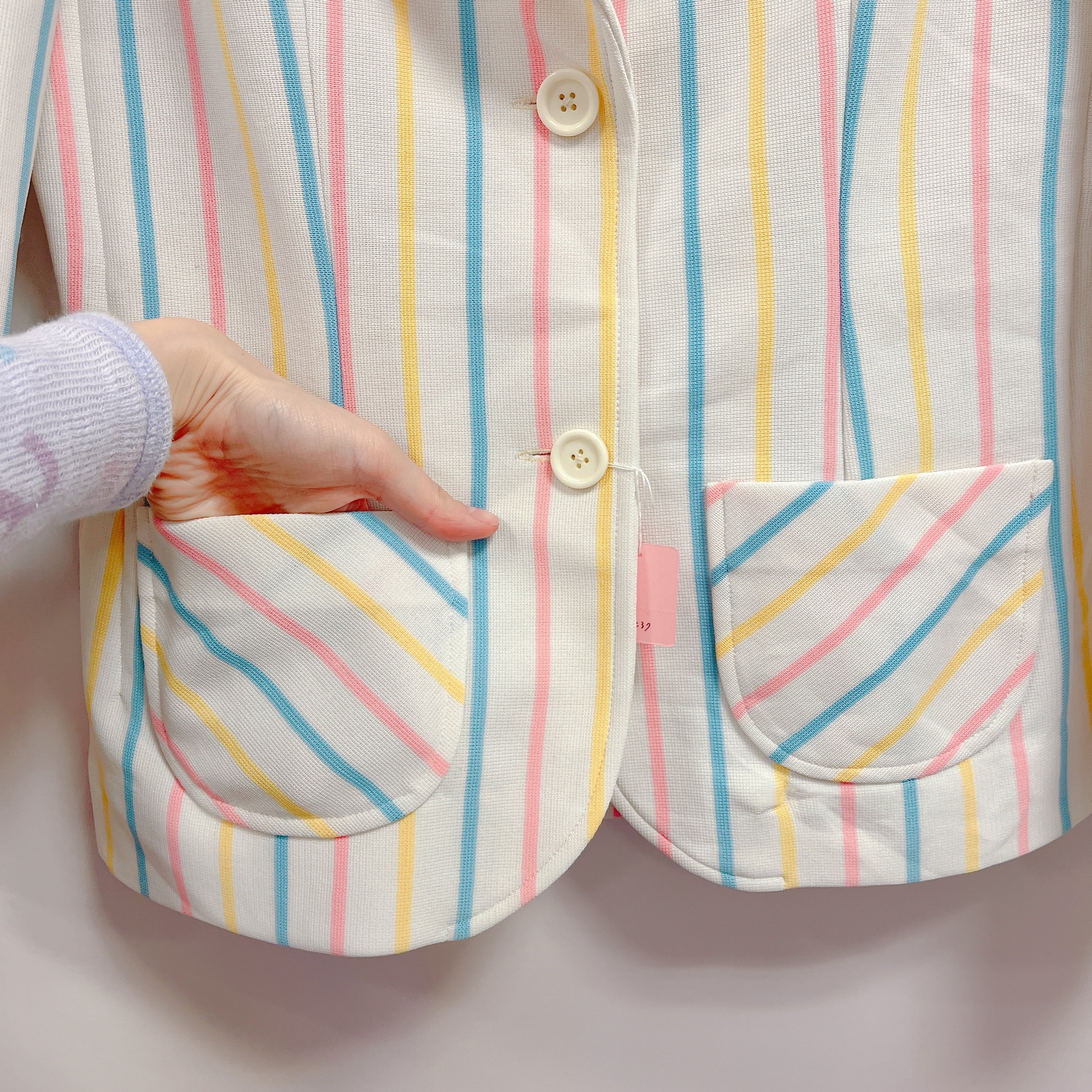 Vtg ストライプジャケット 白×カラフル