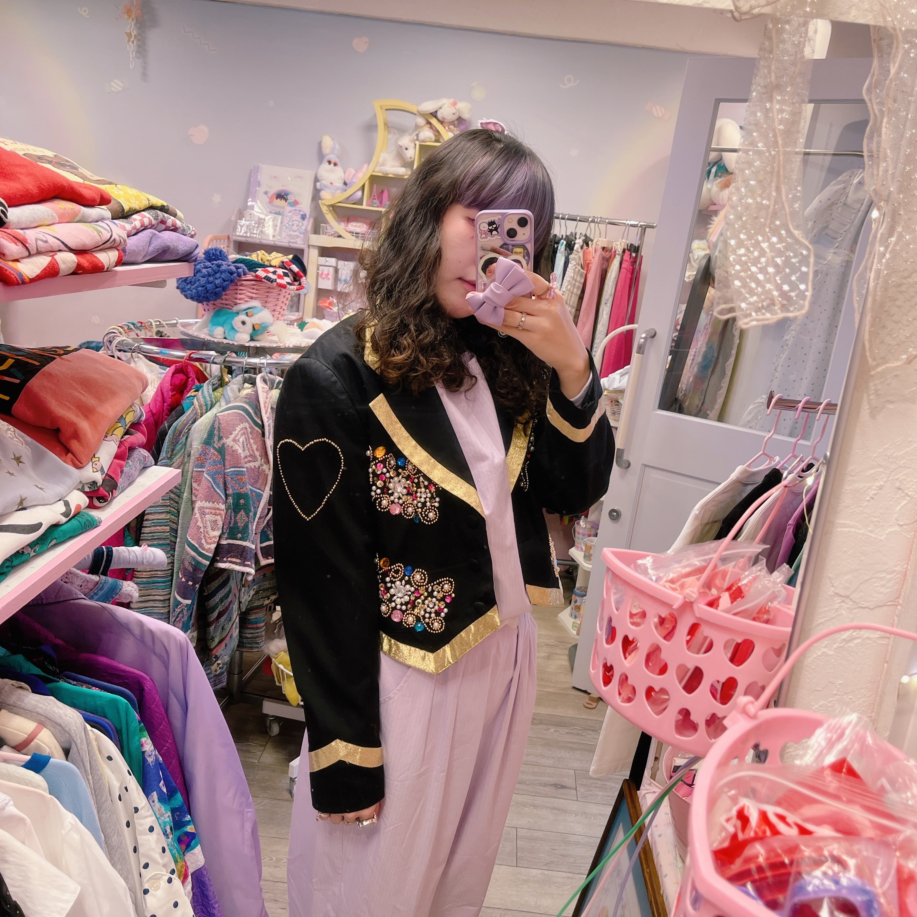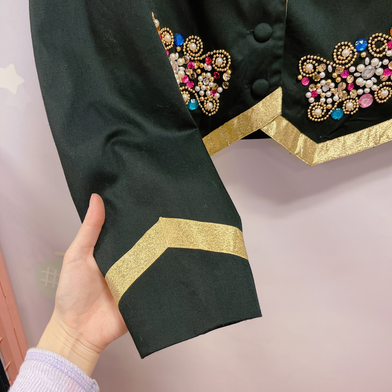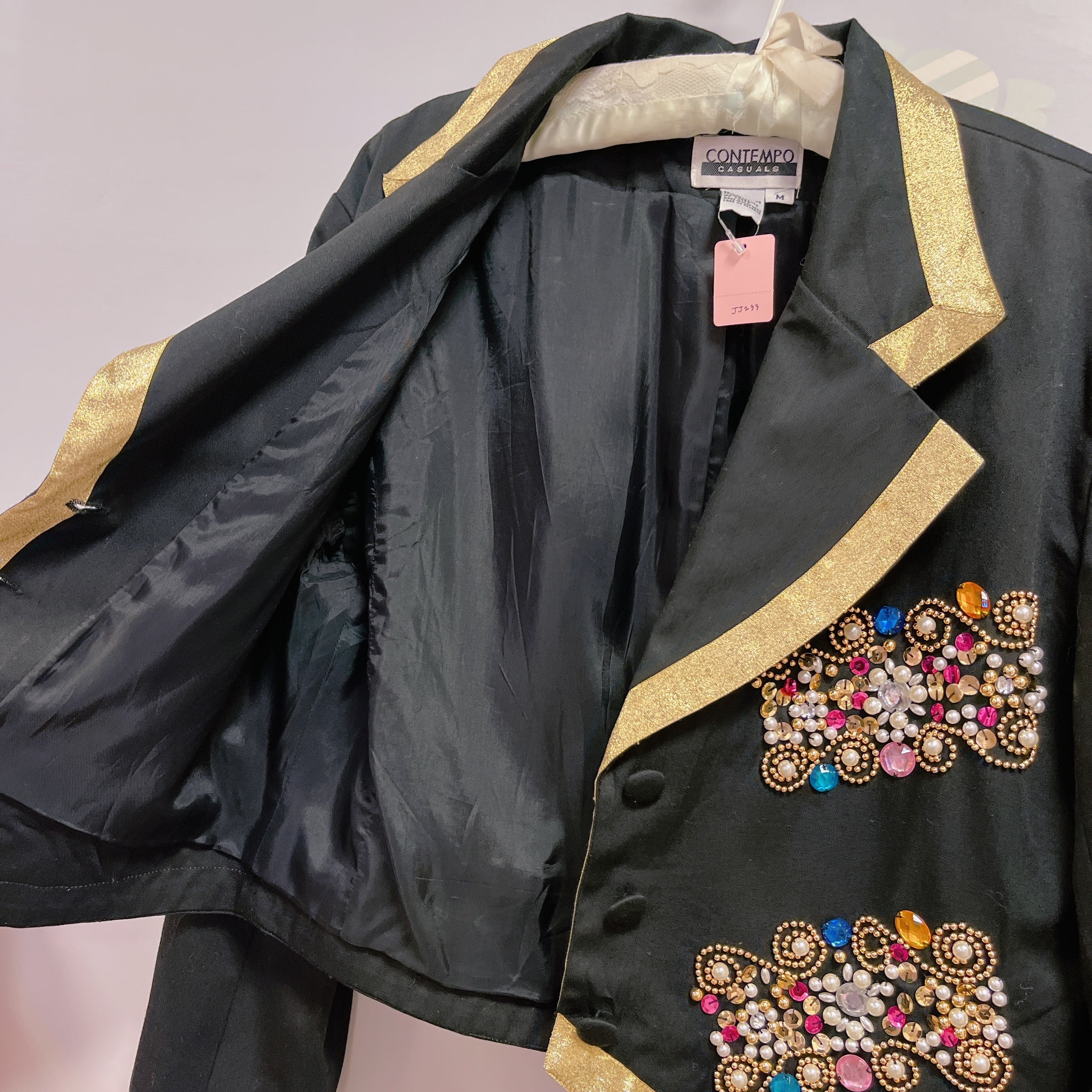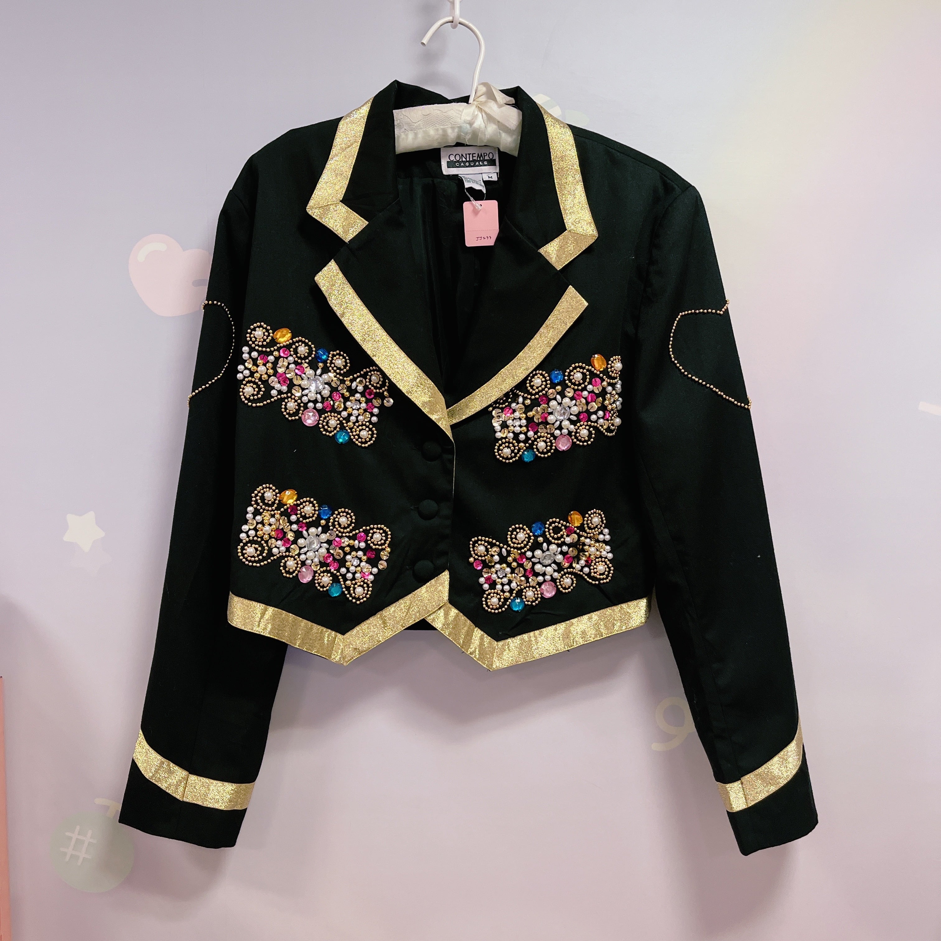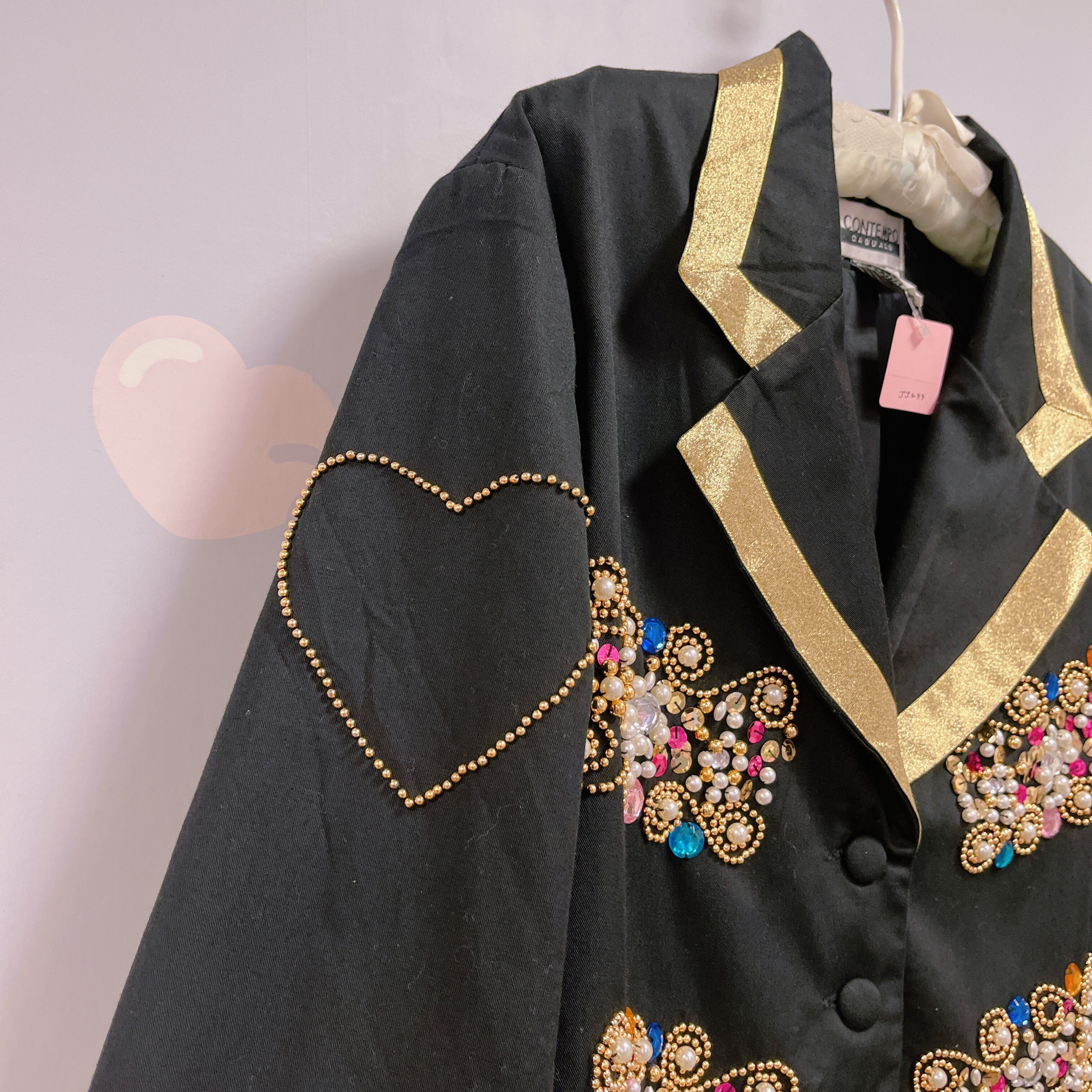 Vtg ショート丈ジャケット 黒×ゴールド ビジュー