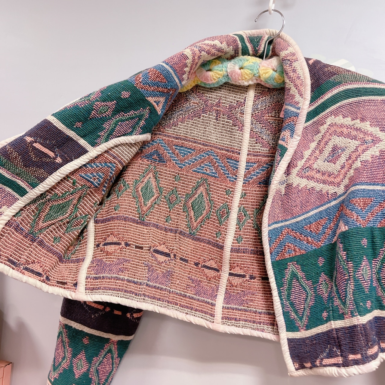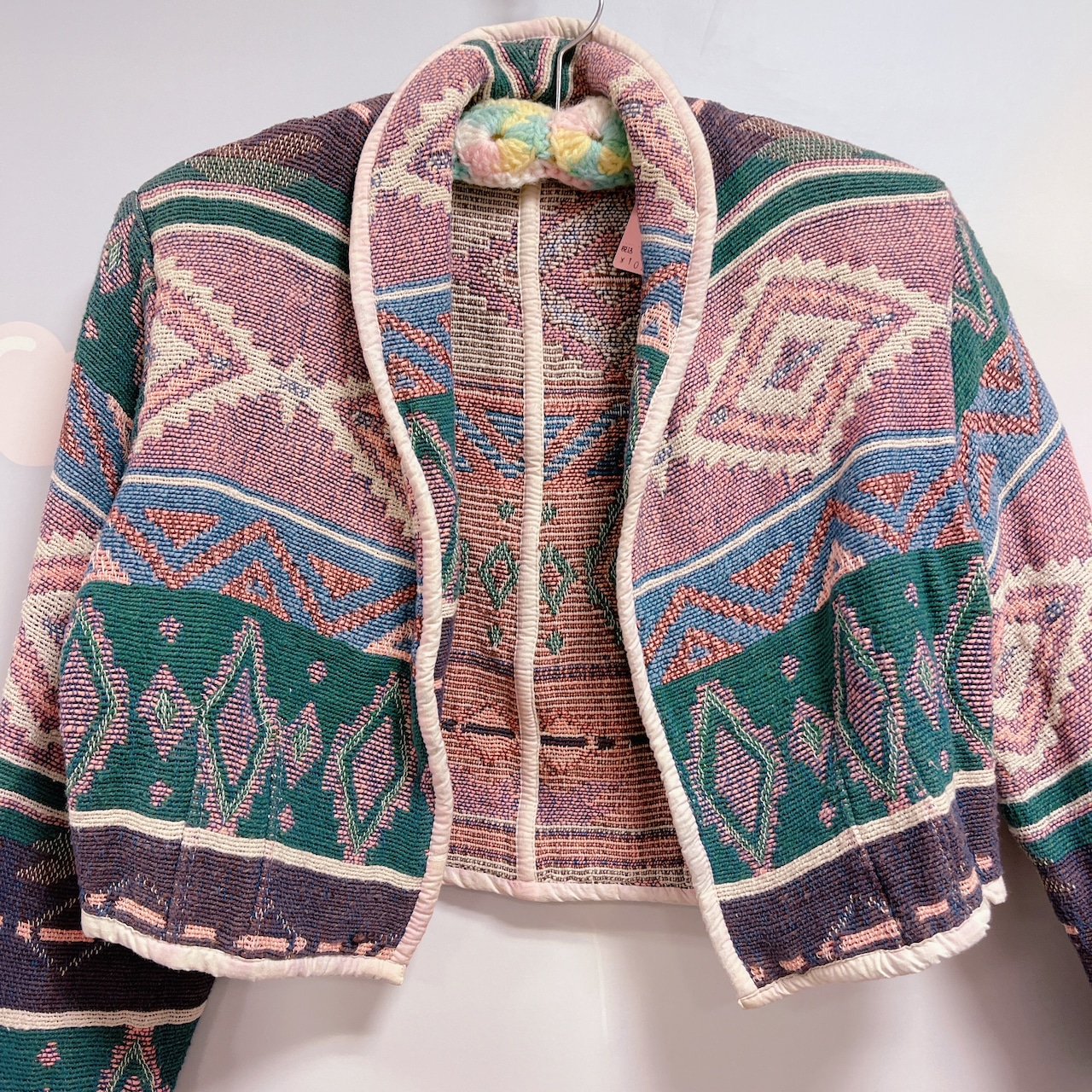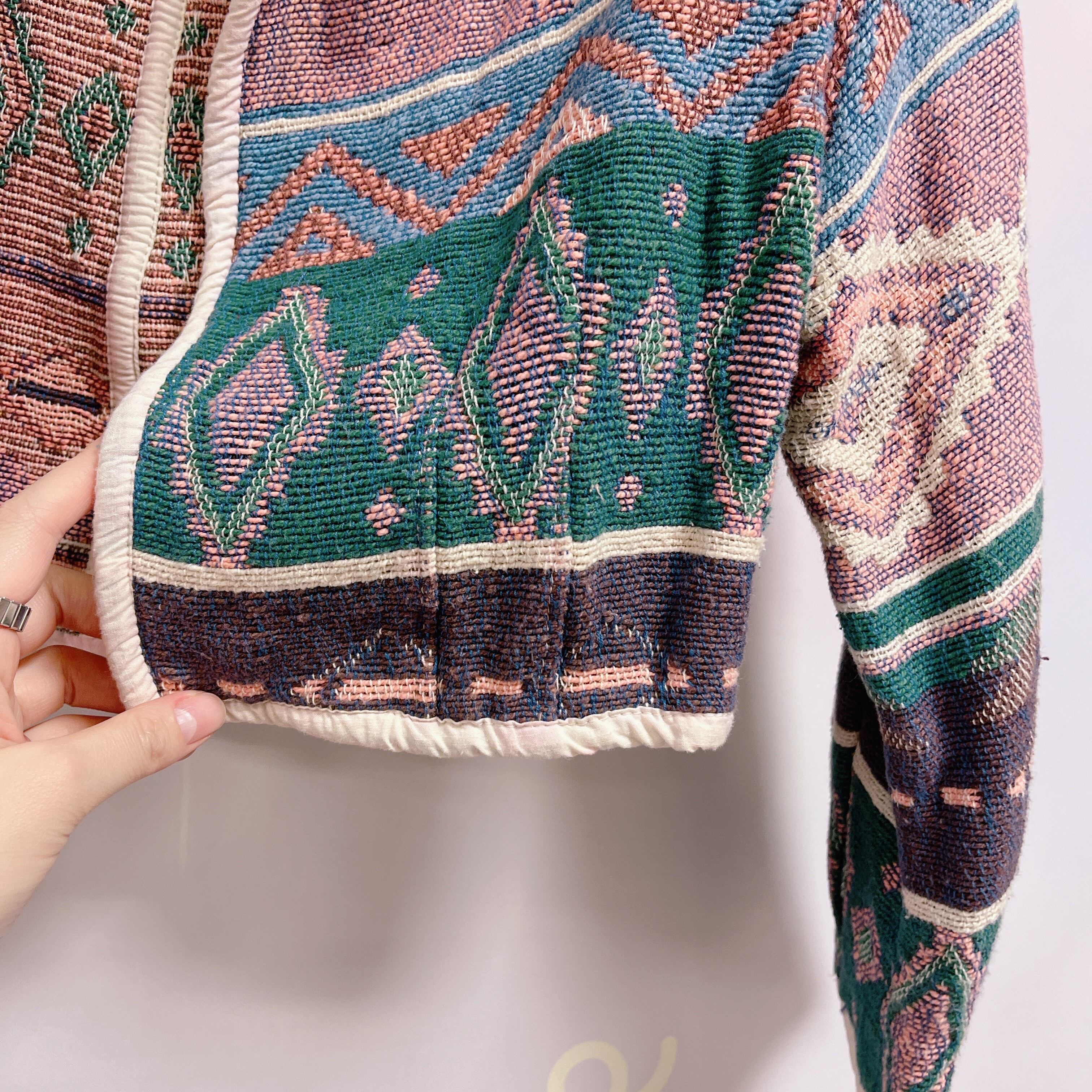 Vtg ラグジャケット グリーン×ピンク