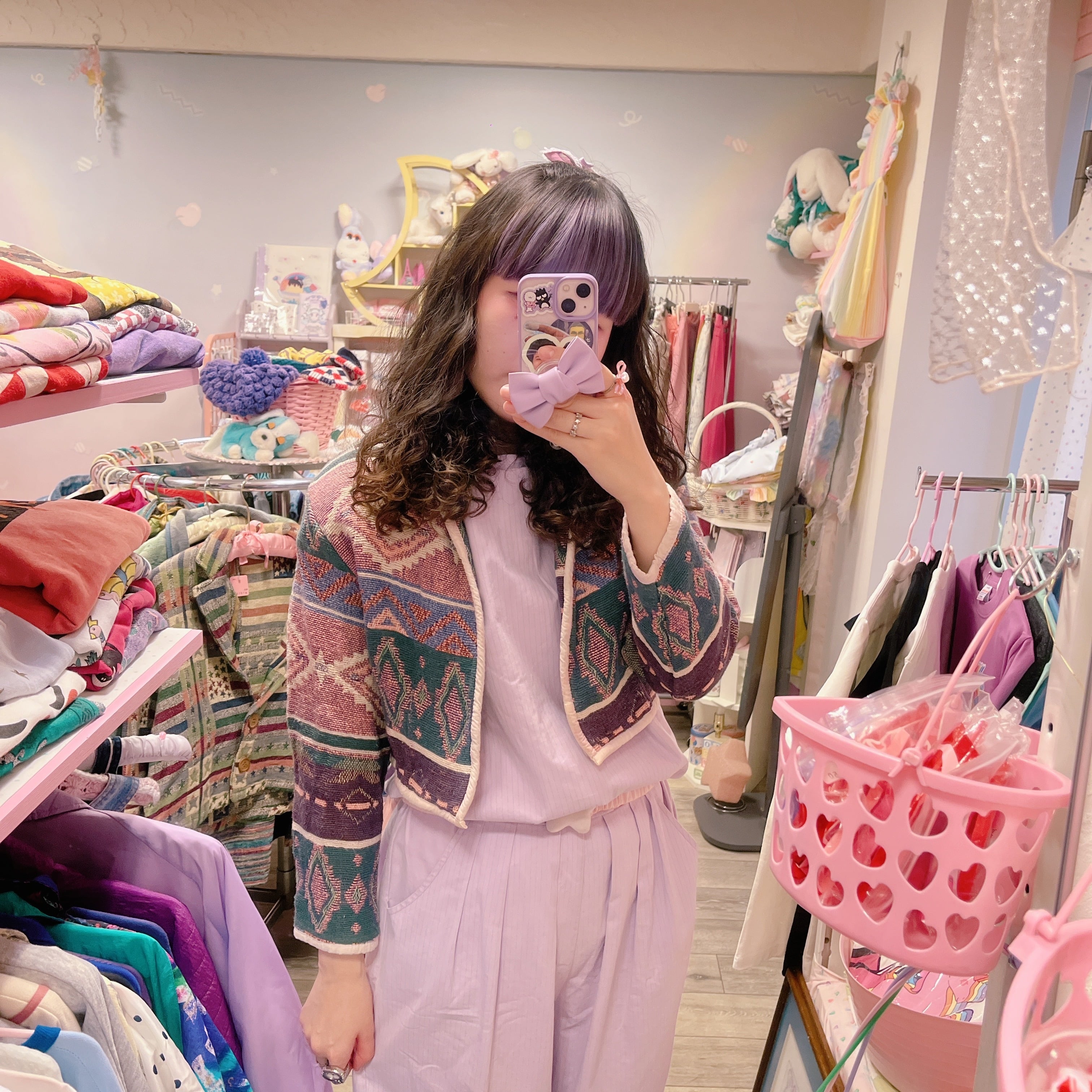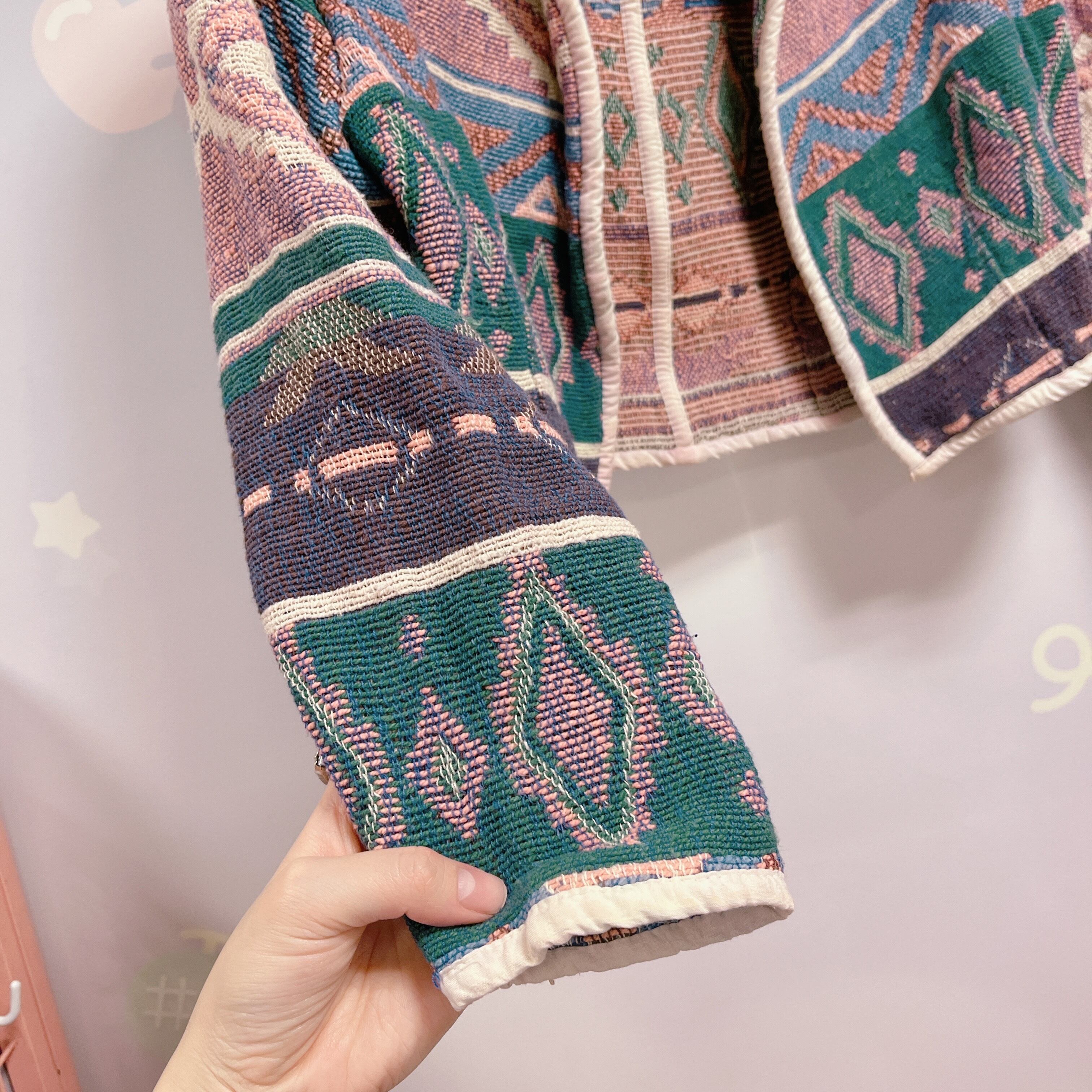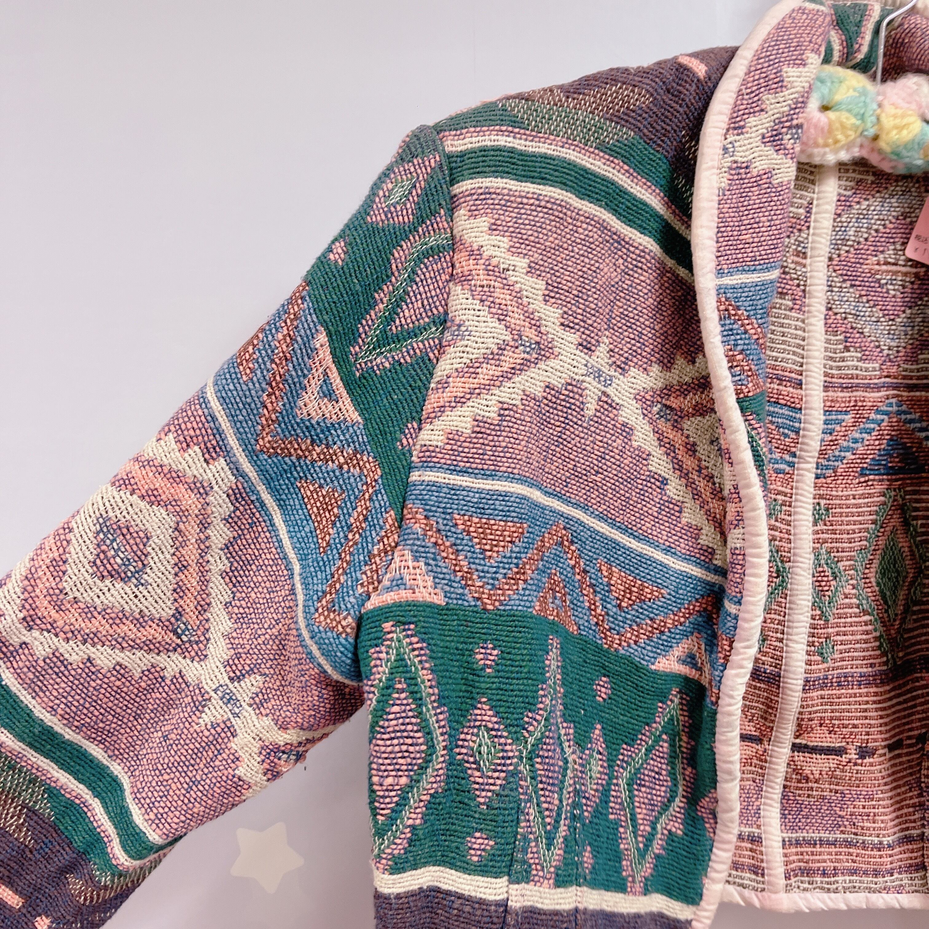 Vtg ラグジャケット グリーン×ピンク
