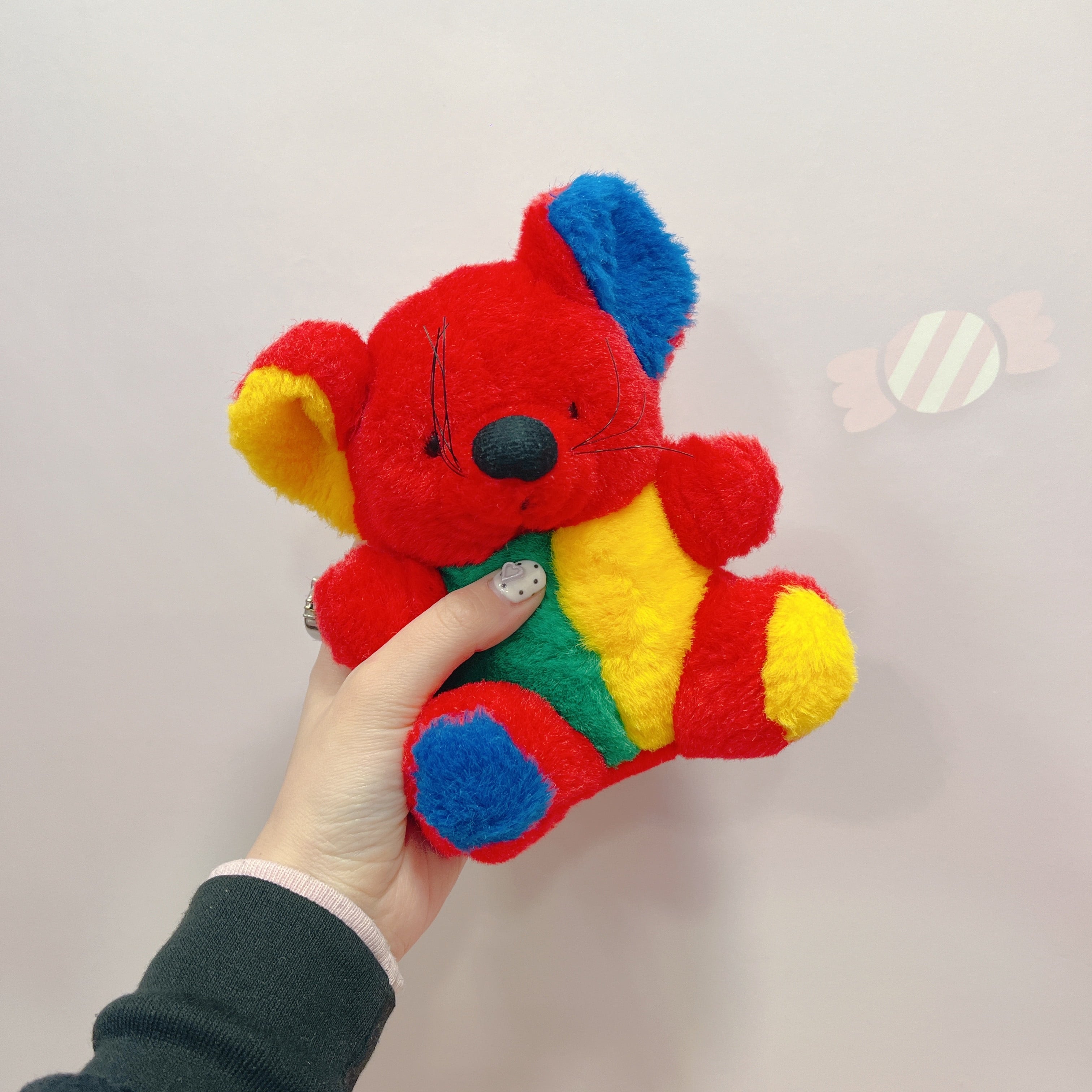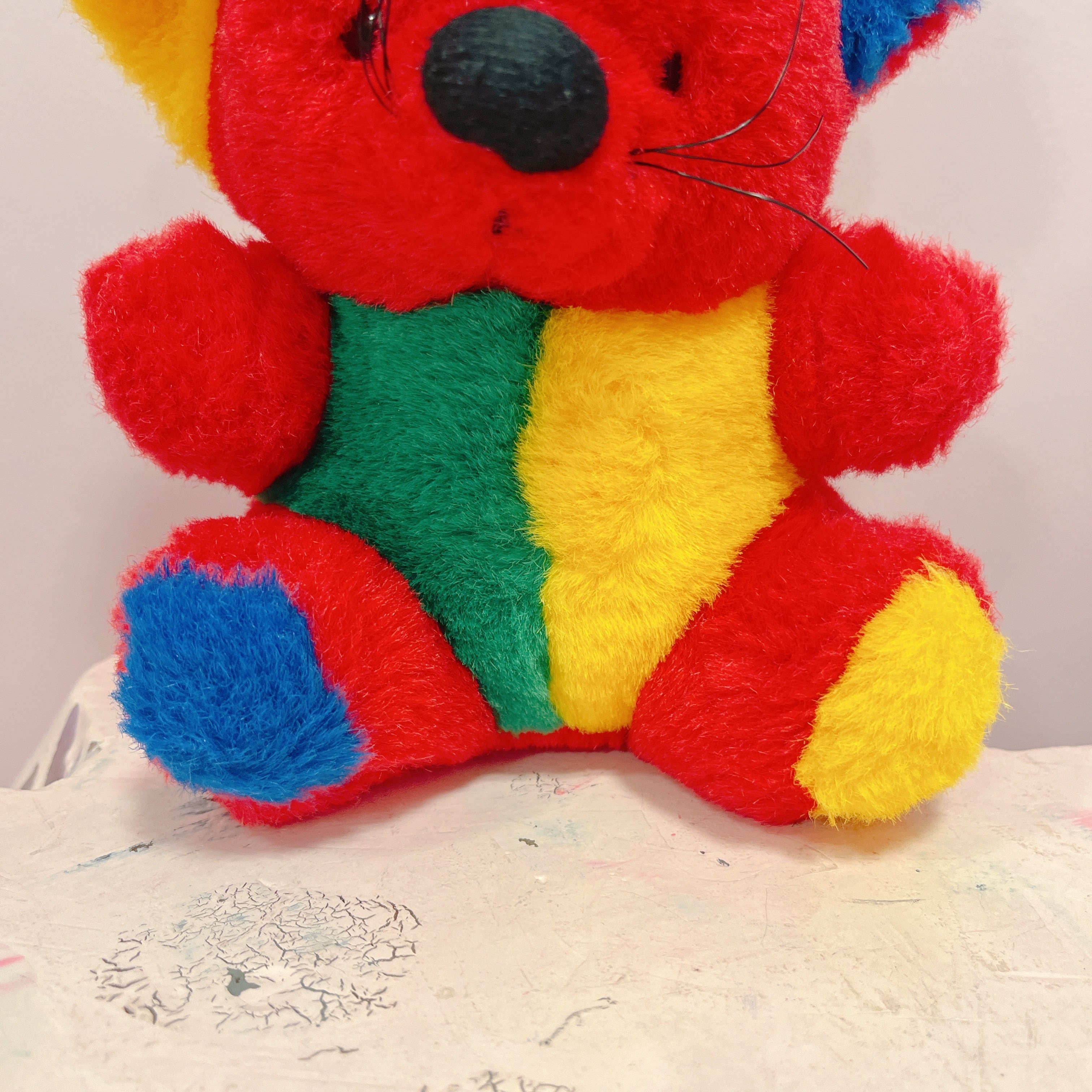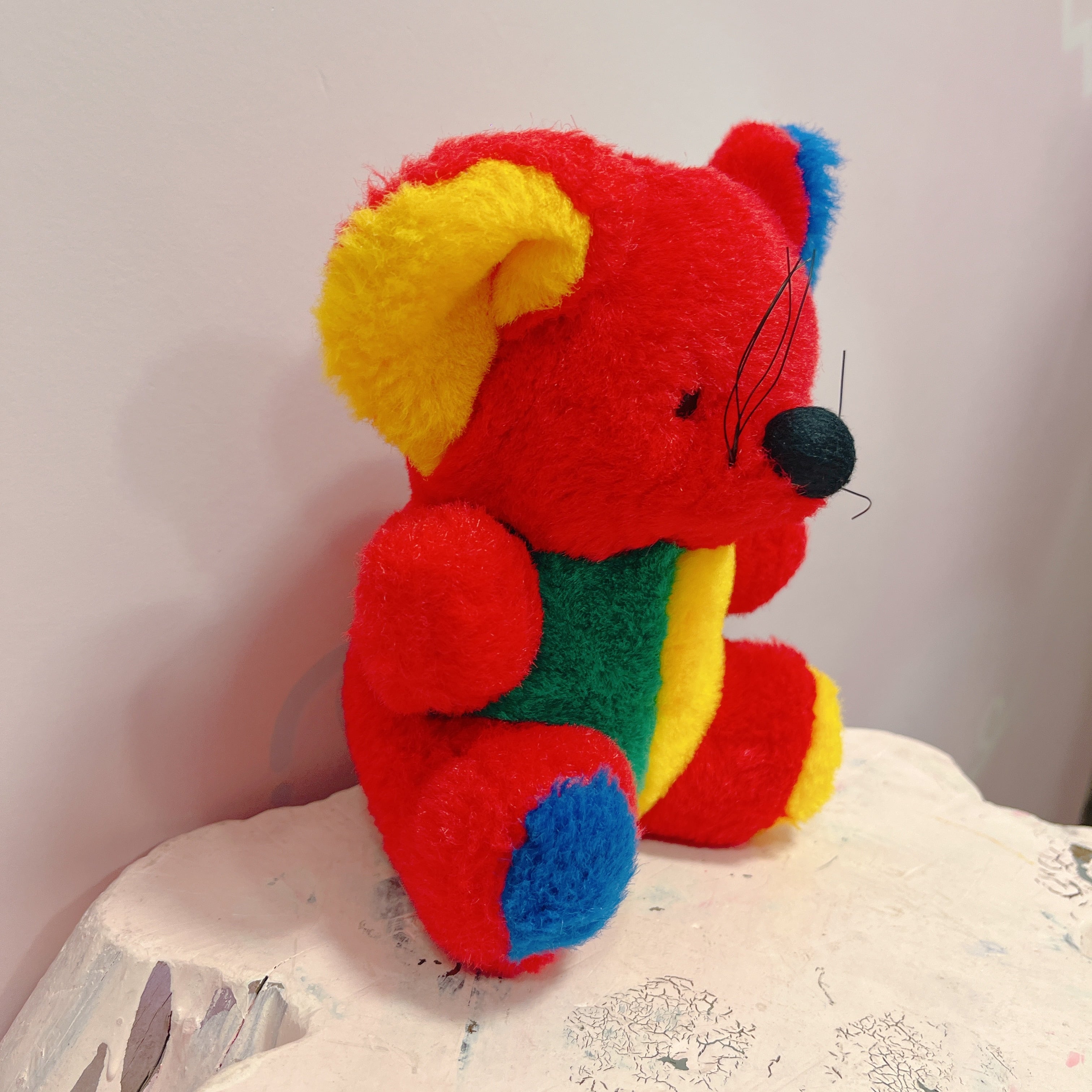 Vtg ぬいぐるみ 赤×カラフルねずみ