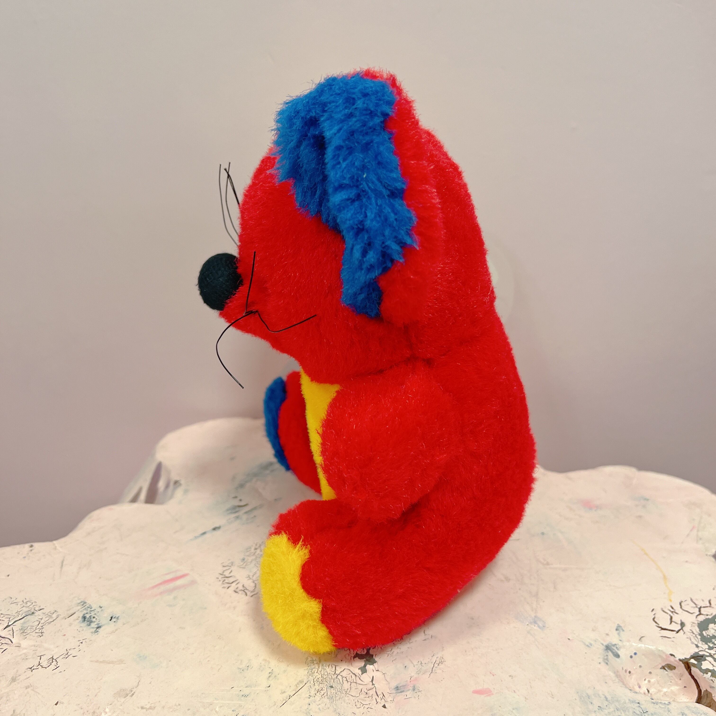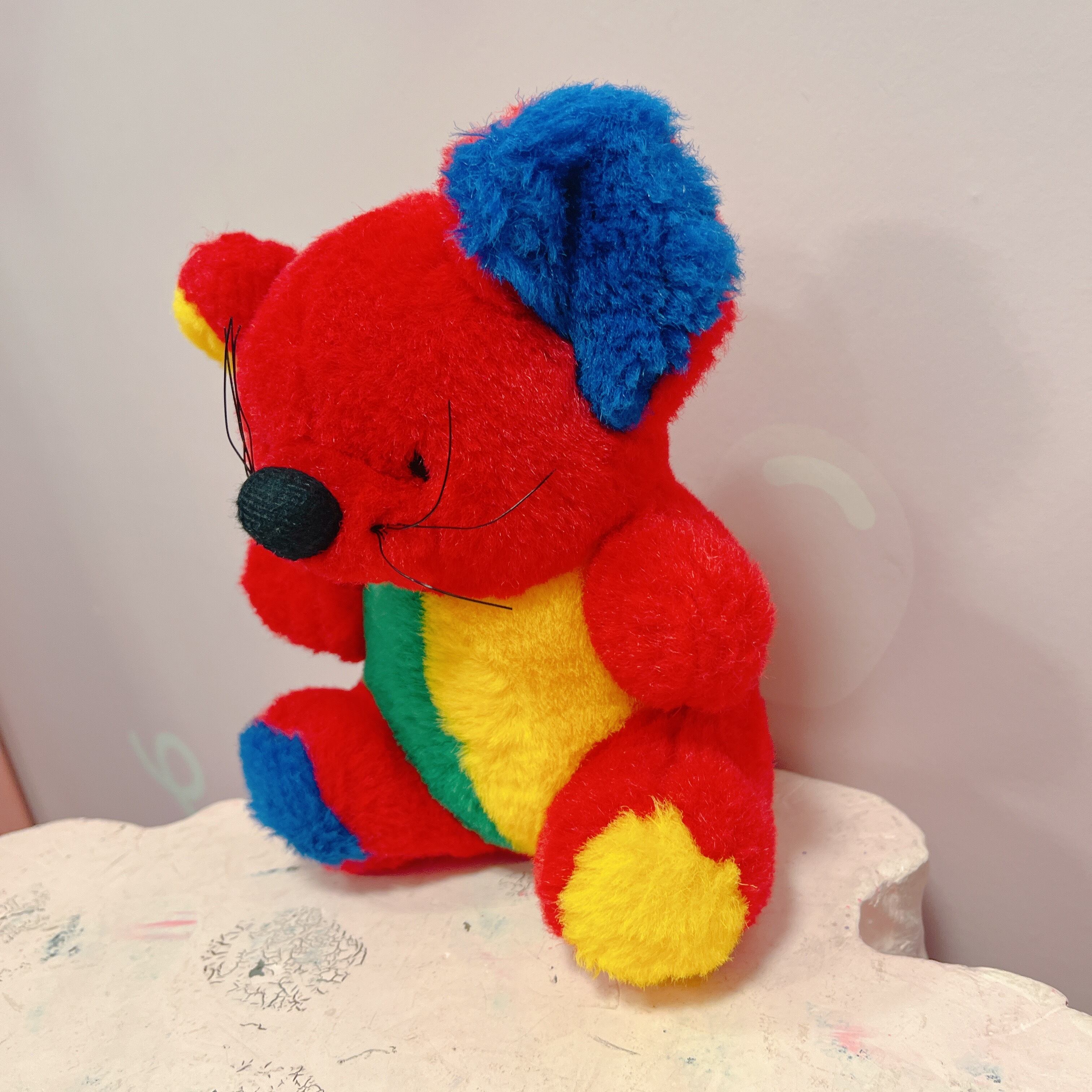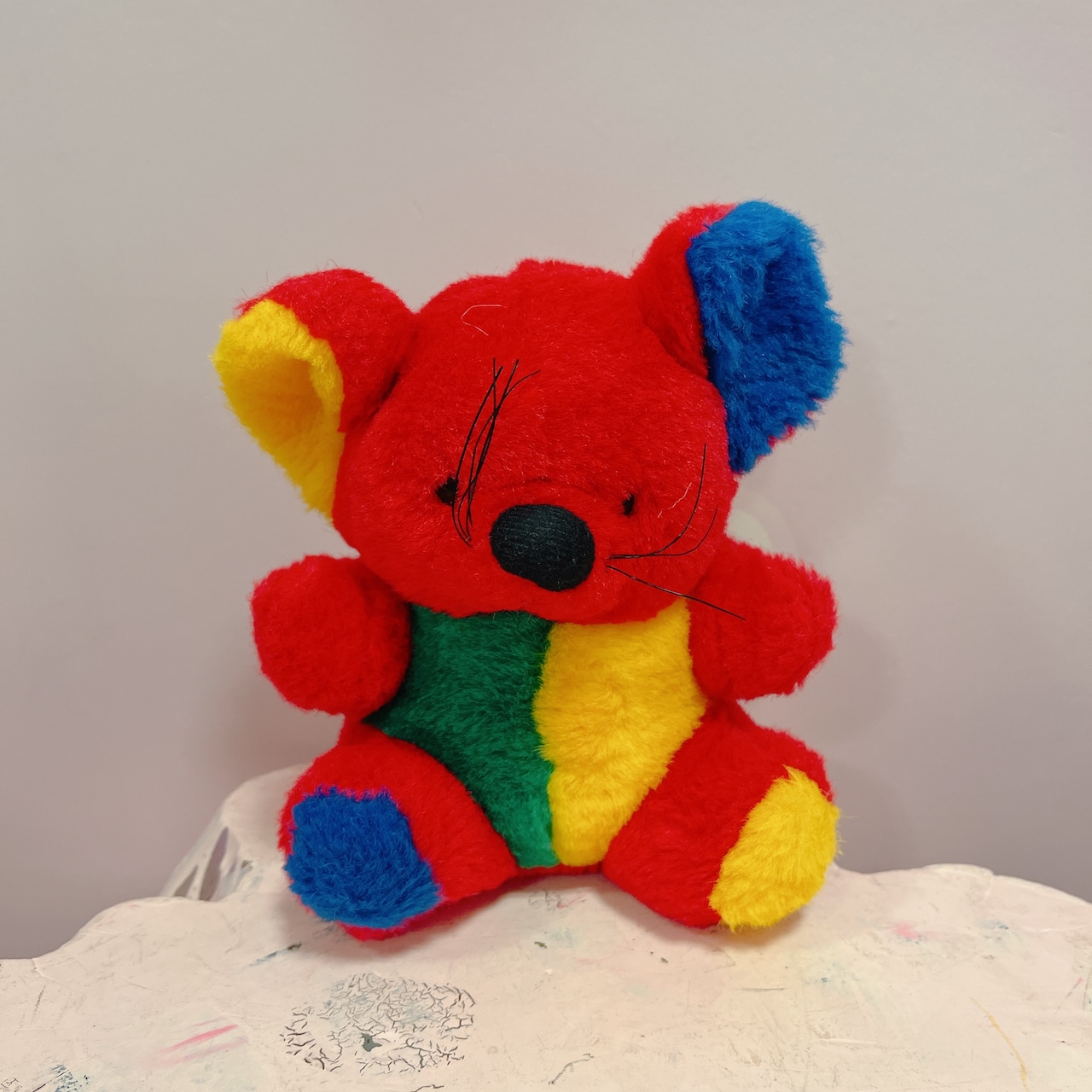 Vtg ぬいぐるみ 赤×カラフルねずみ