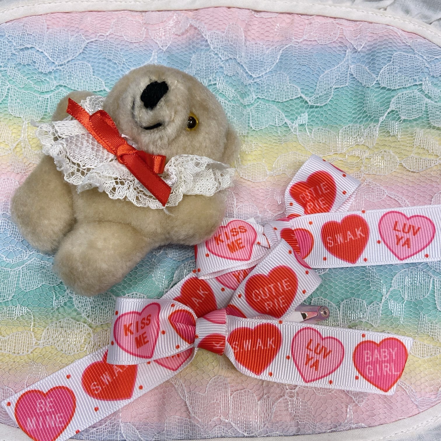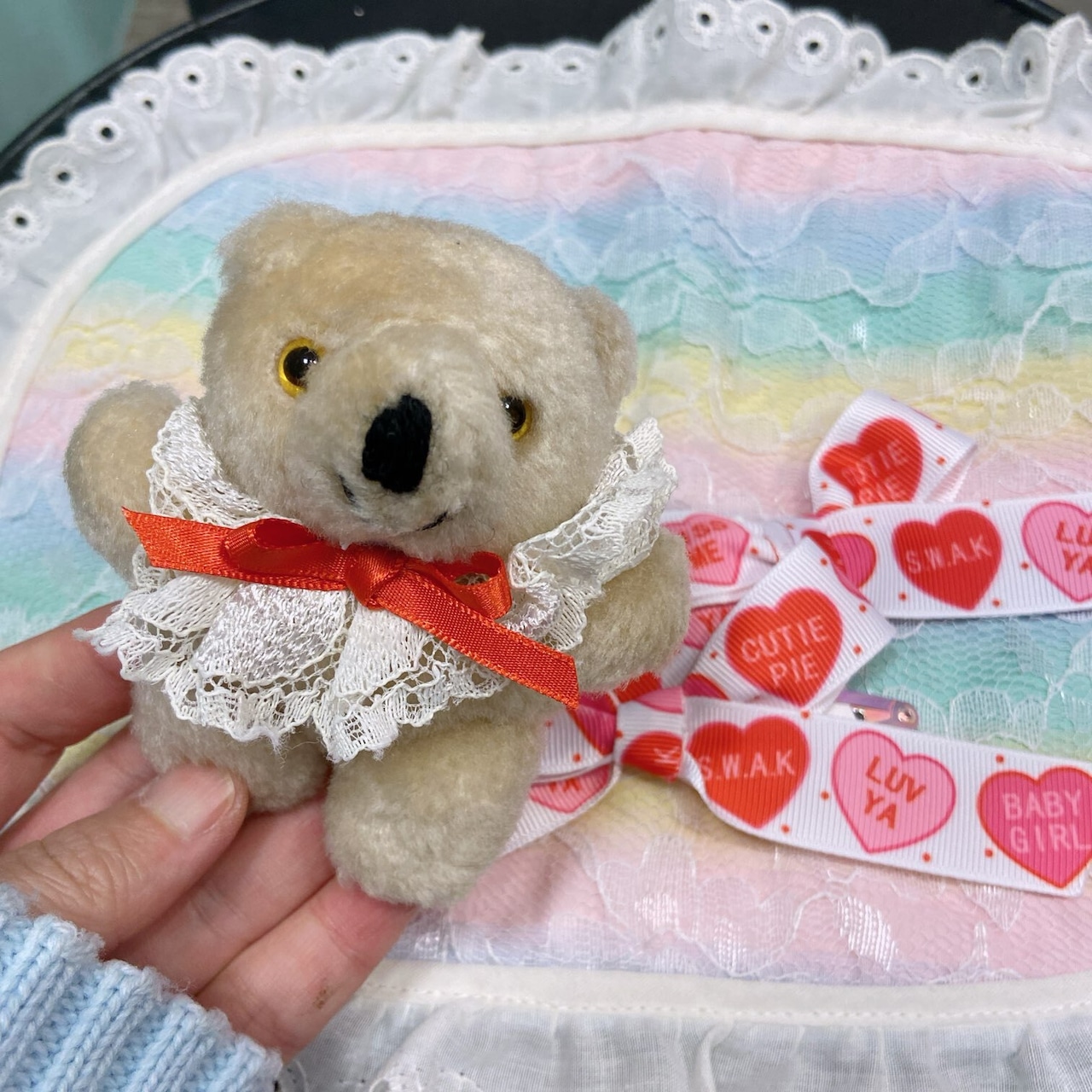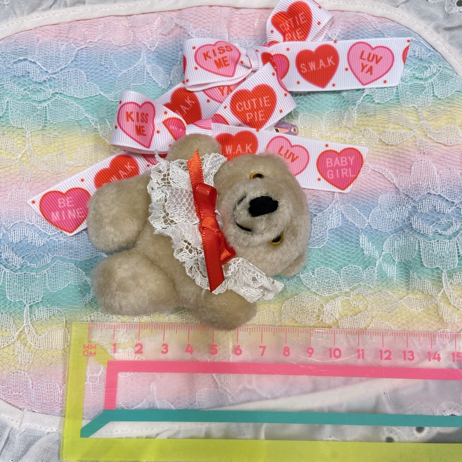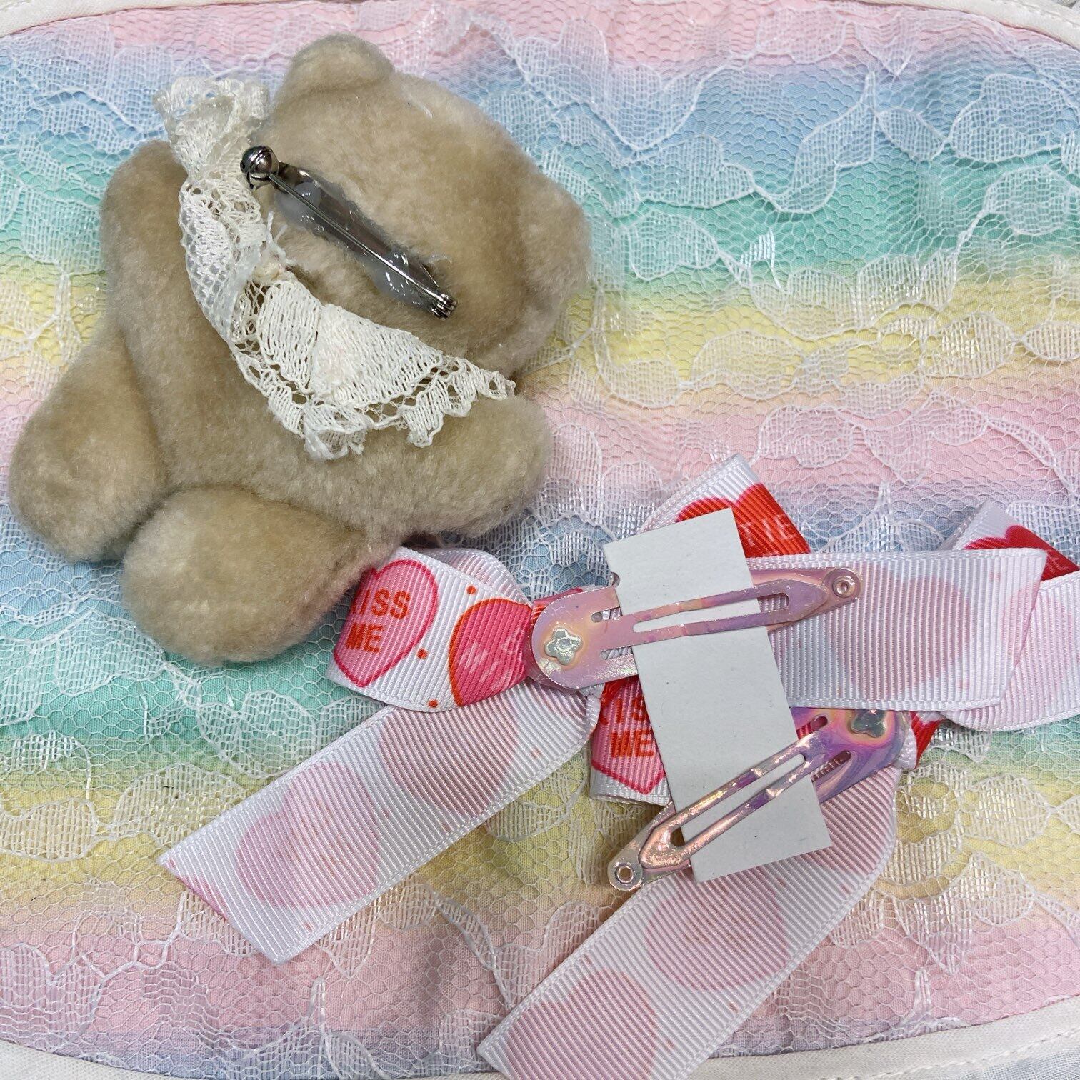 Vintageのミニぬいぐるみのブローチとヘアリボン(ぱっちんどめ2個)のセットです⌒♡