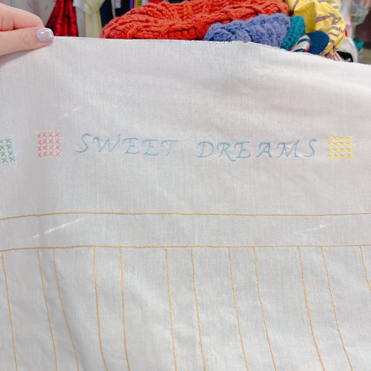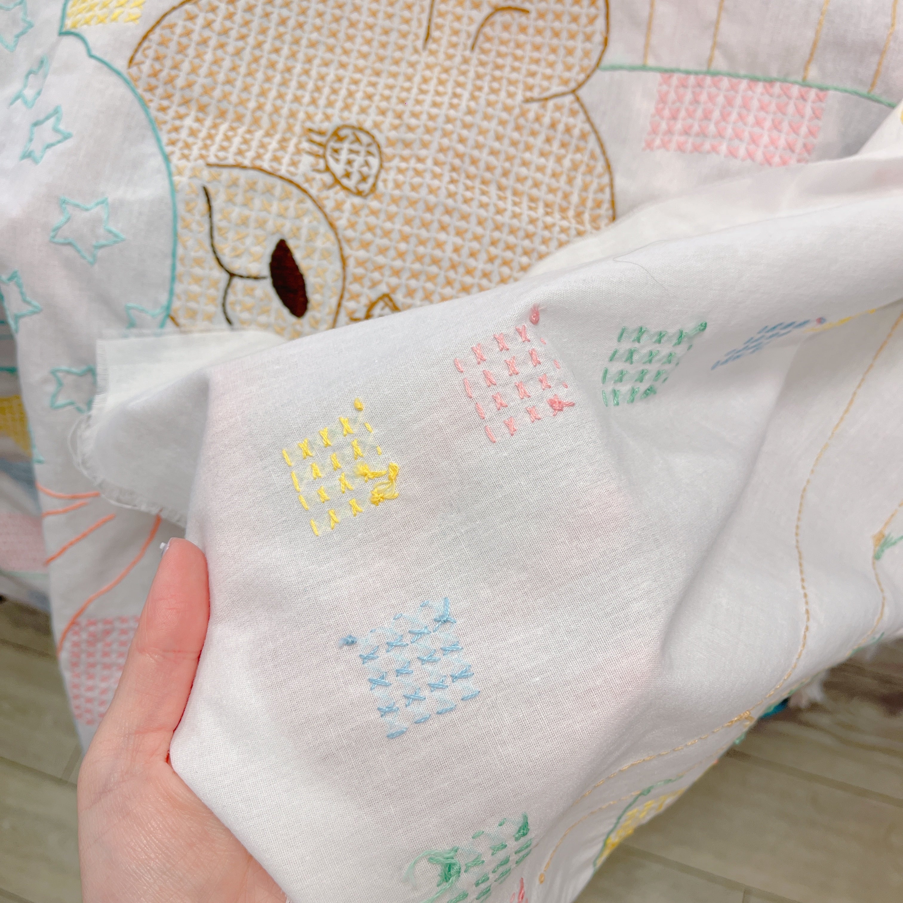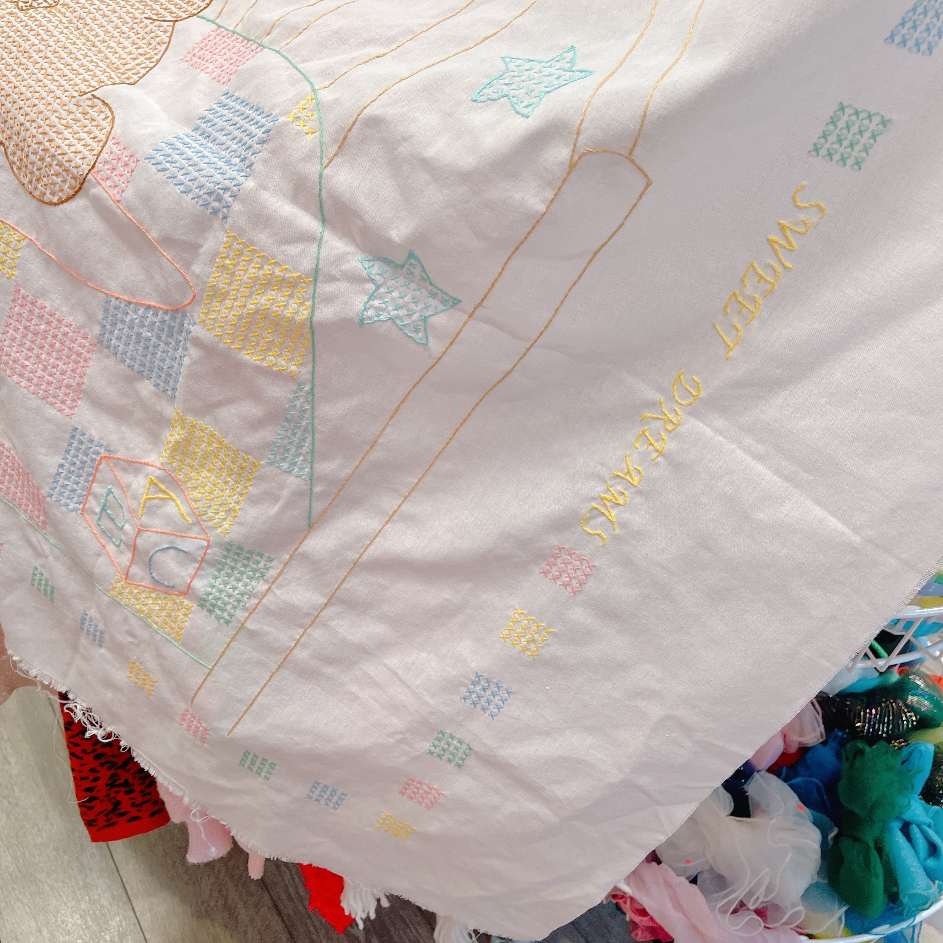 Vtg キルトトップ/生地 おやすみくま クロスステッチ