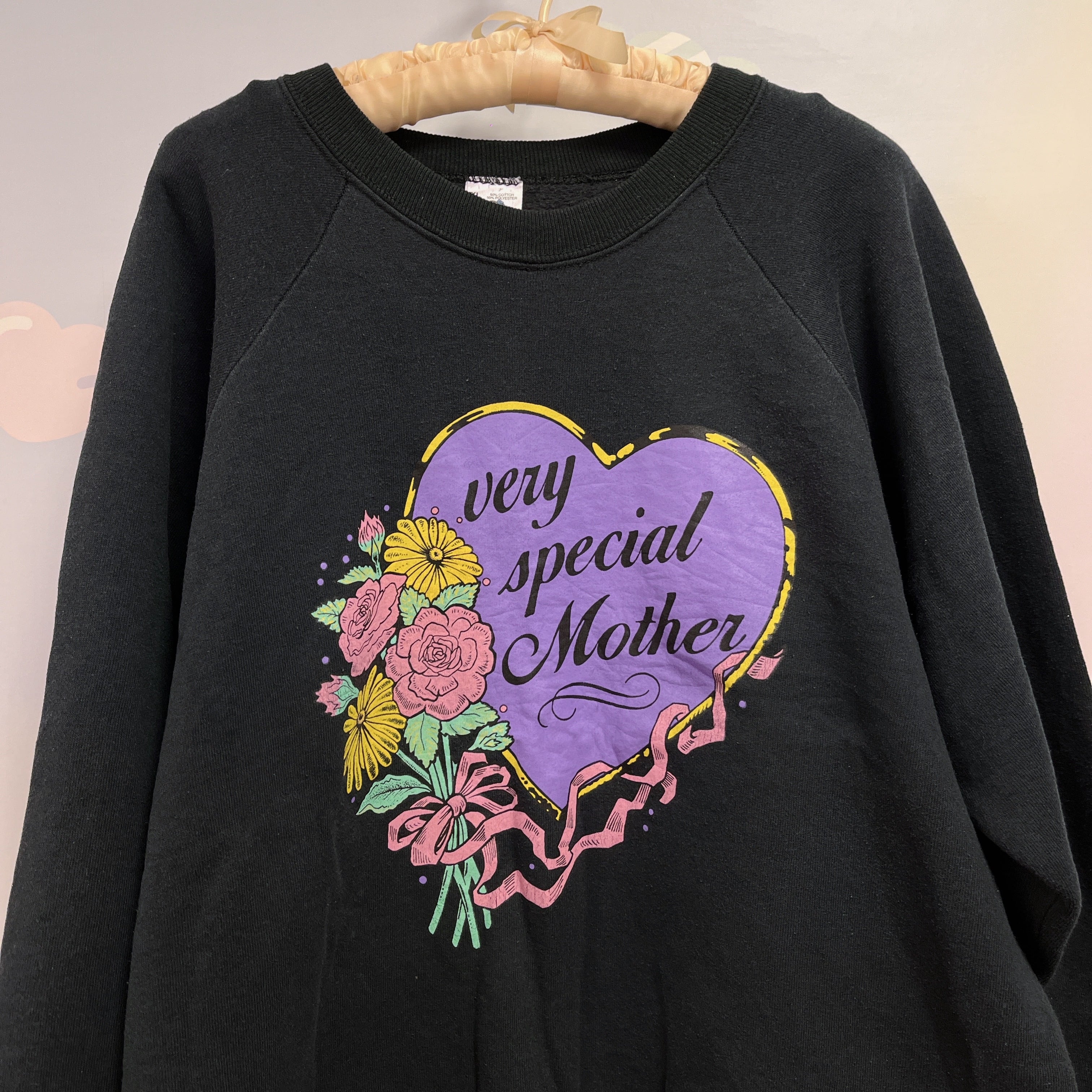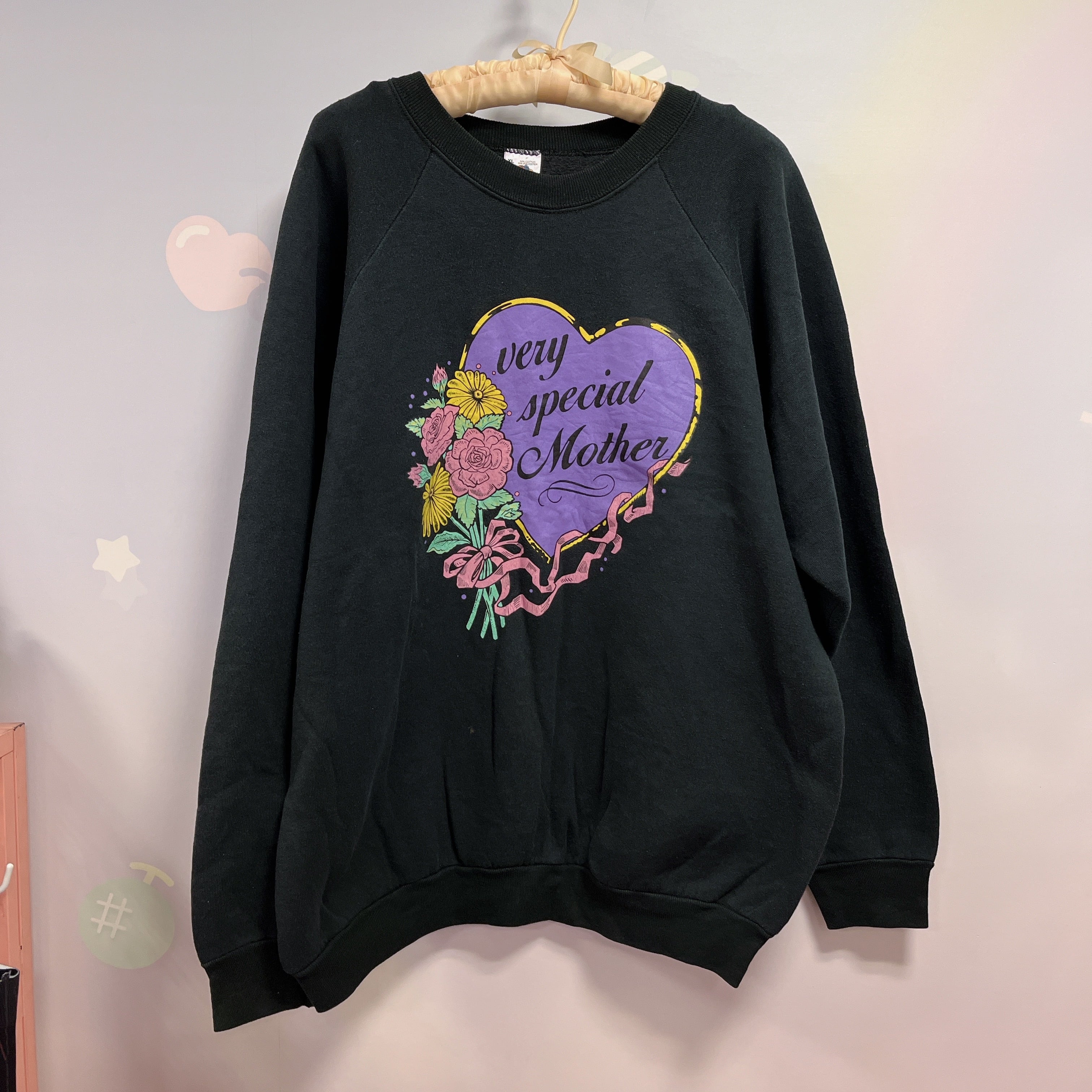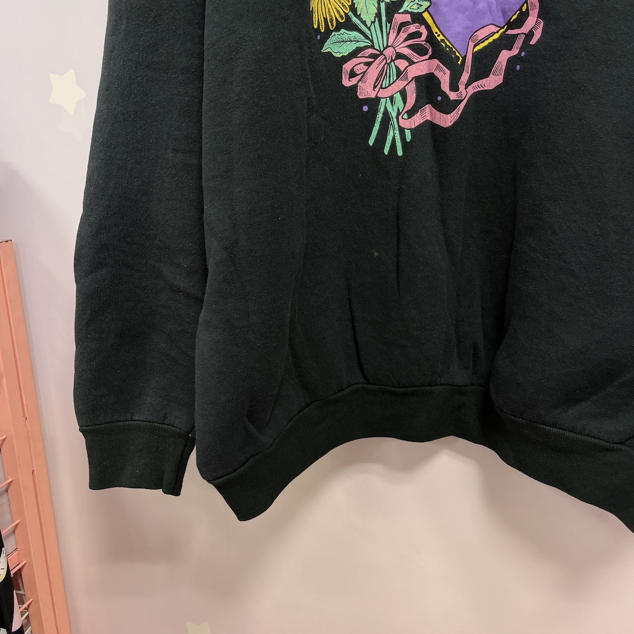 Vtg スウェット 黒 お花・ハート