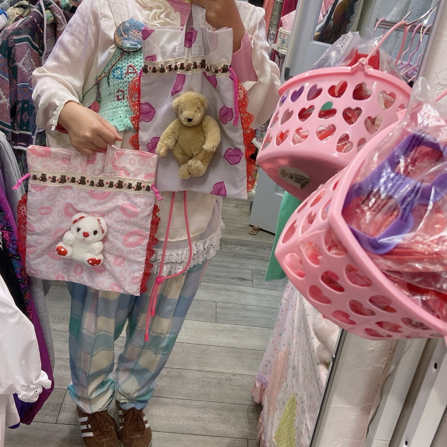 アメリカから仕入れたVintageぬいぐるみと生地を使って製作しています。