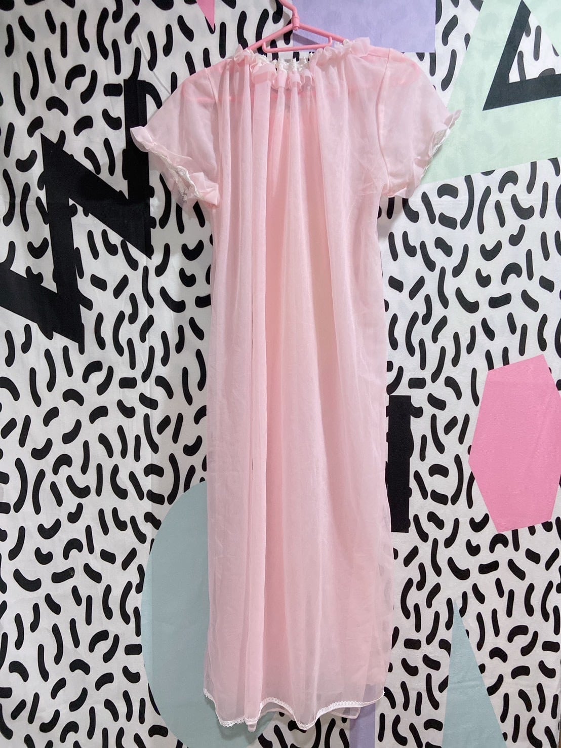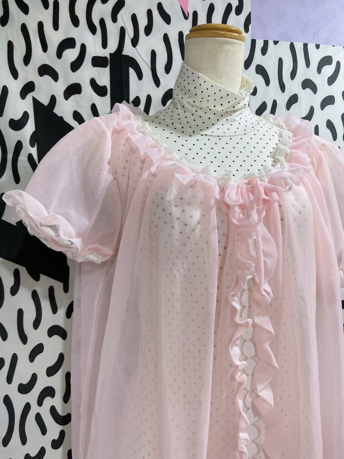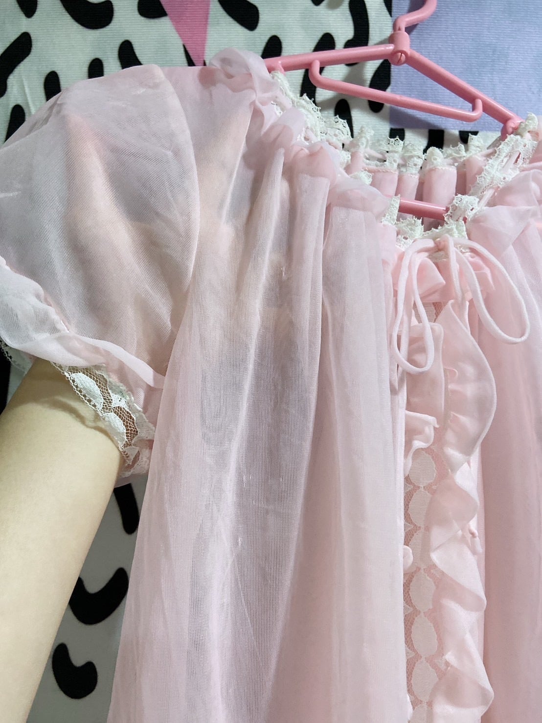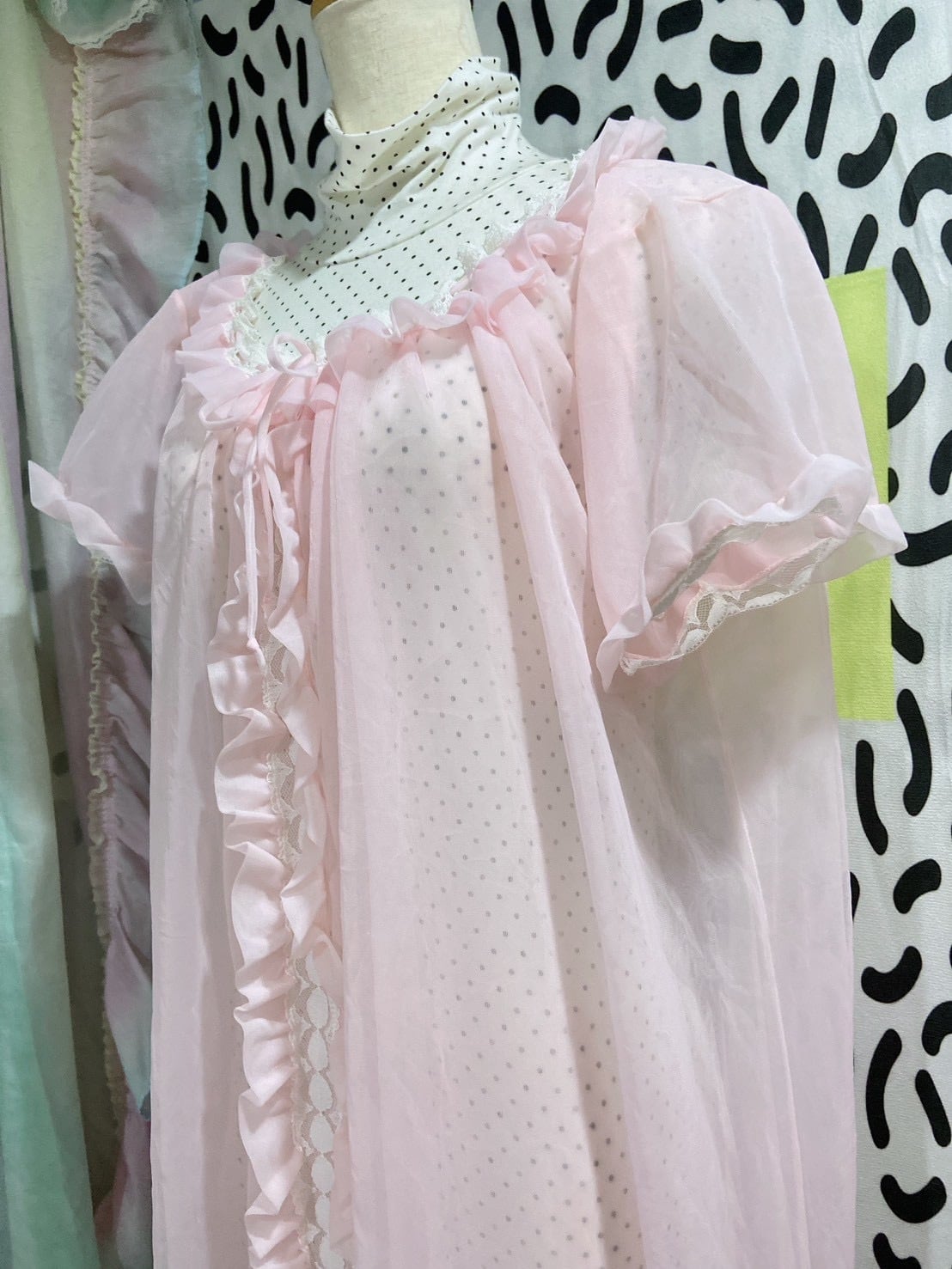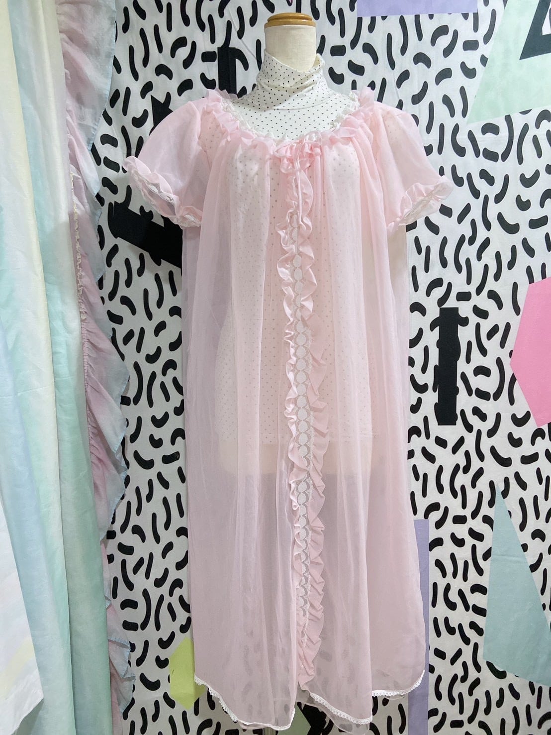 Vtg ランジェリーワンピ ピンク パフスリーブ