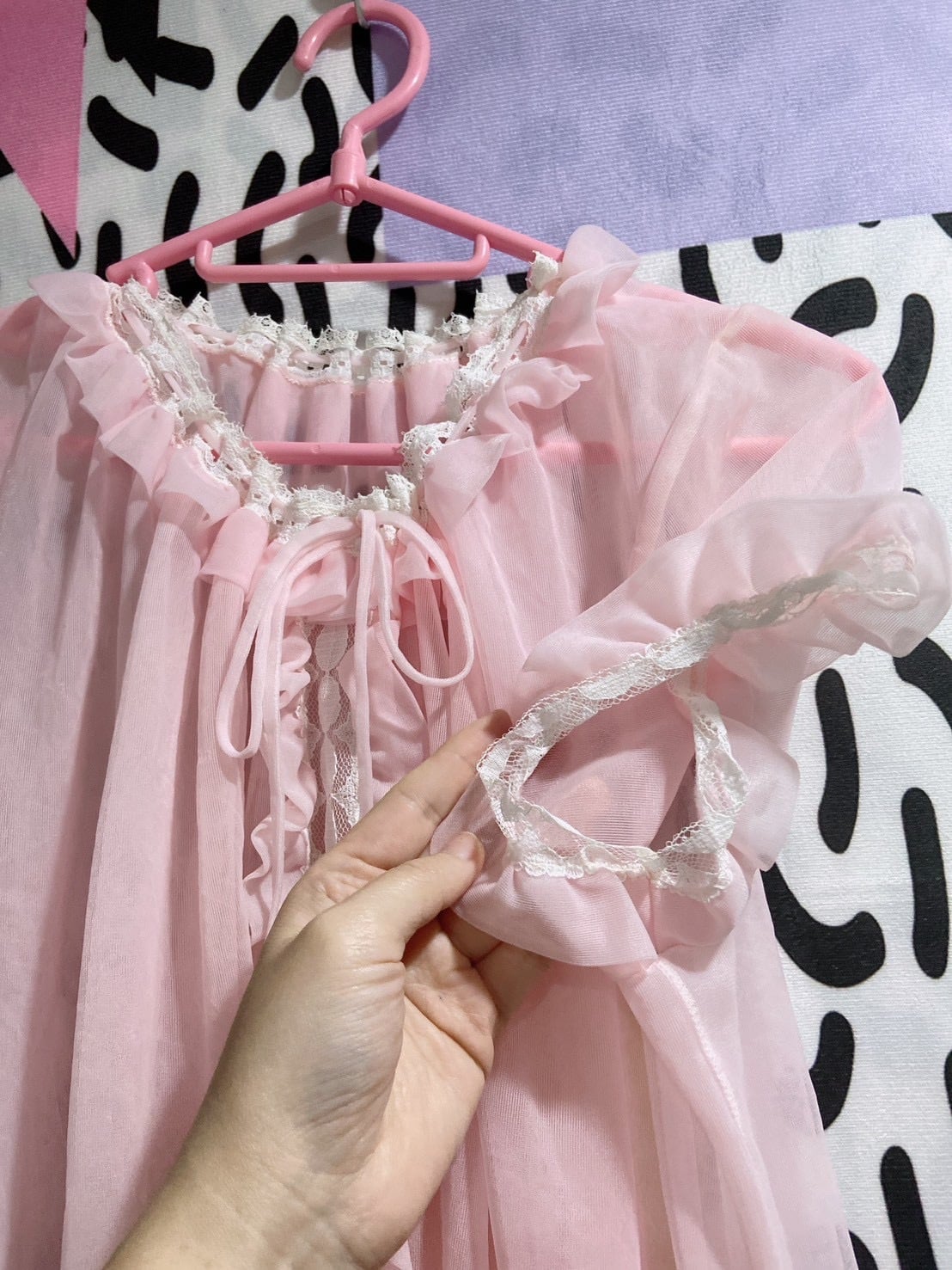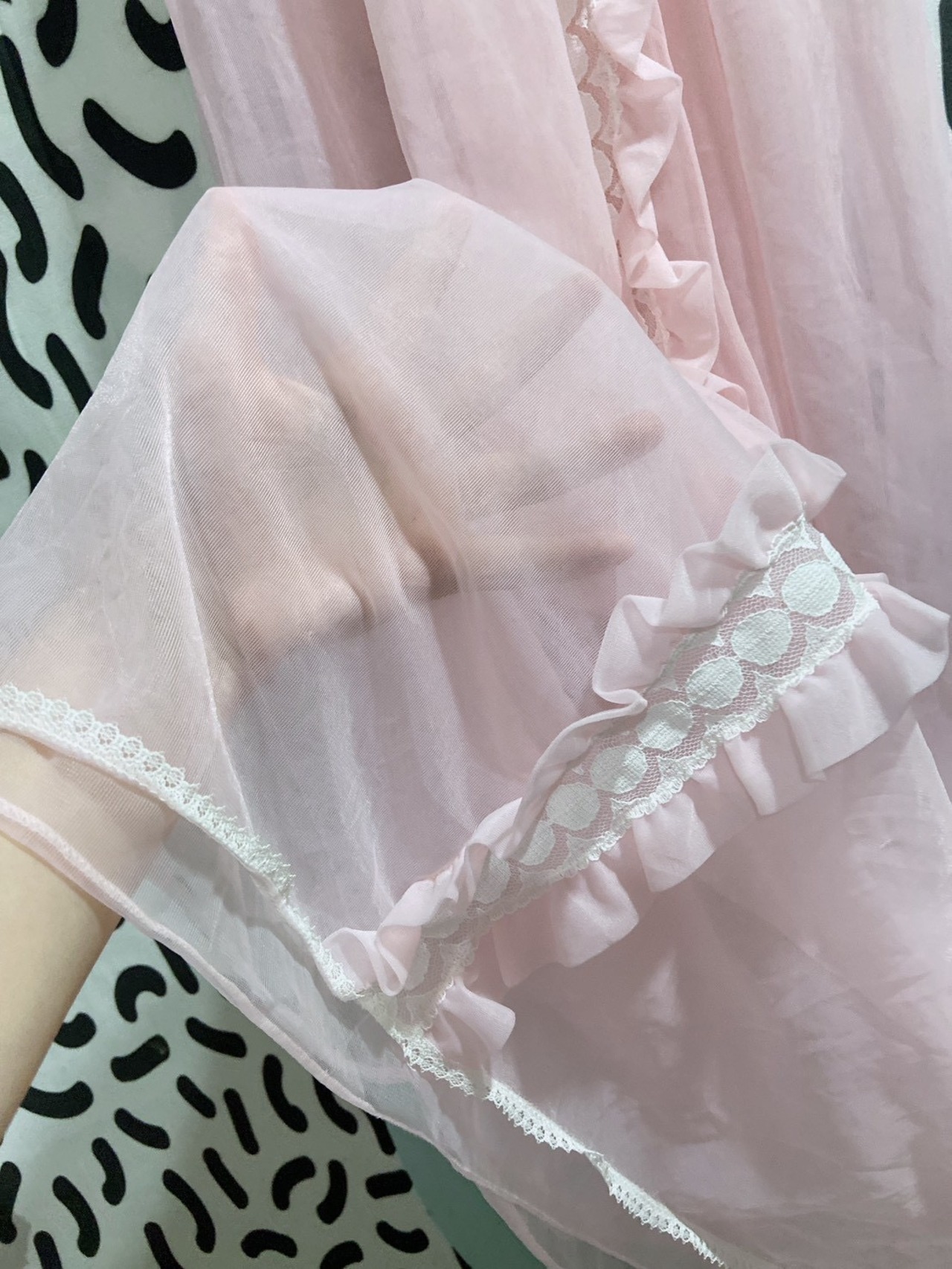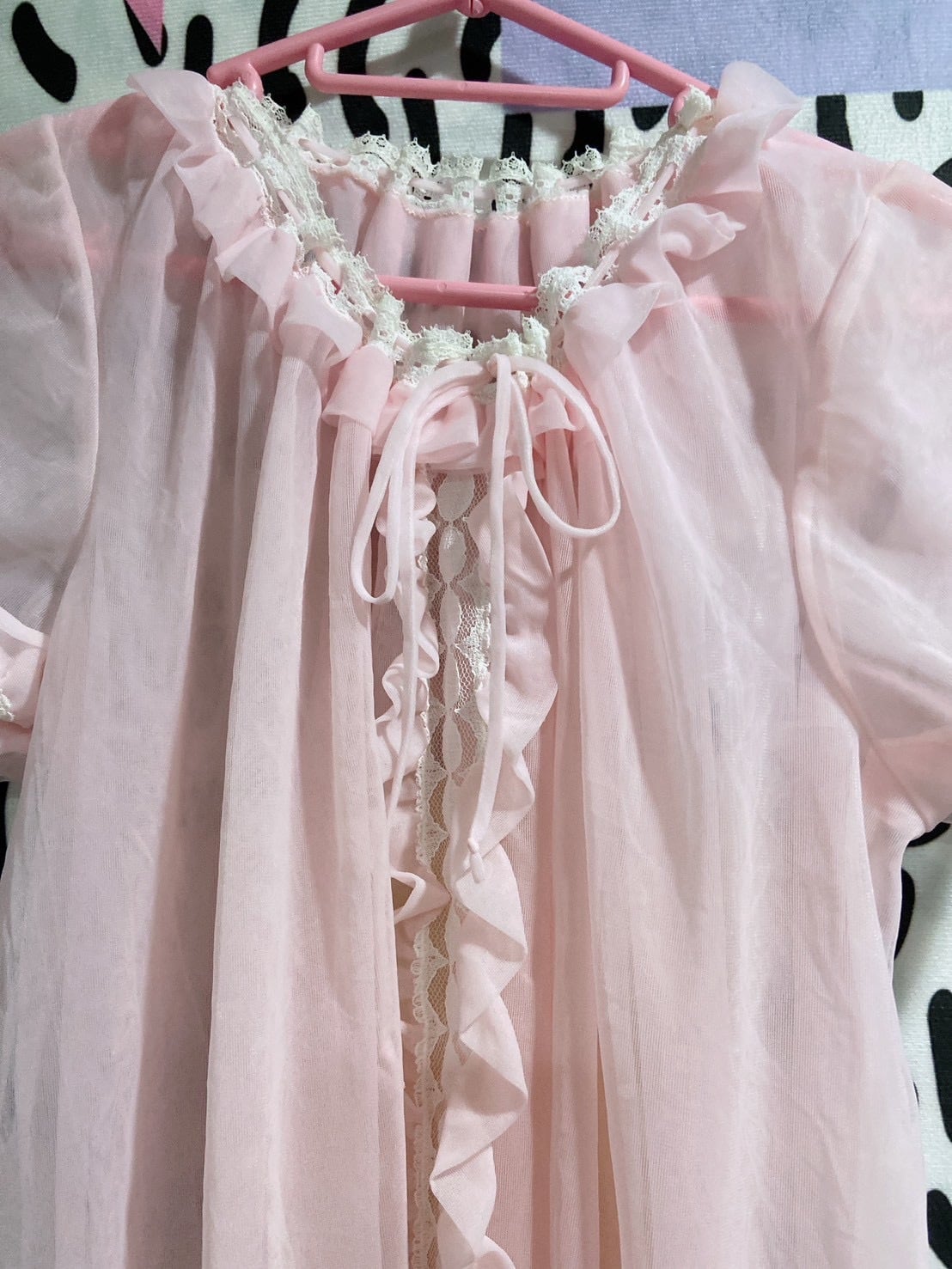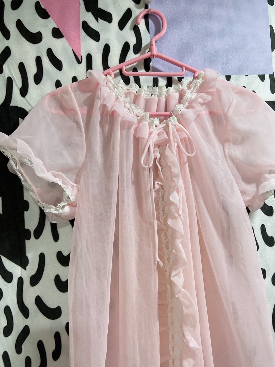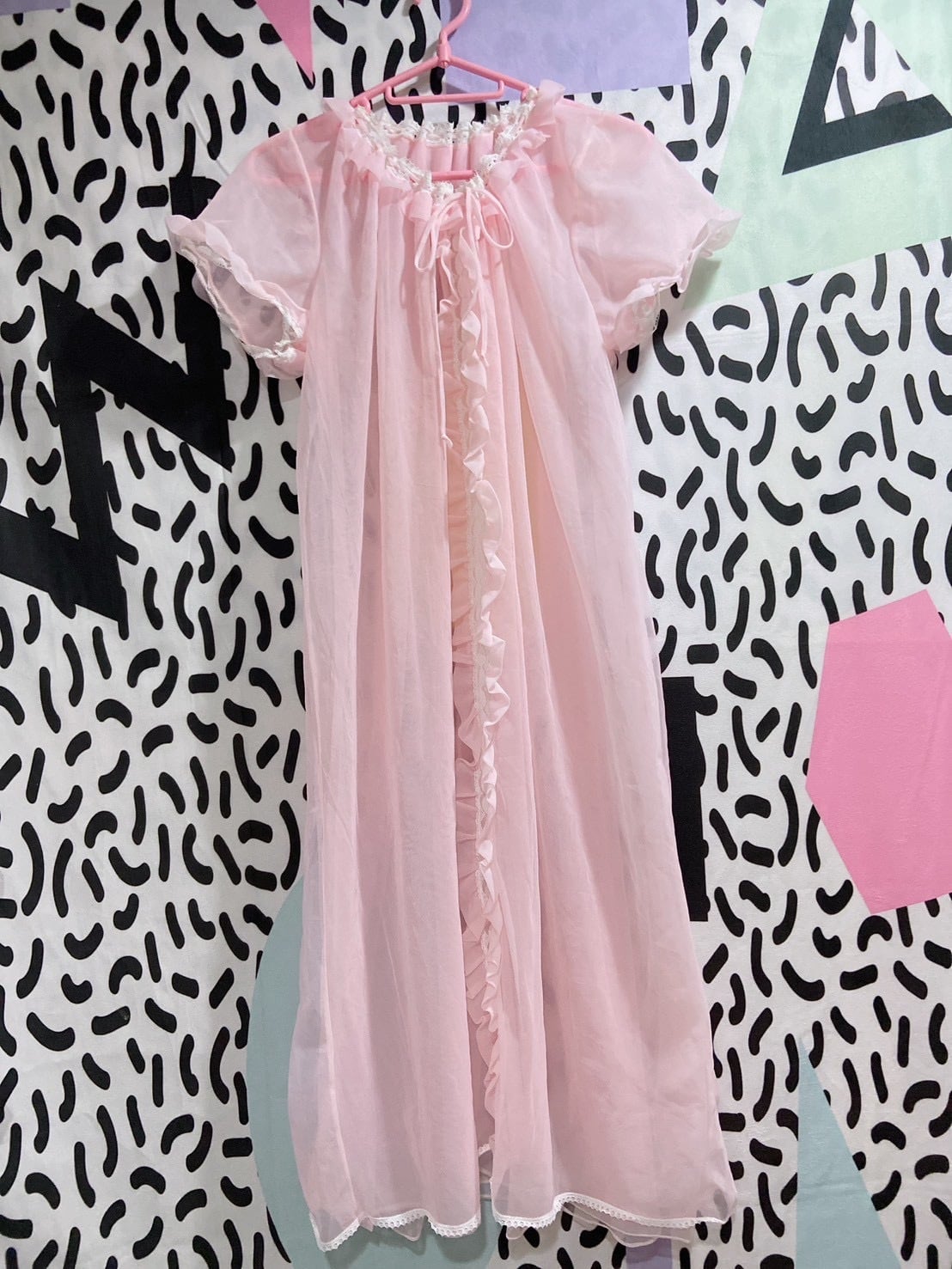 Vtg ランジェリーワンピ ピンク パフスリーブ