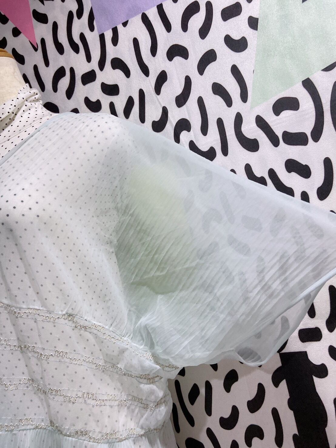 Vtg ランジェリーワンピ 薄水色 銀糸