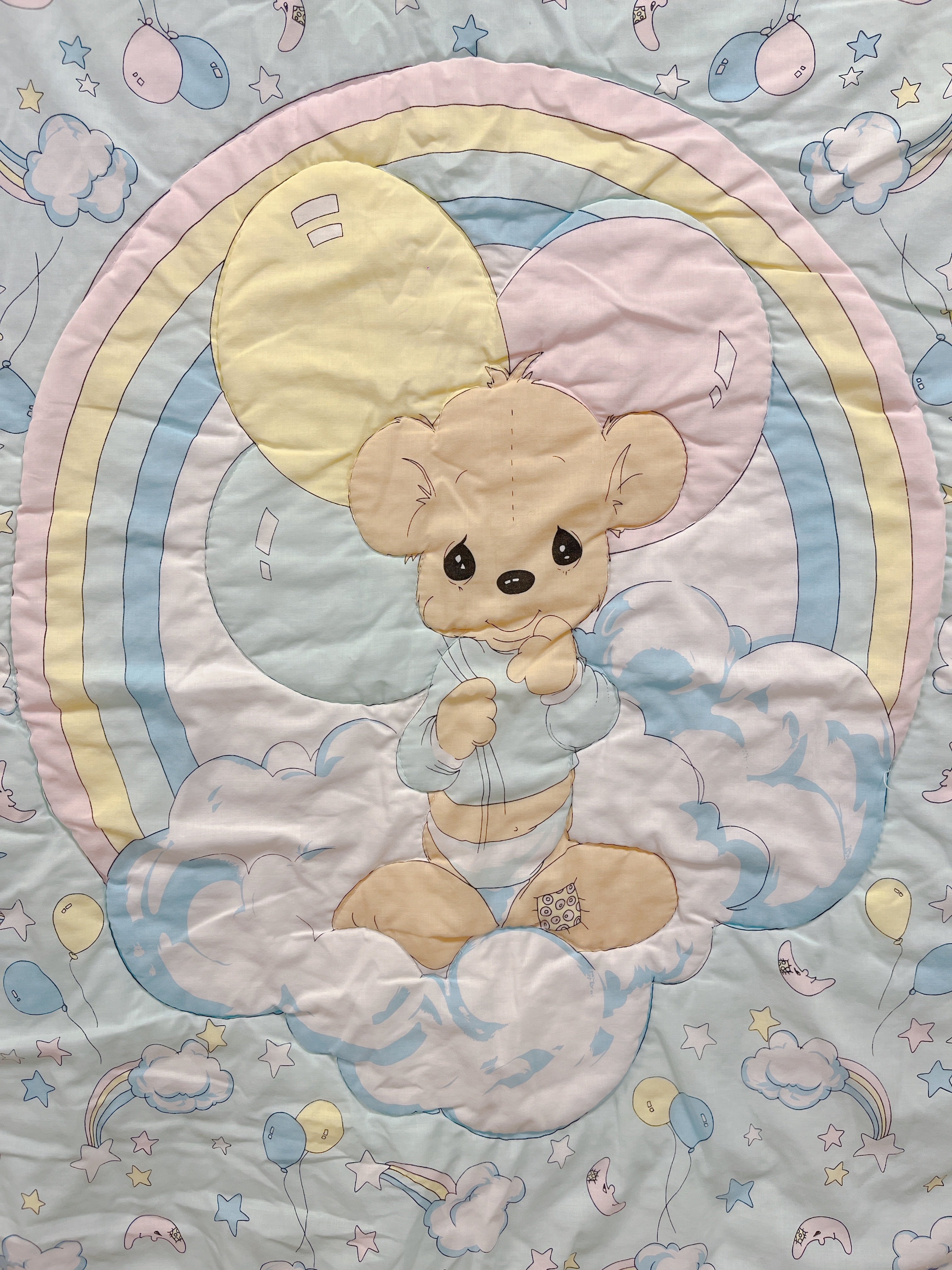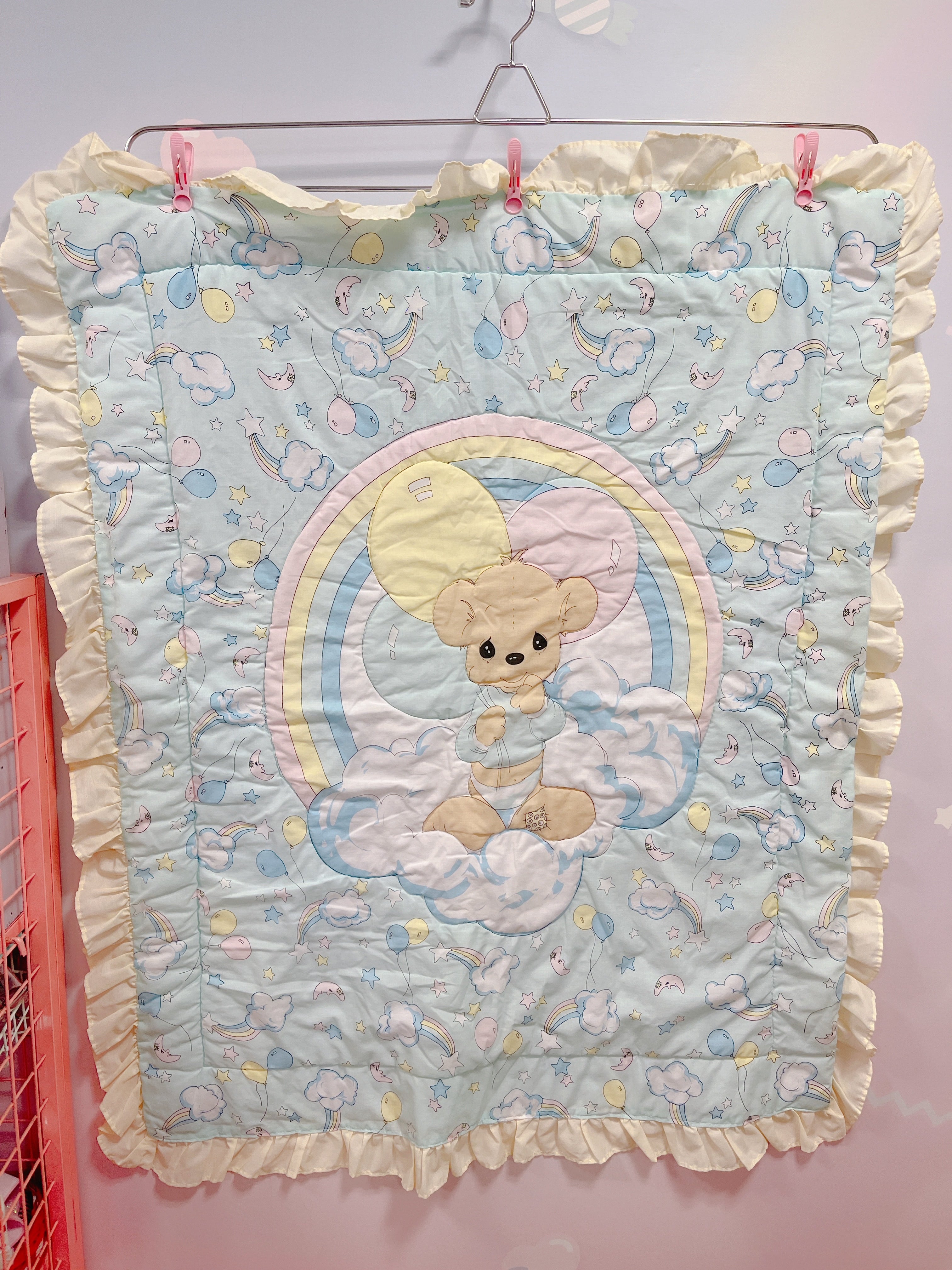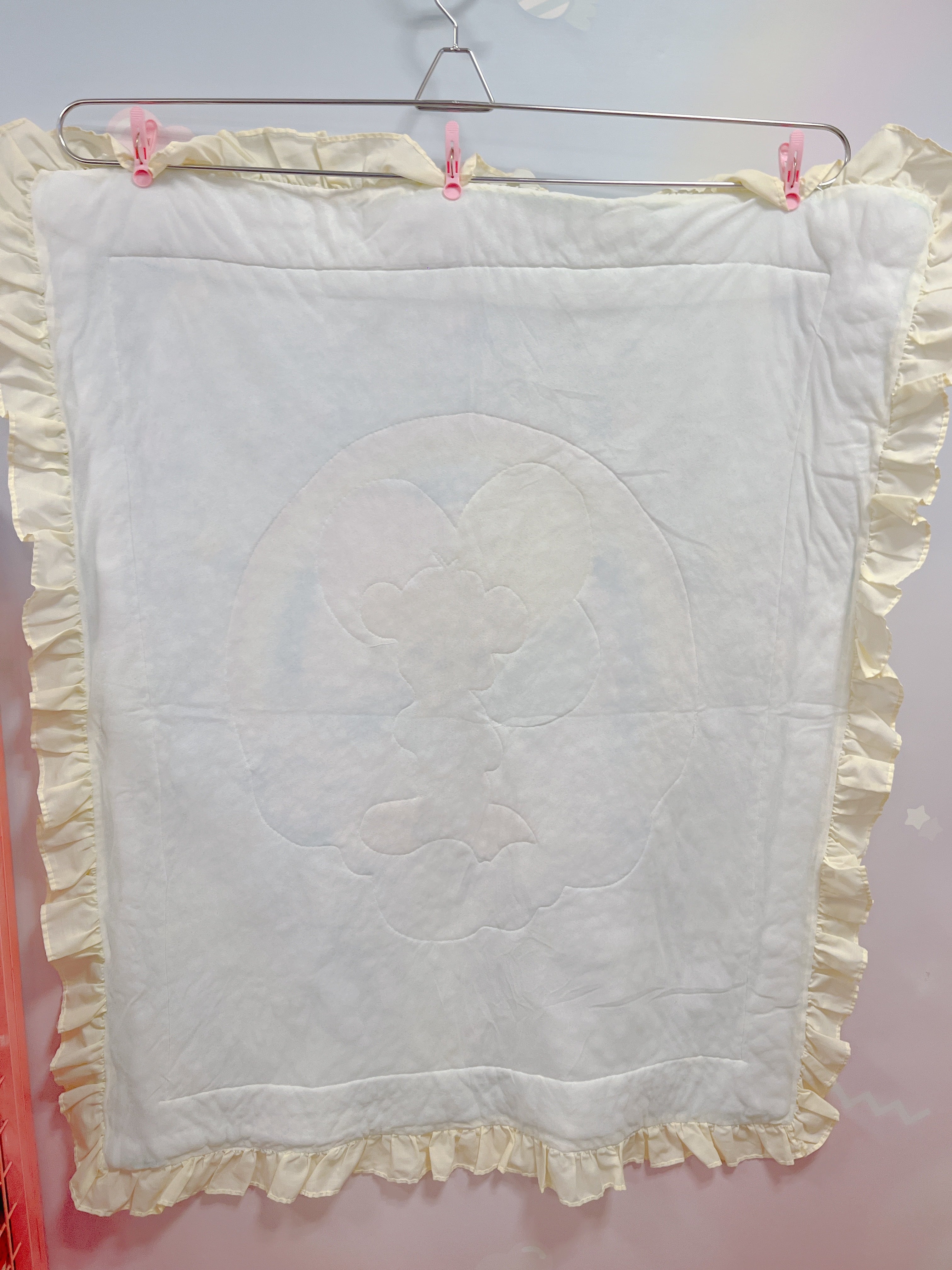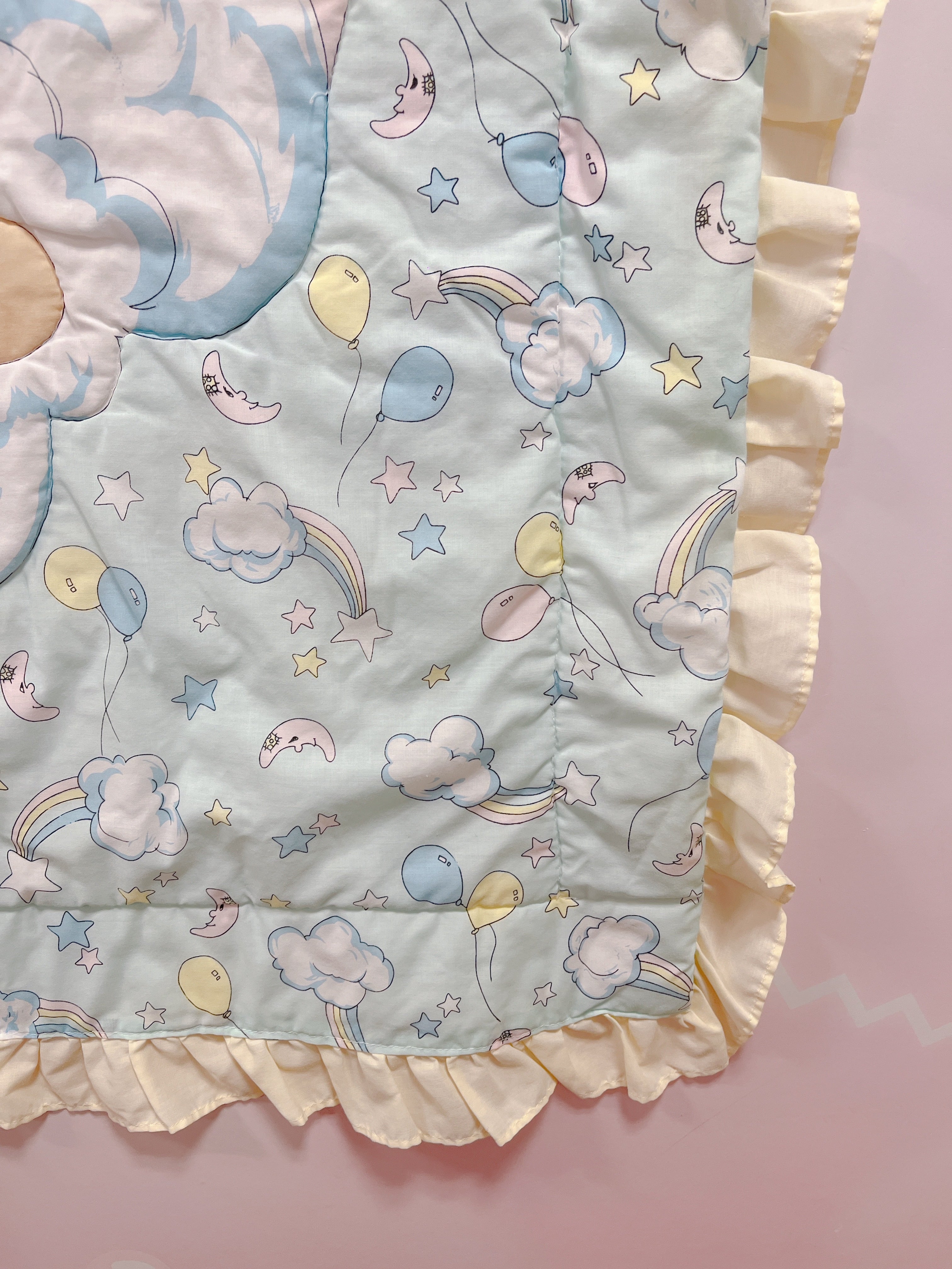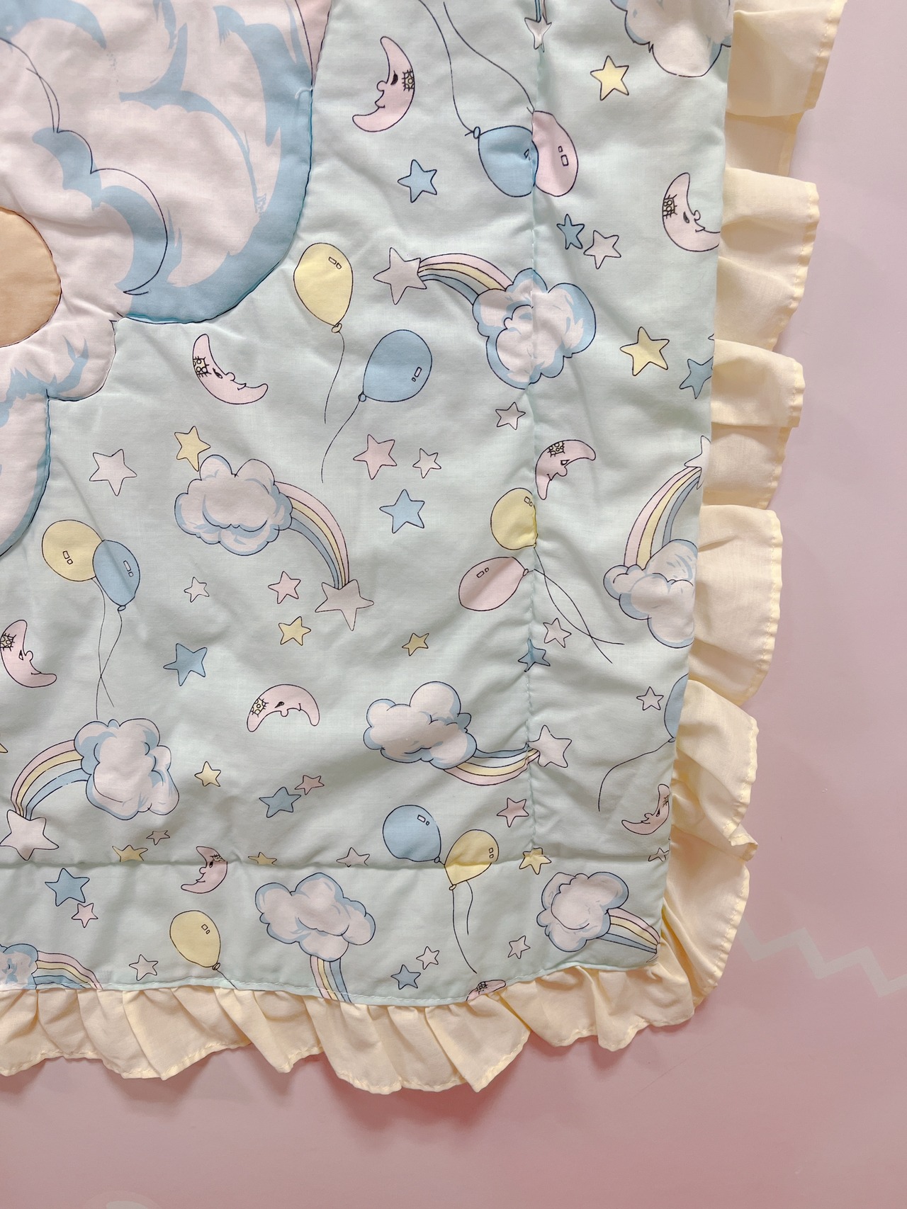 Vtg キルトラグ/マット くま・虹・雲 イエローフリル