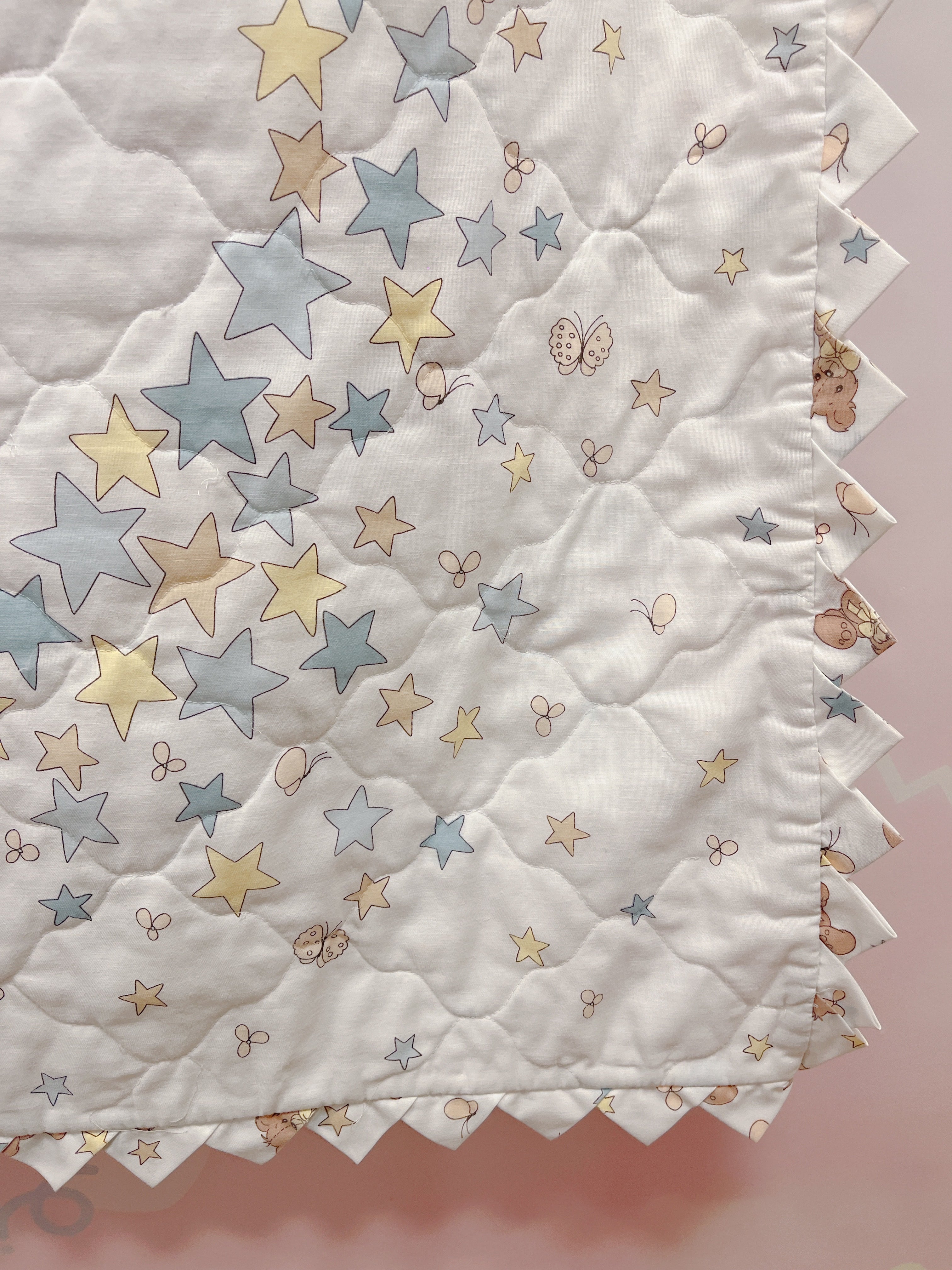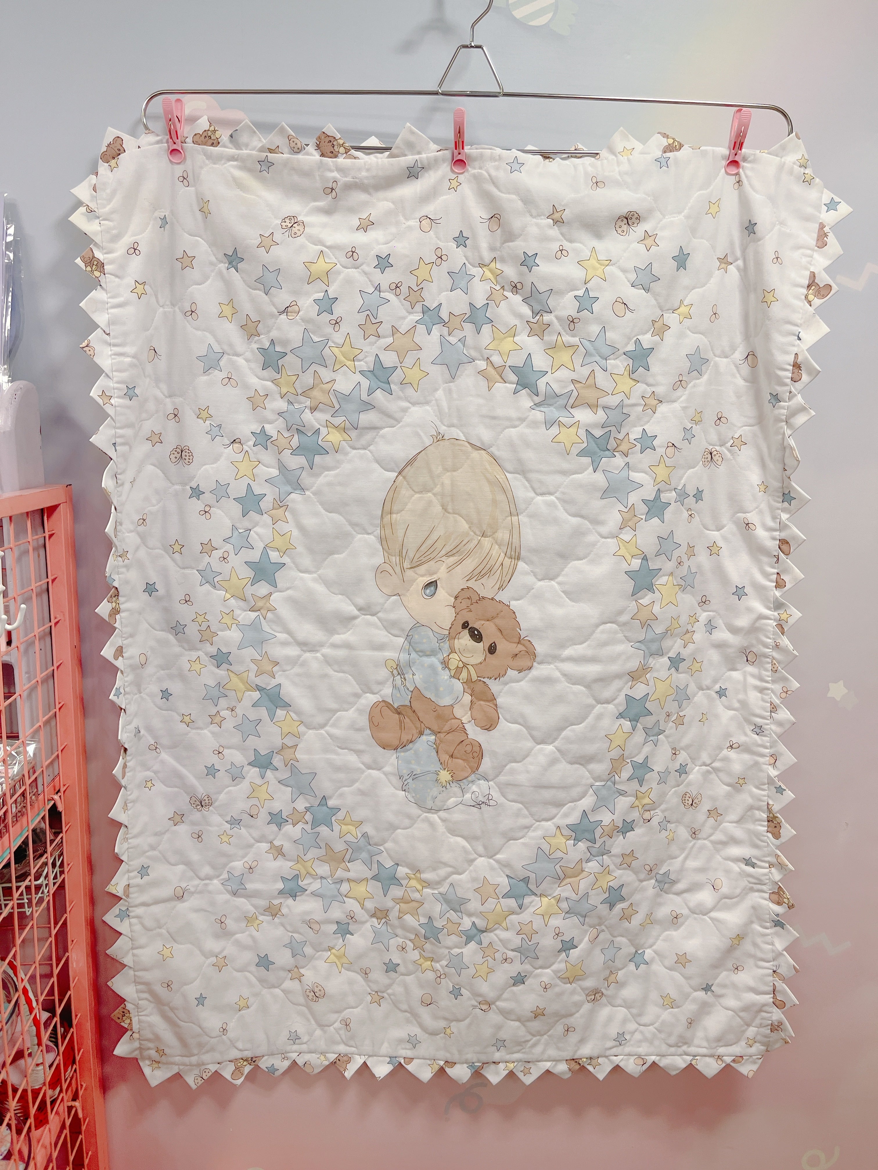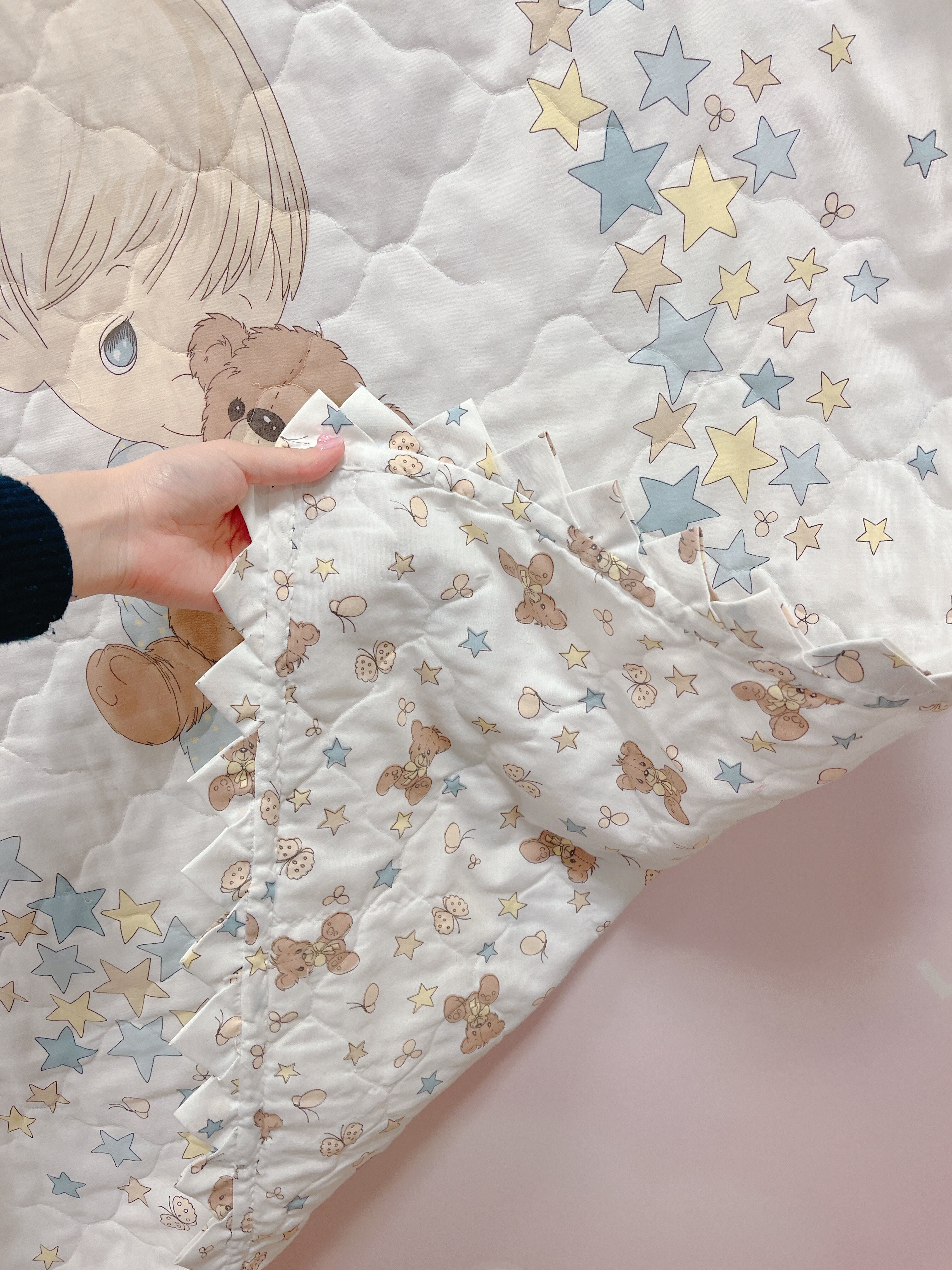 Vtg キルトラグ/マット 男の子・くま・星 ギザギザ縁