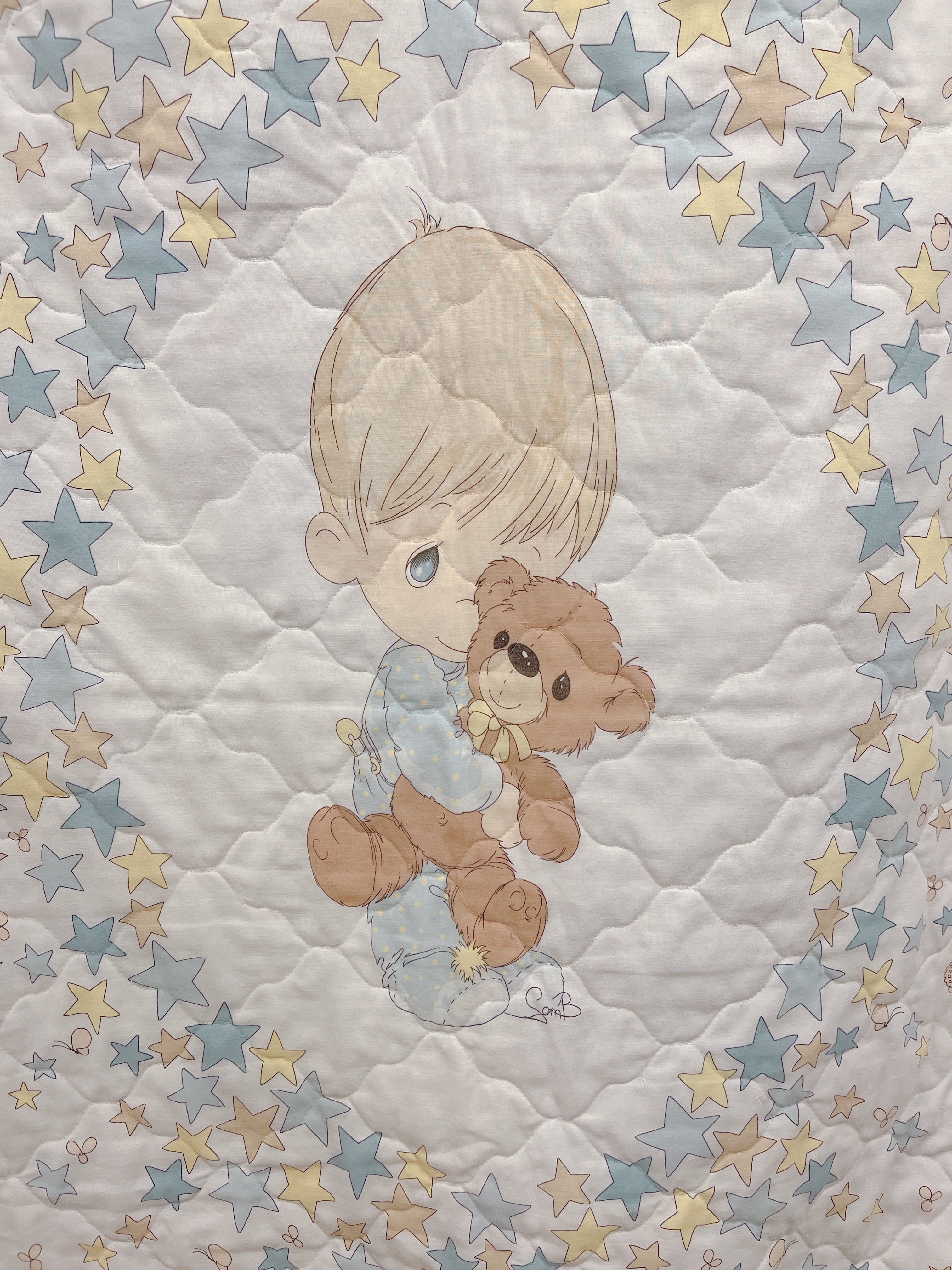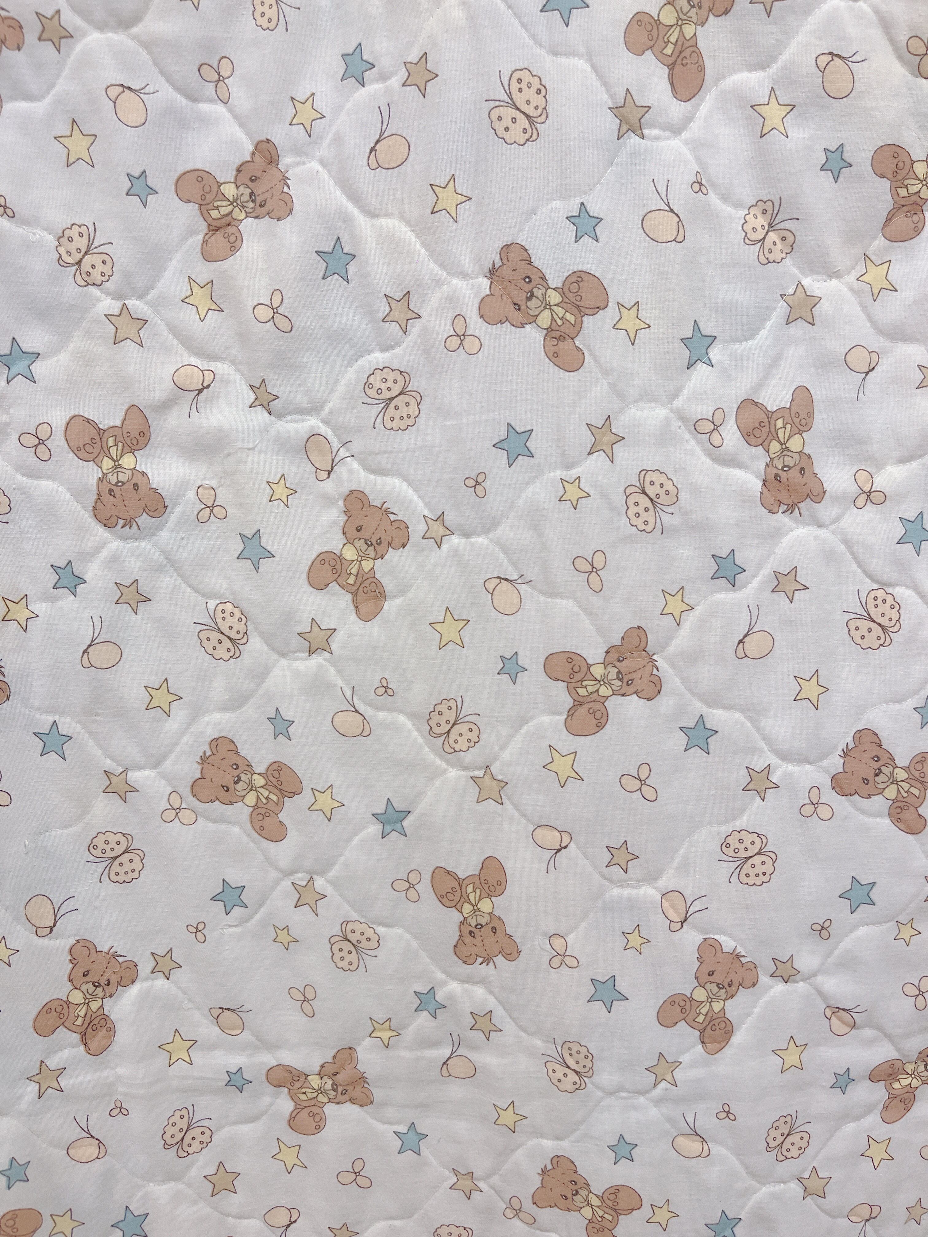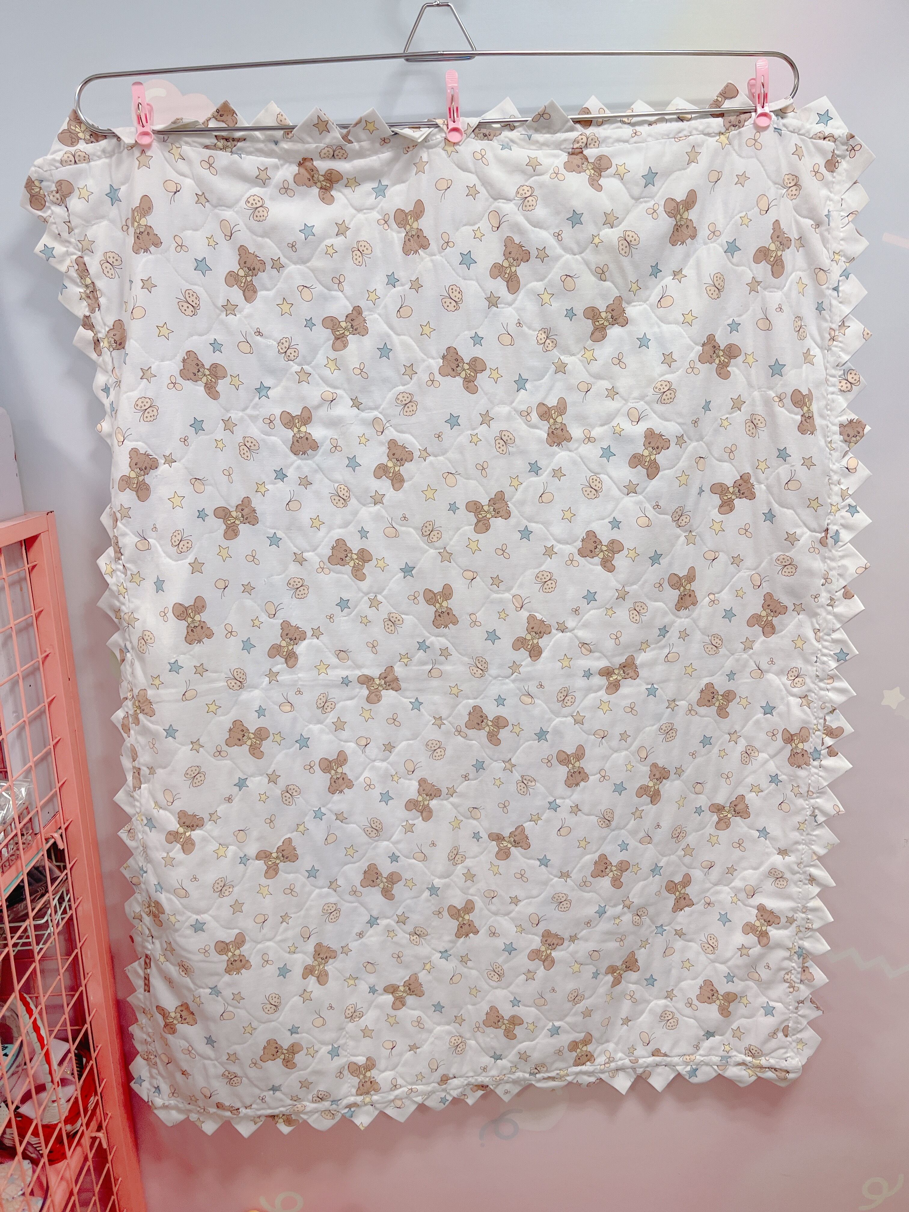 Vtg キルトラグ/マット 男の子・くま・星 ギザギザ縁