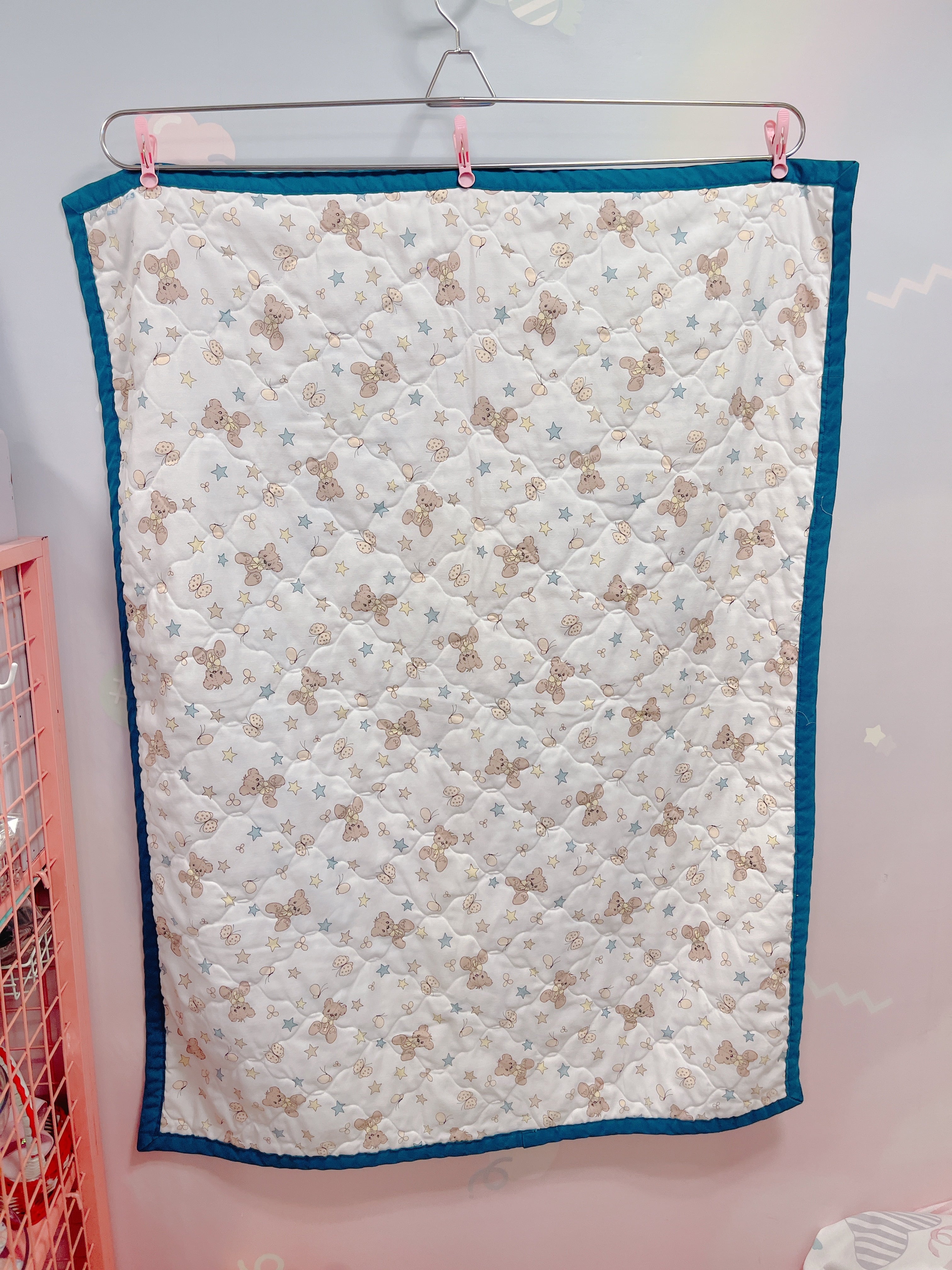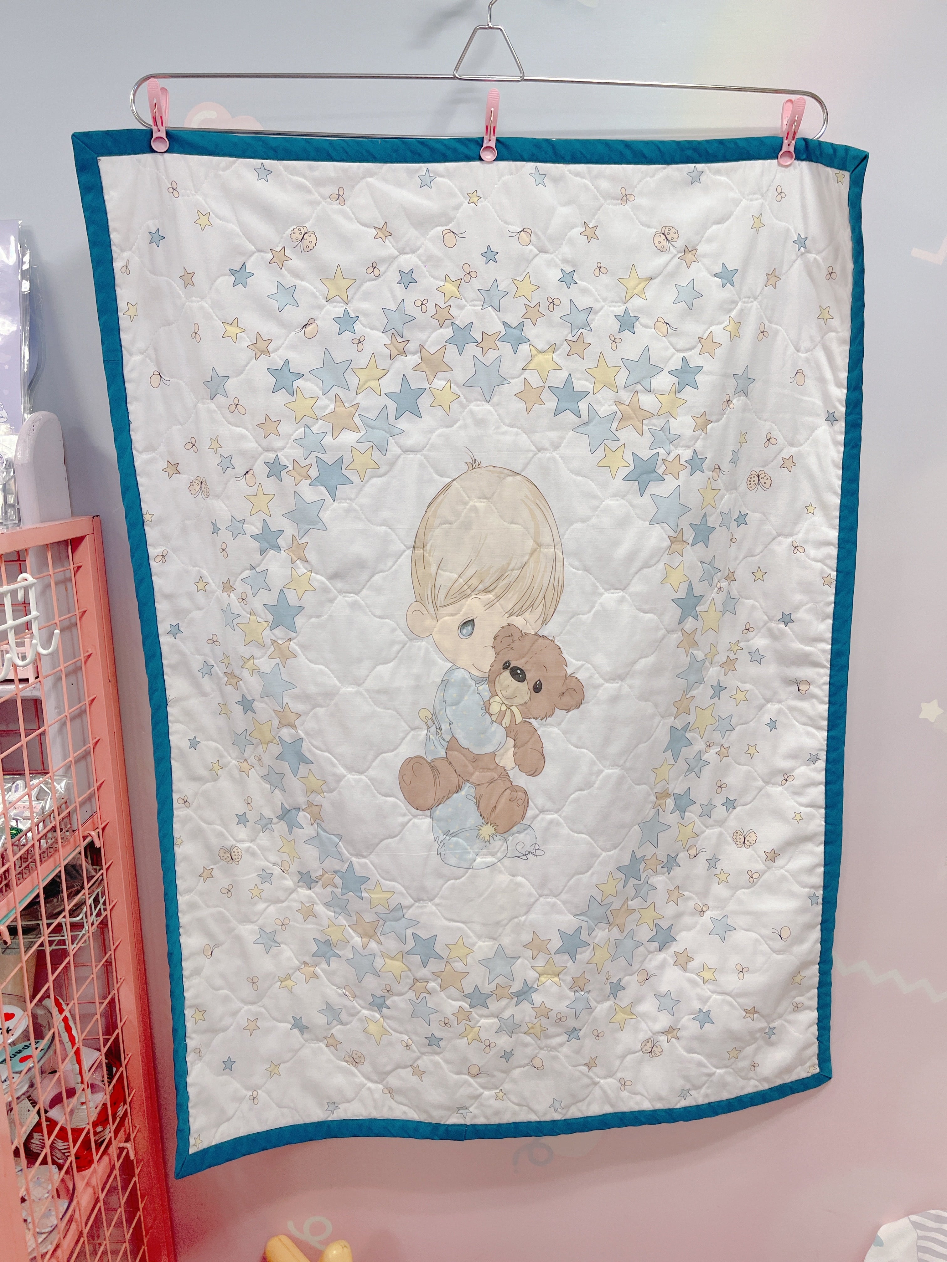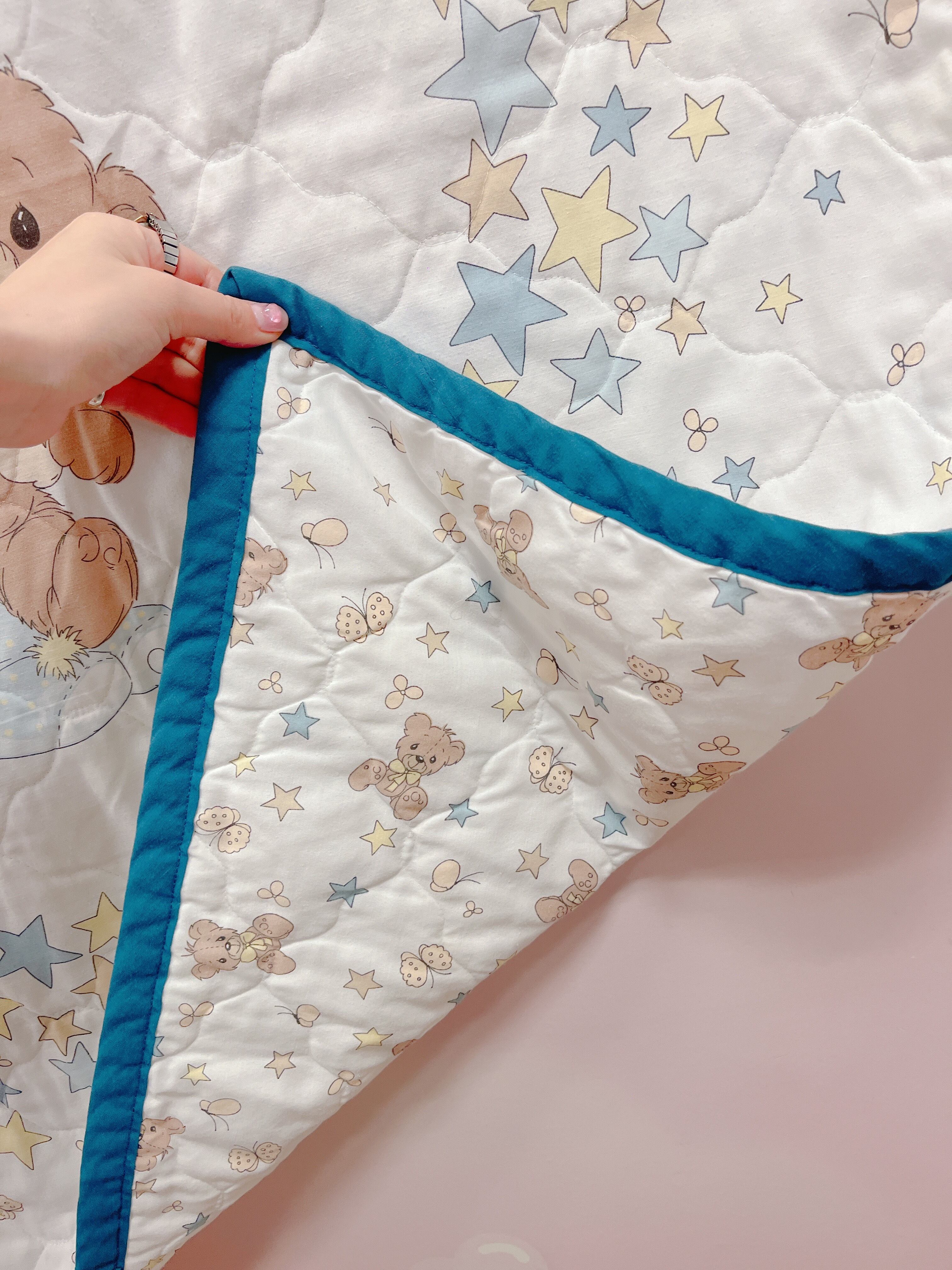 Vtg キルトラグ/マット 男の子・くま・星 青縁