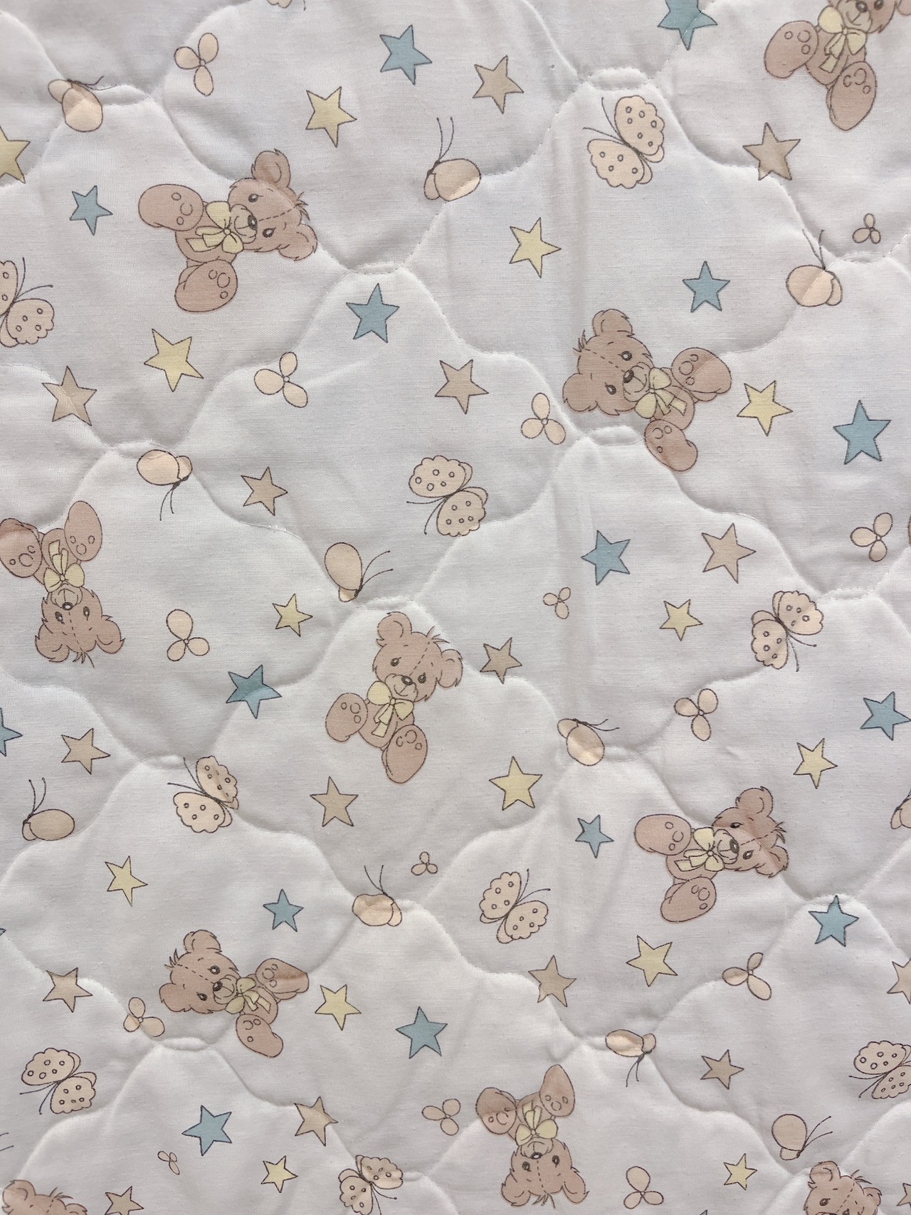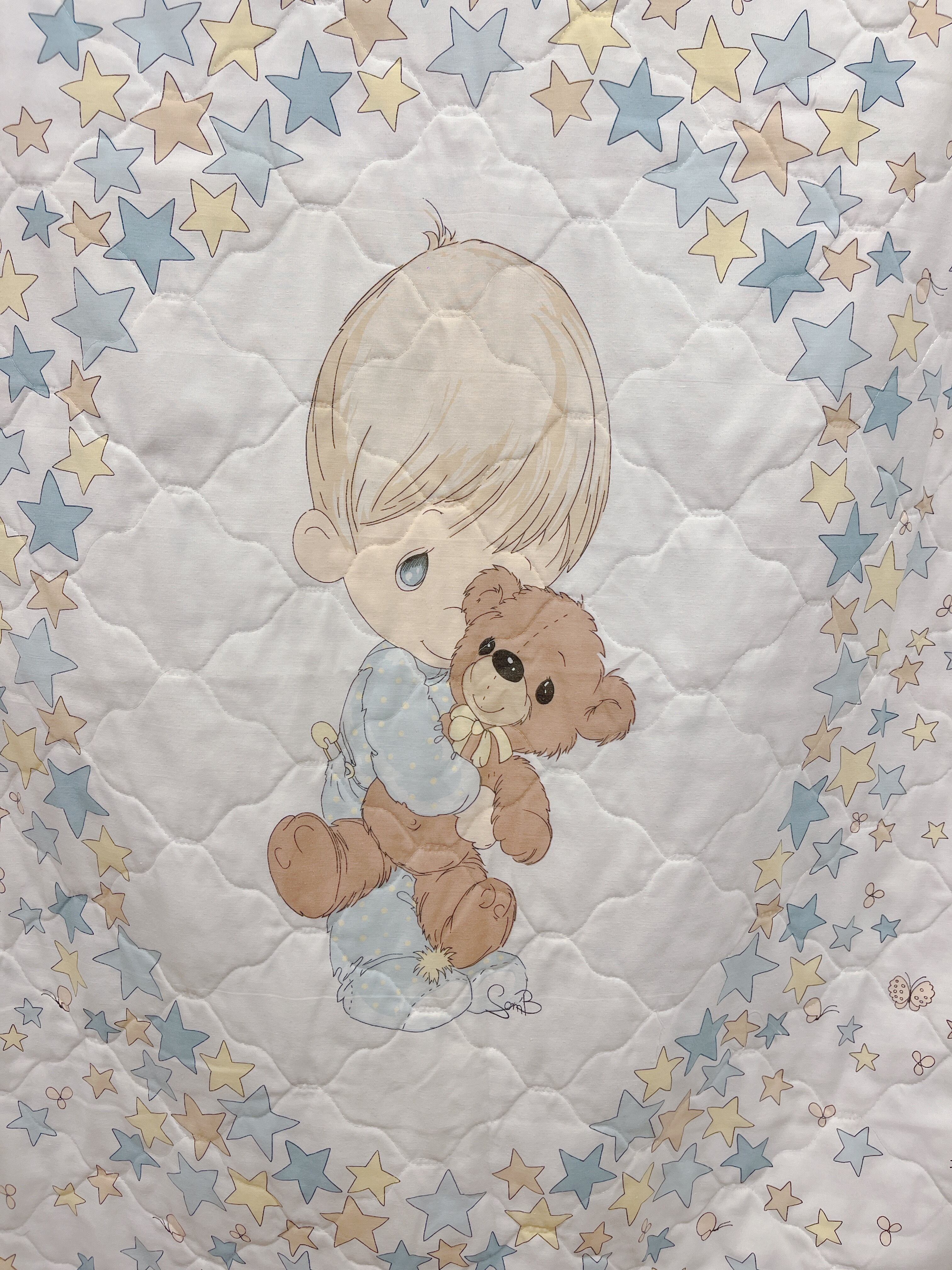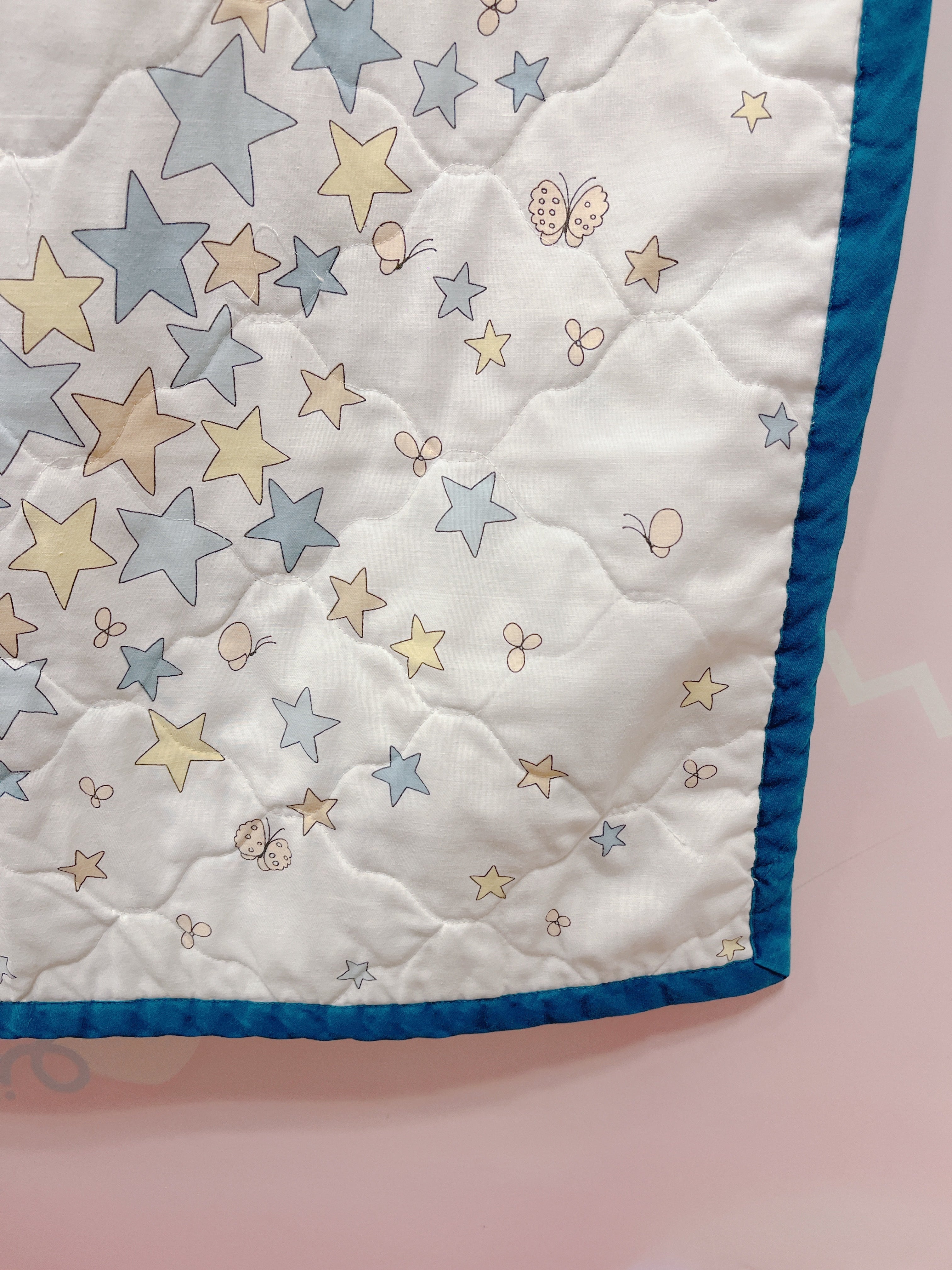 Vtg キルトラグ/マット 男の子・くま・星 青縁