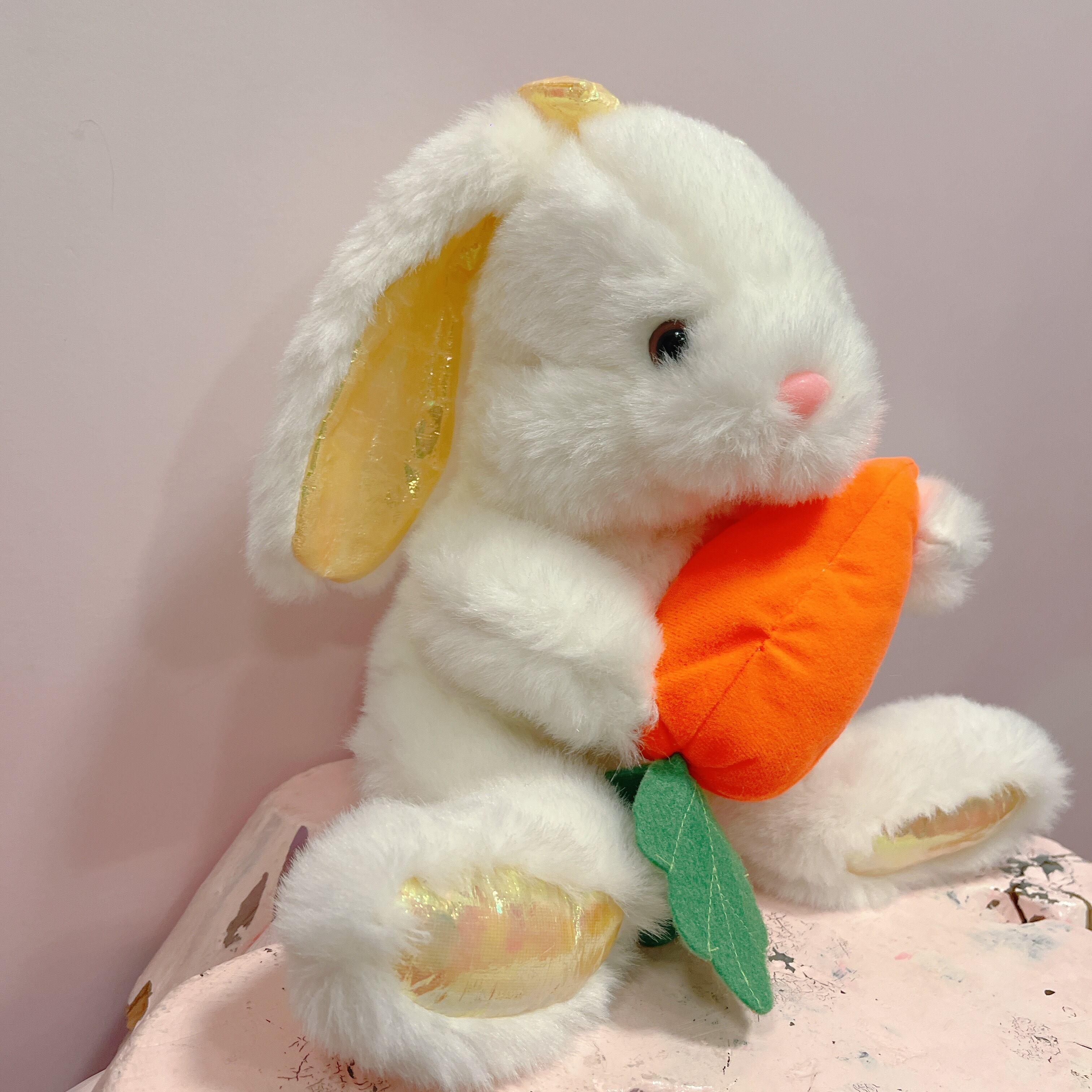 Vtg ぬいぐるみ 白×オーロライエローうさぎ にんじん