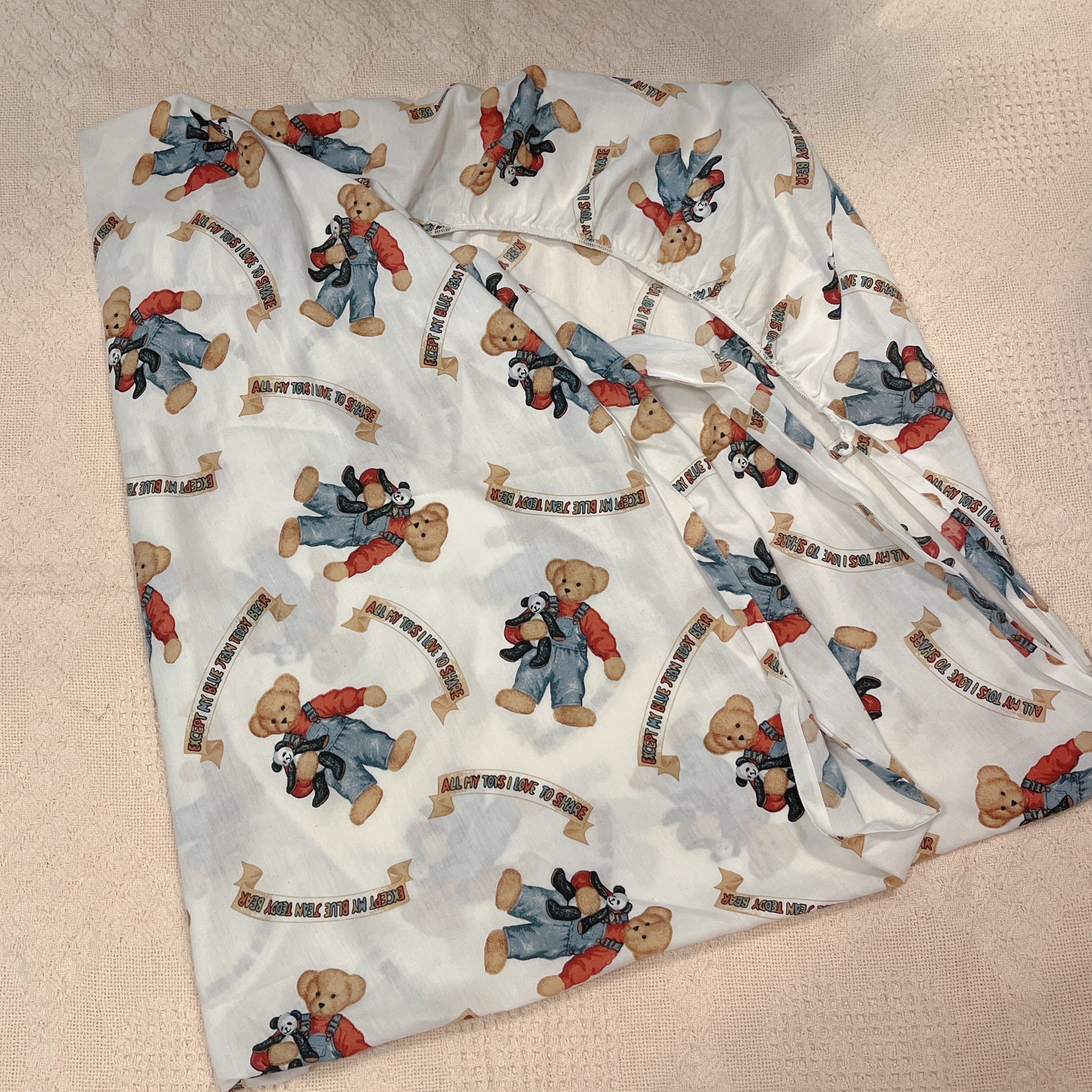 Vtg BABYシーツ テディベア デニムサロペット