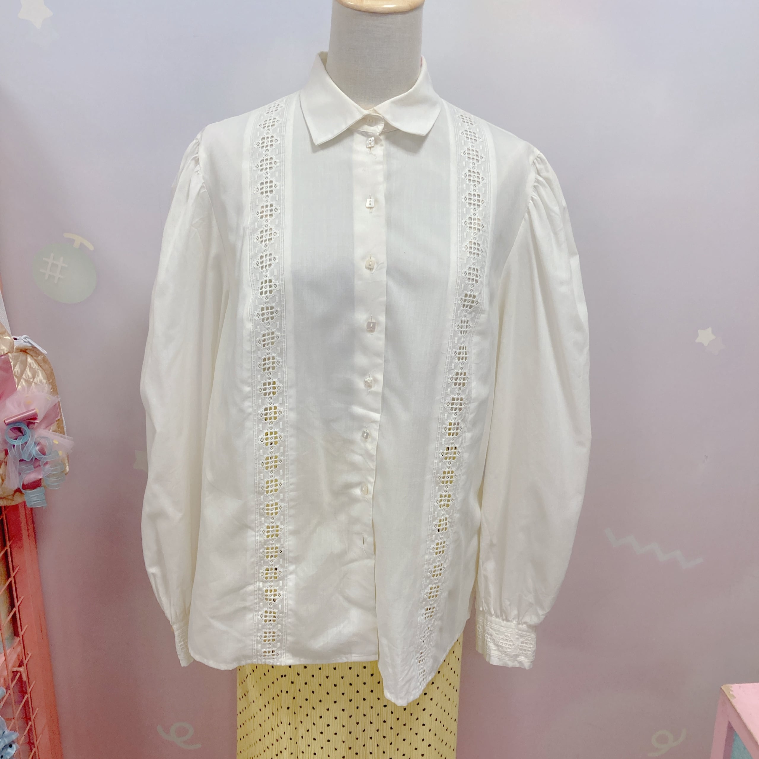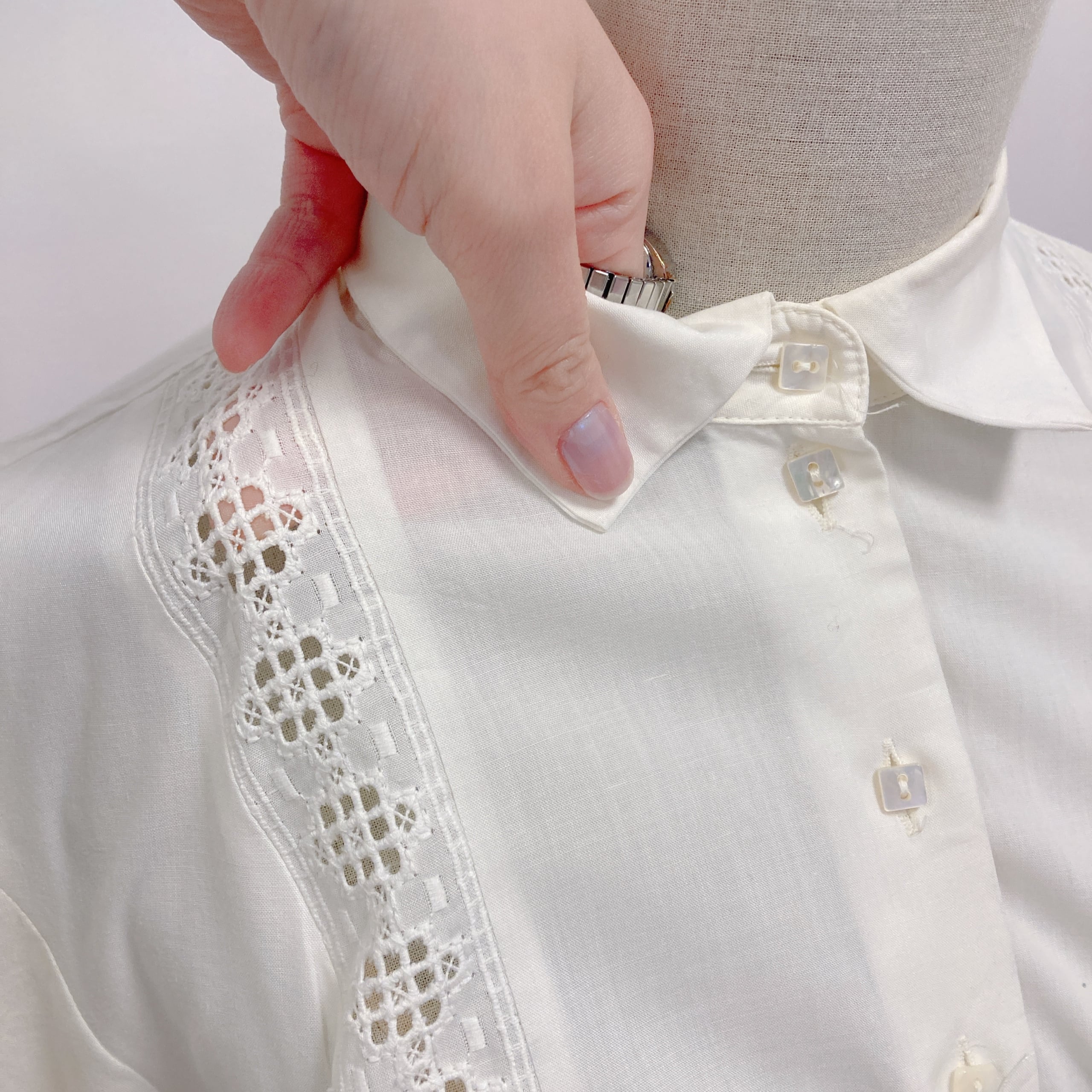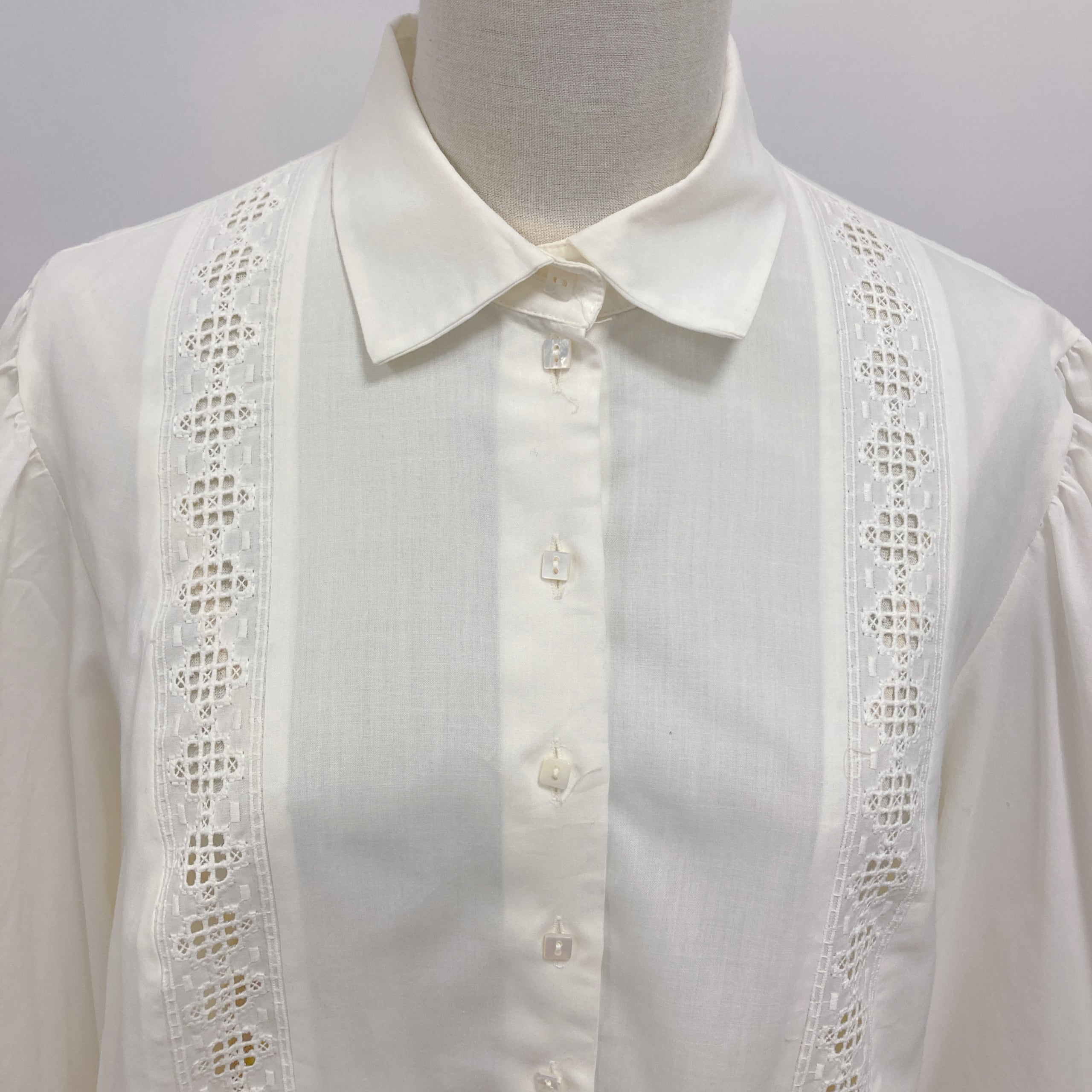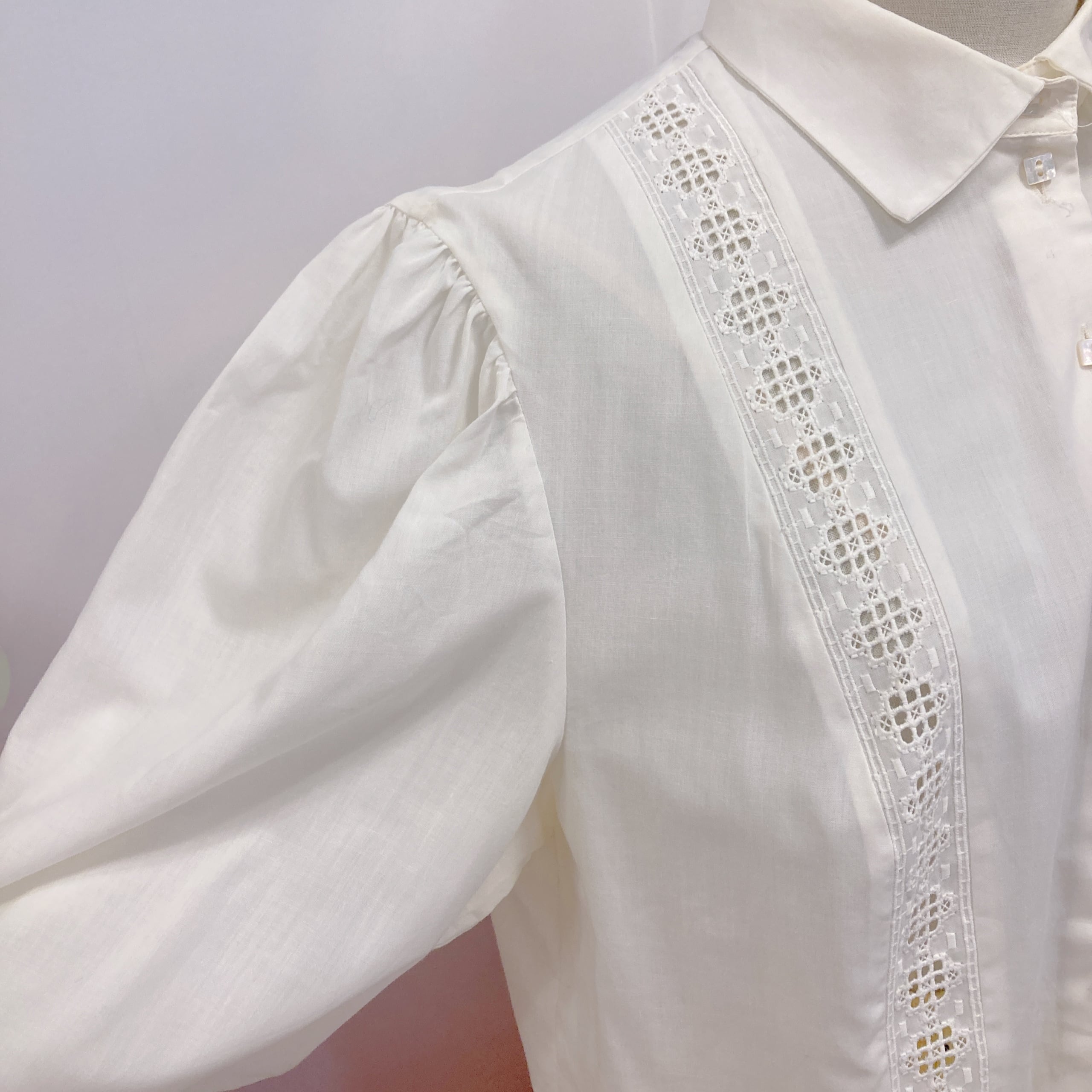 Vtg 生成りブラウス 前透かしレース