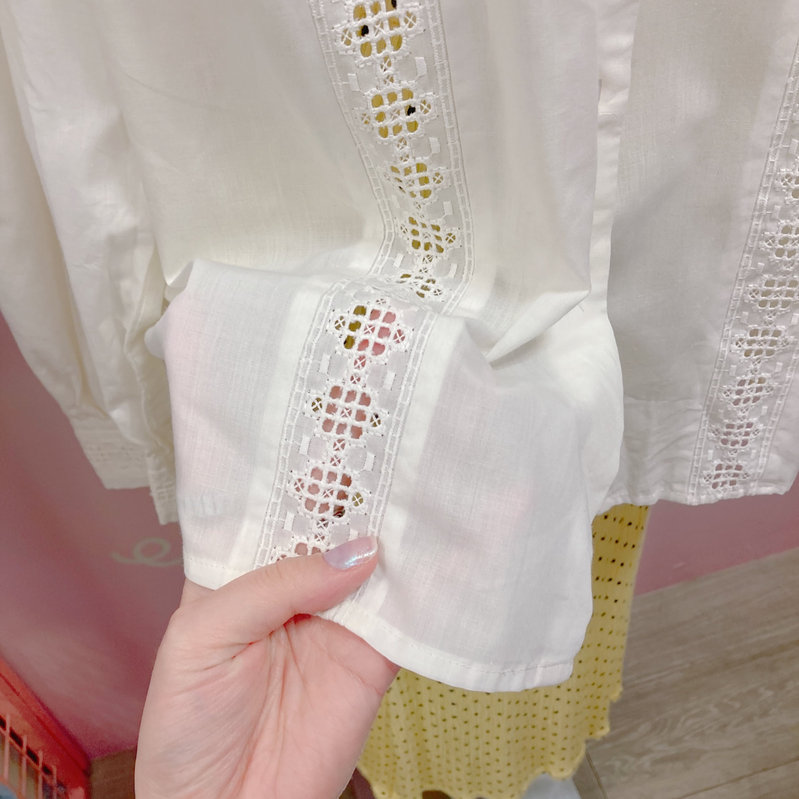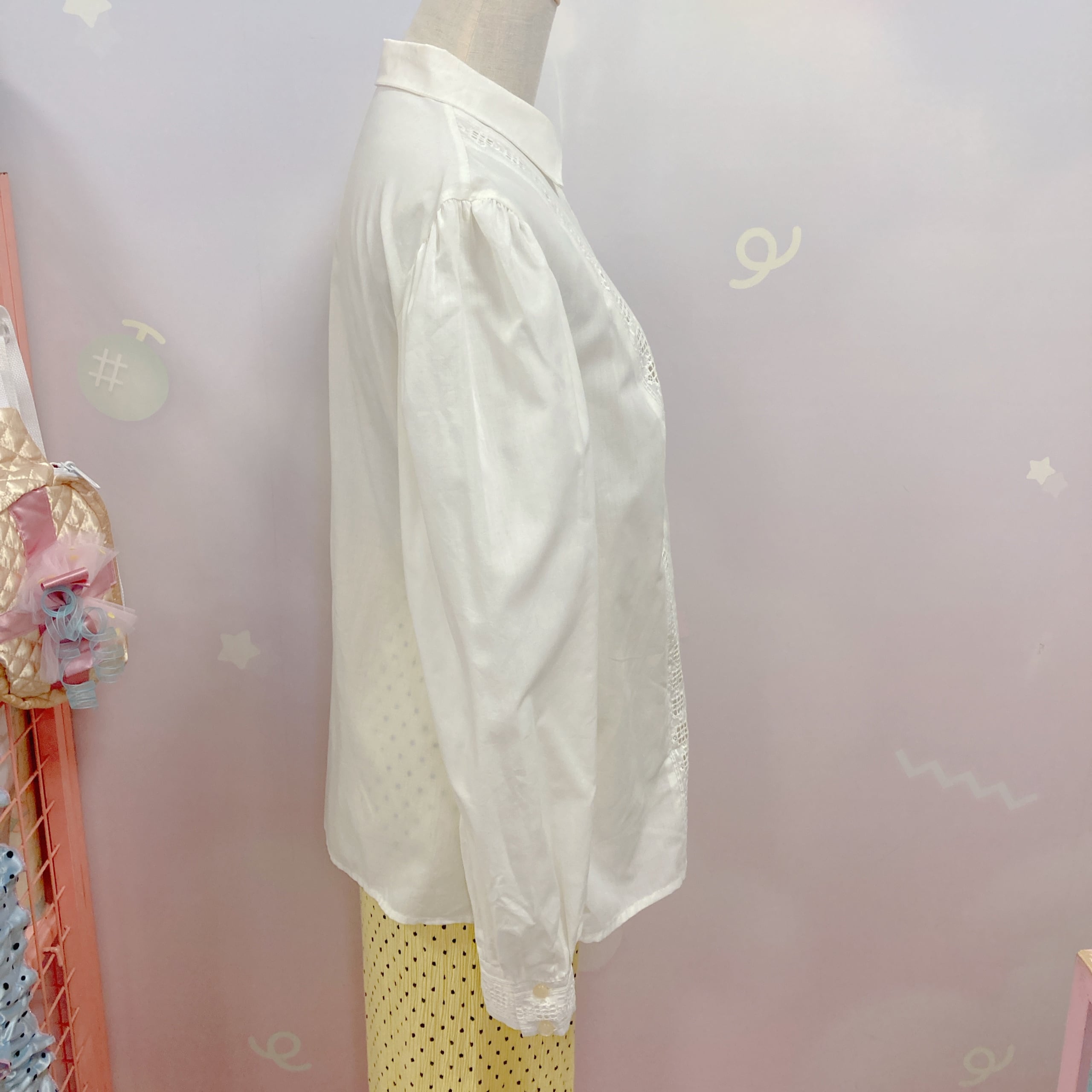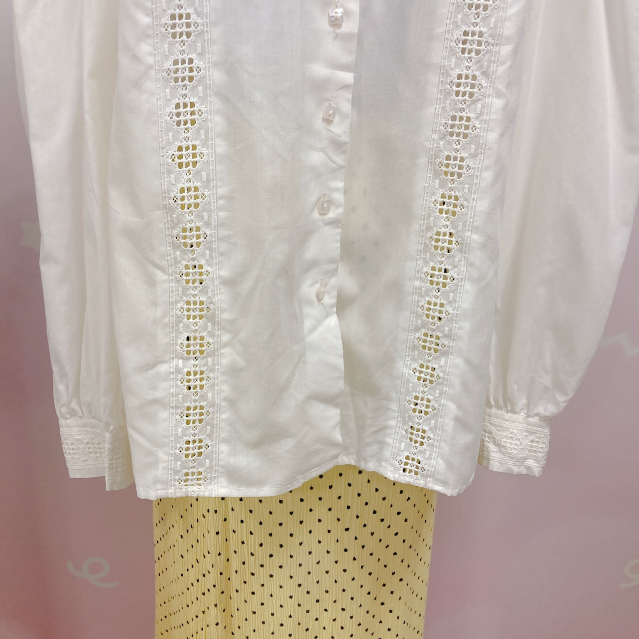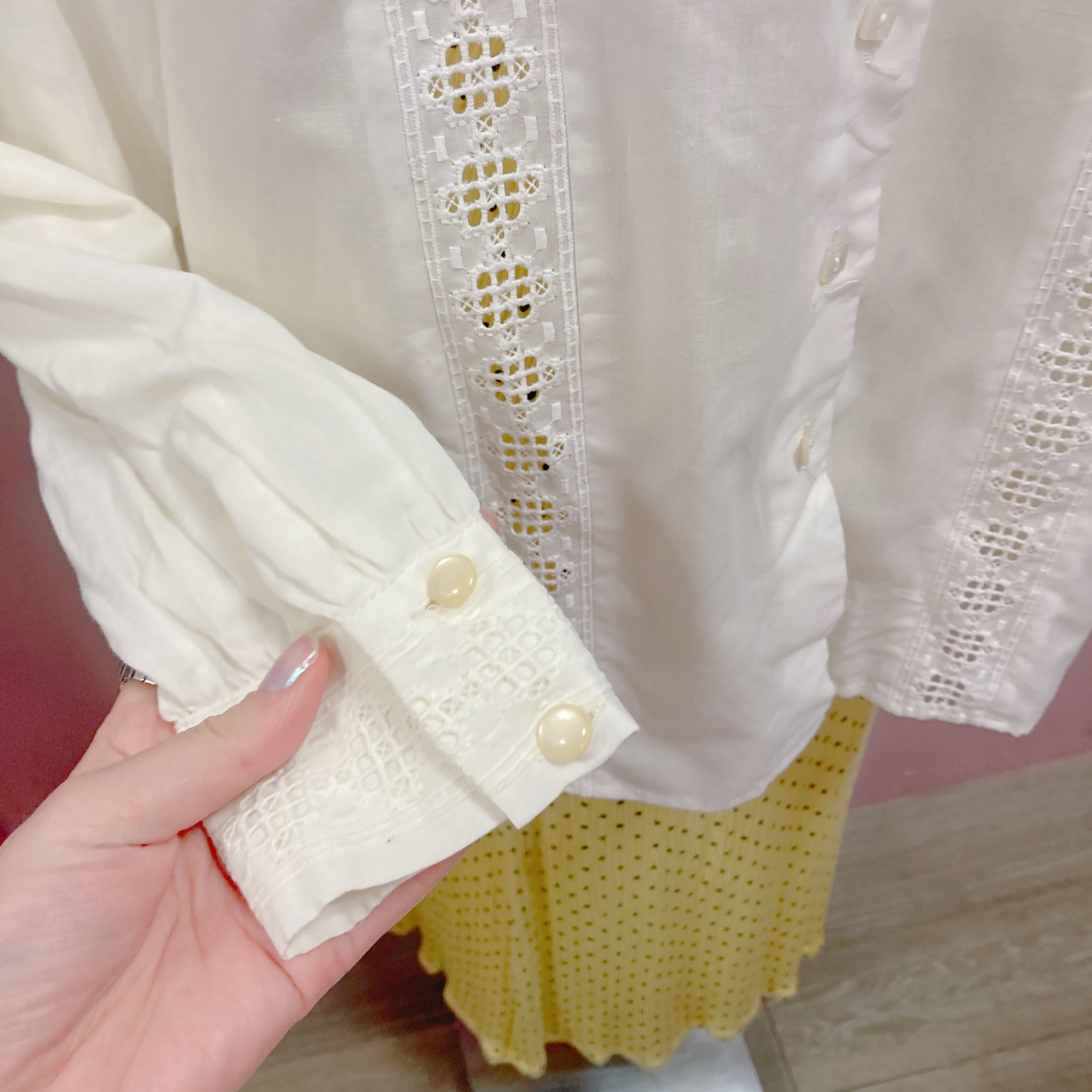 Vtg 生成りブラウス 前透かしレース