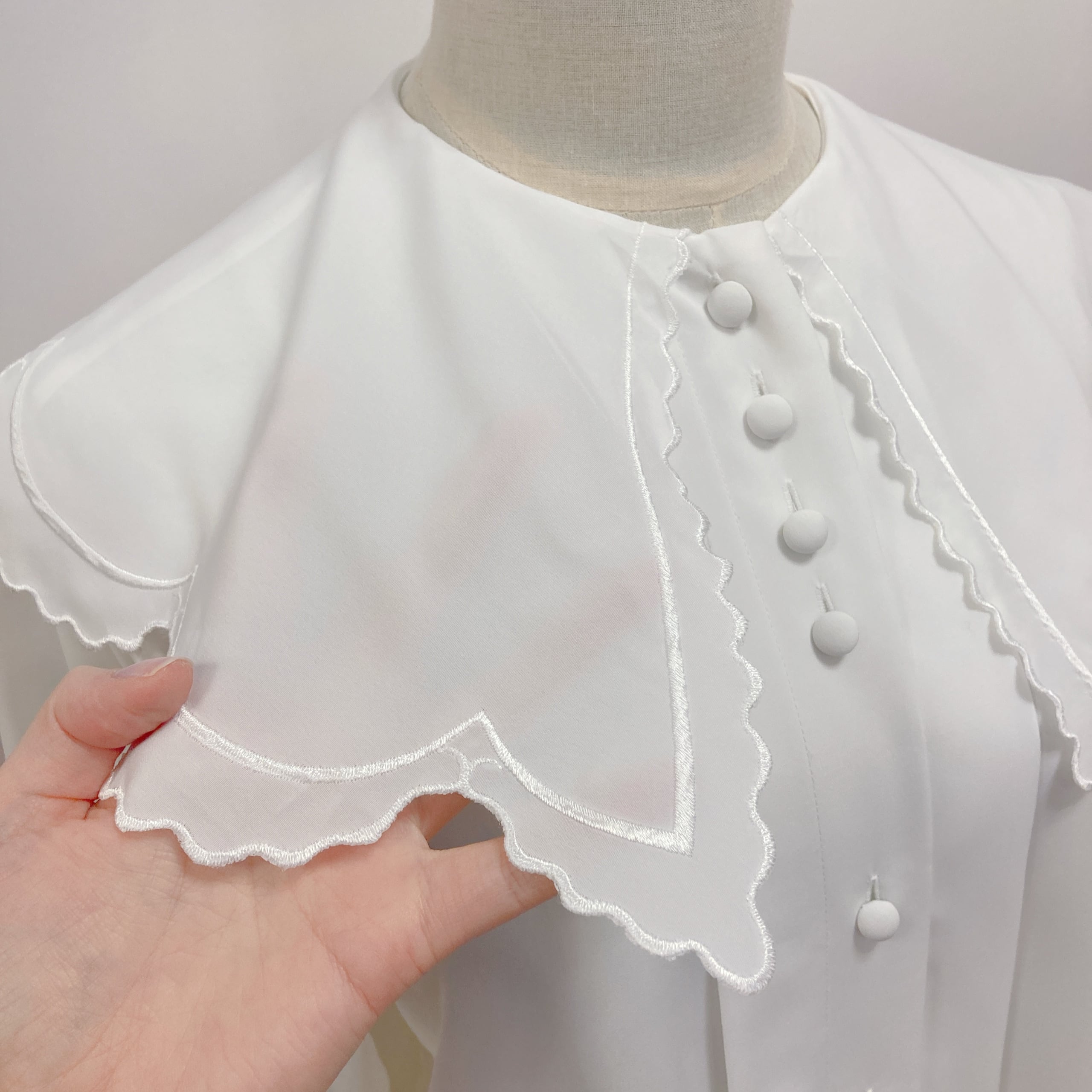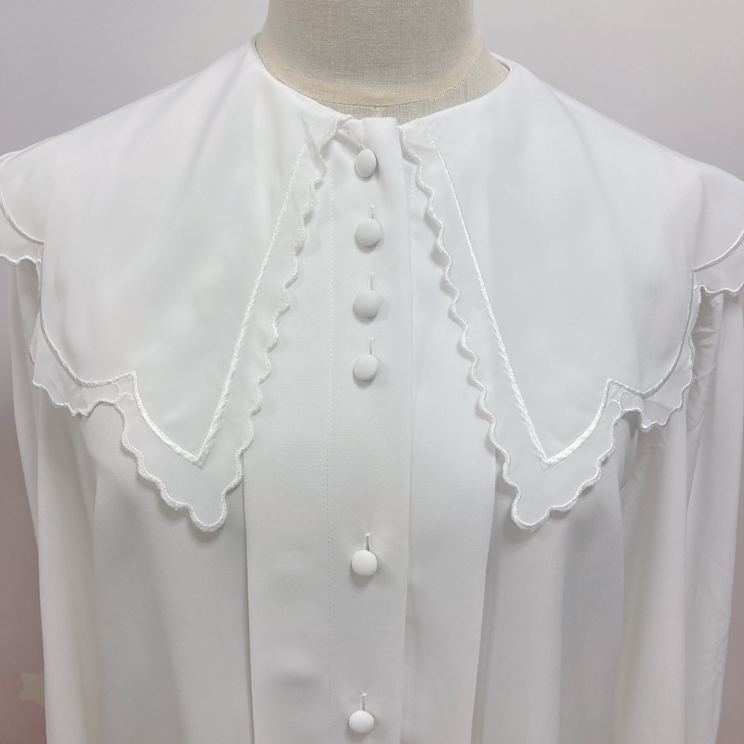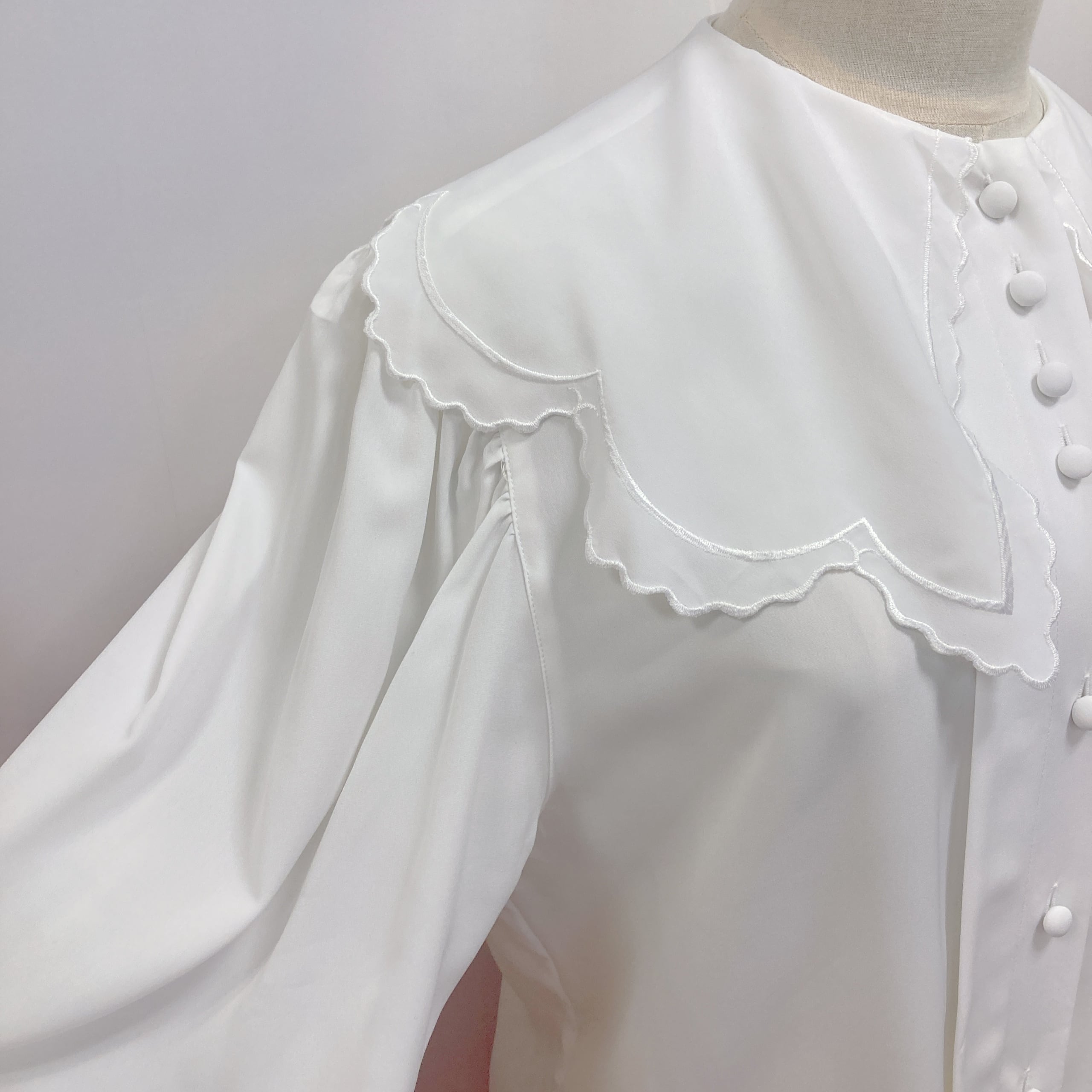 Vtg 白ブラウス 襟スカラップ