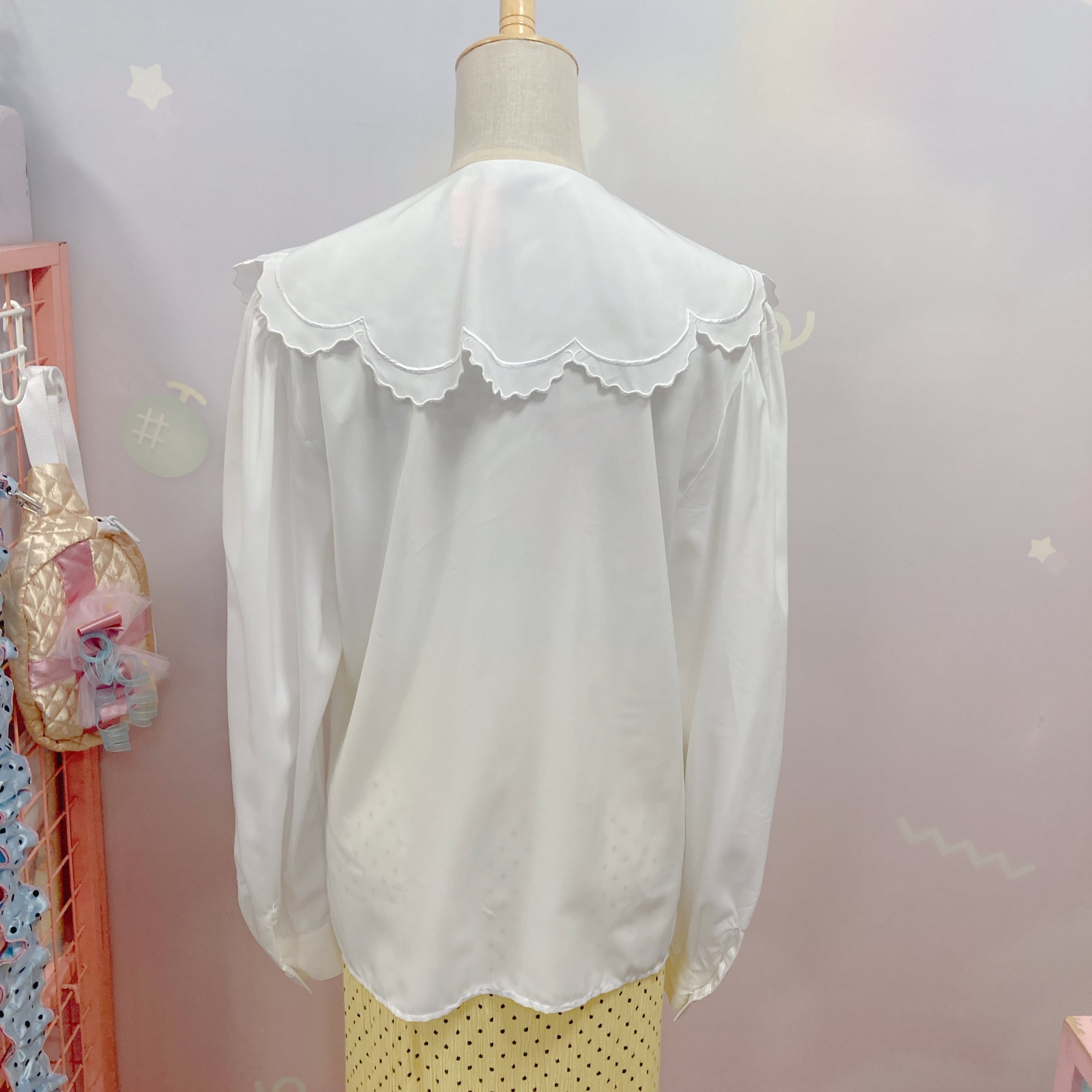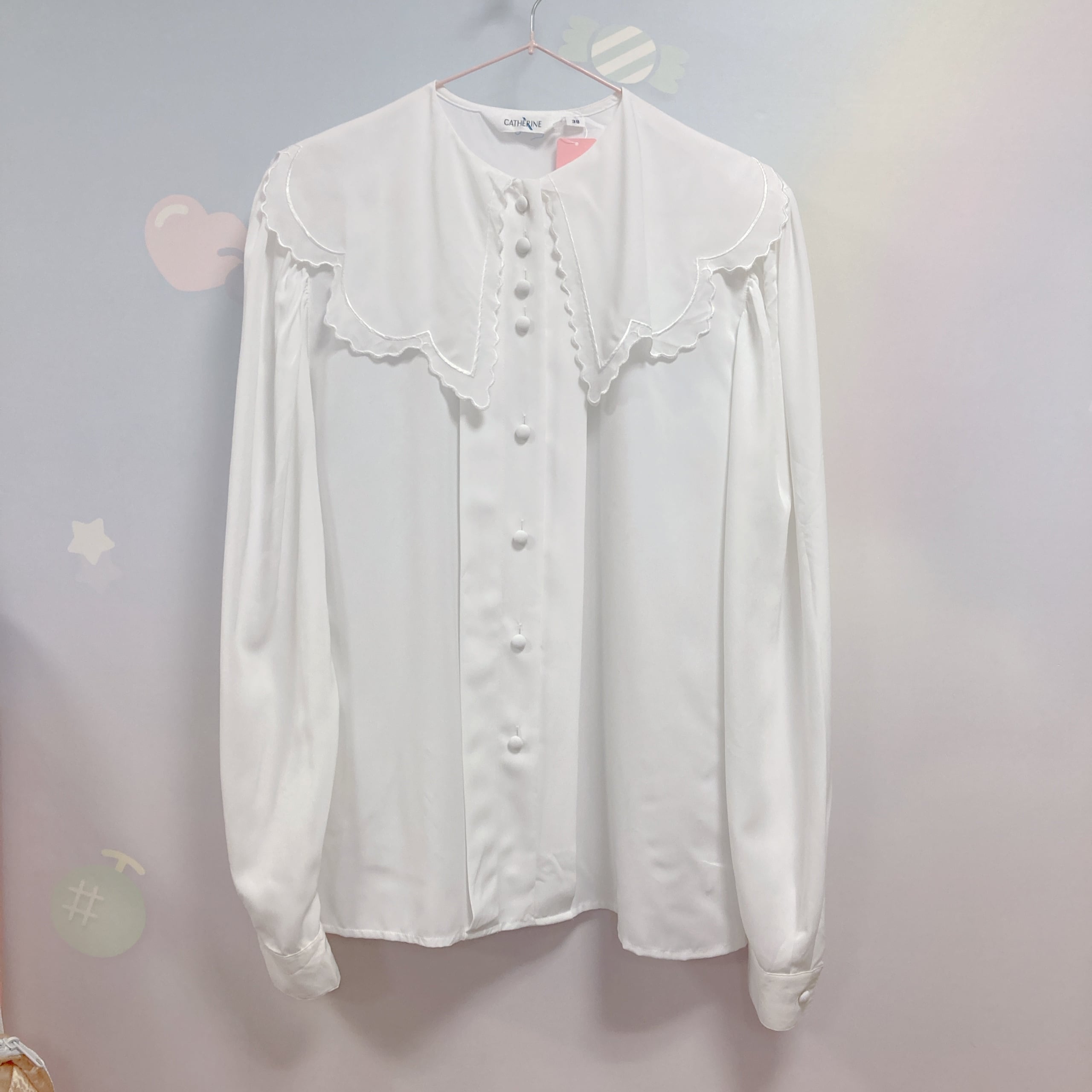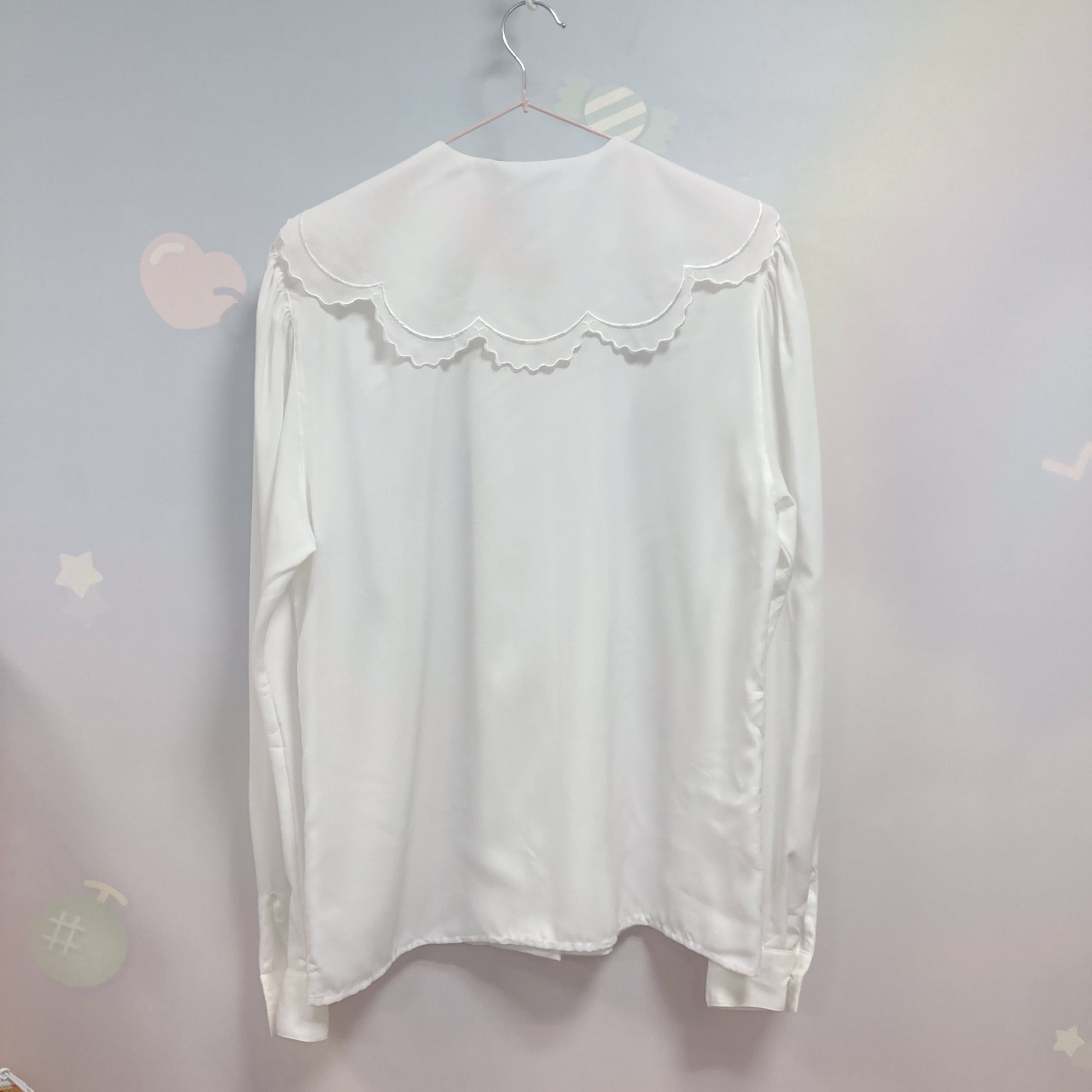 Vtg 白ブラウス 襟スカラップ