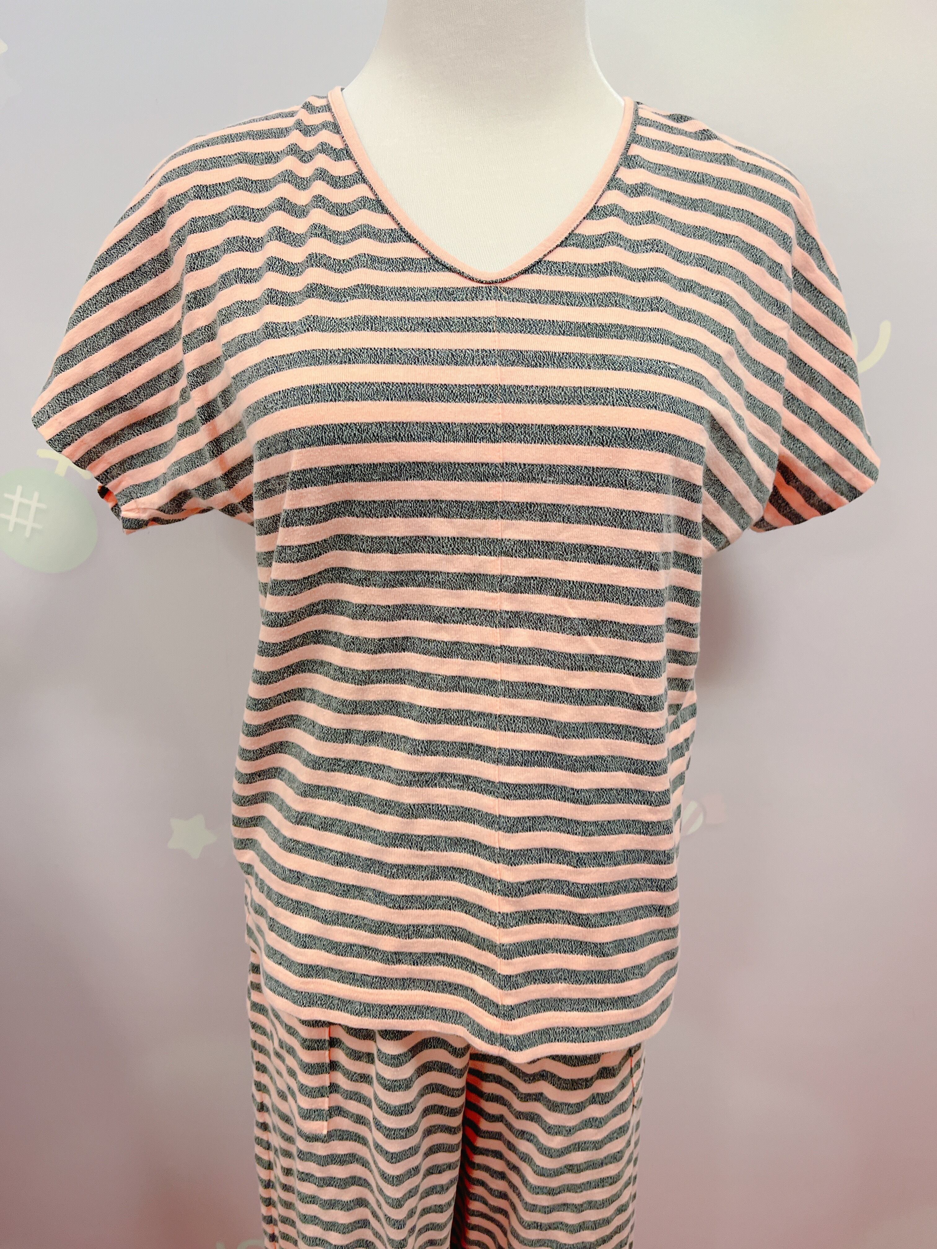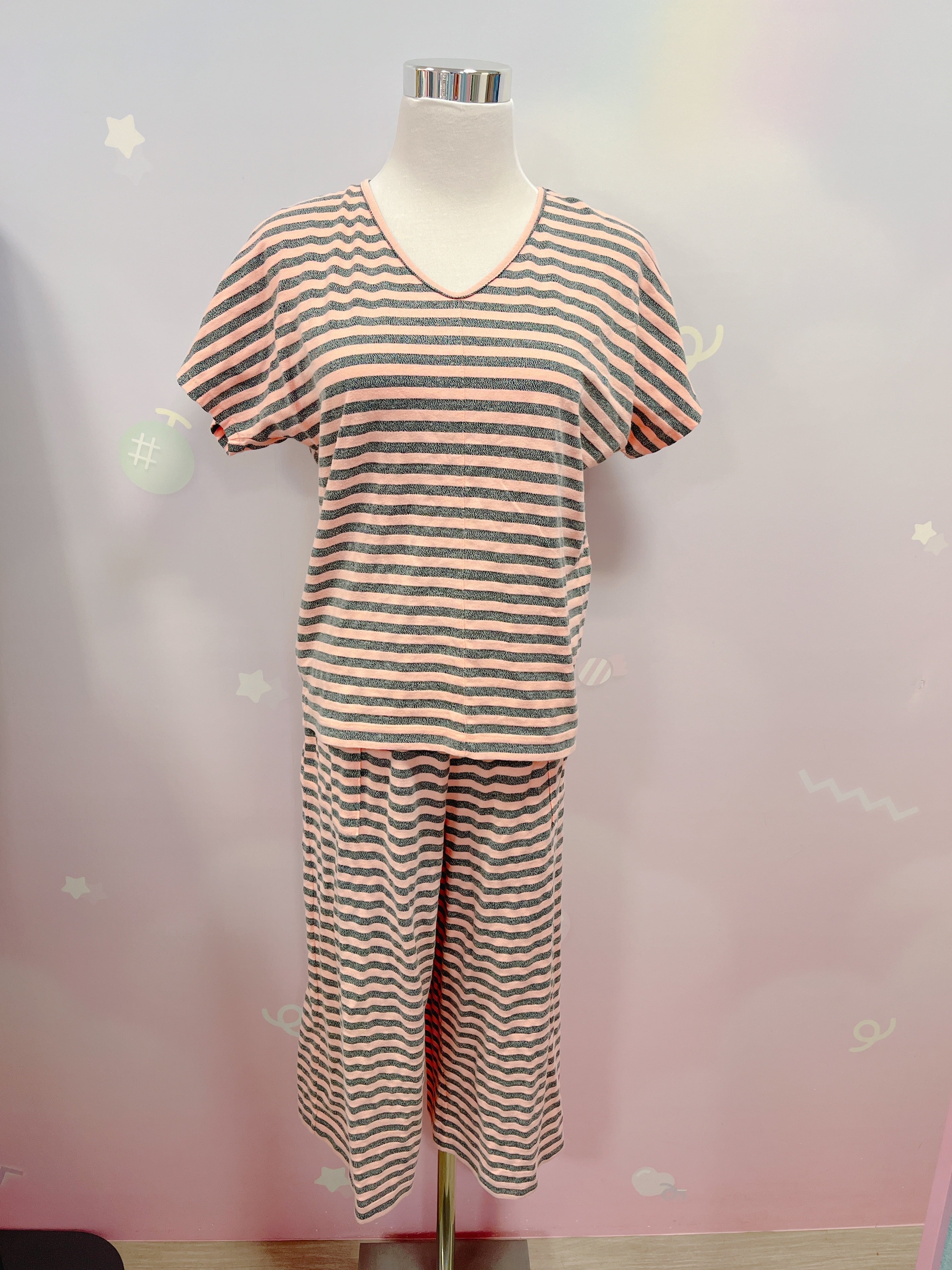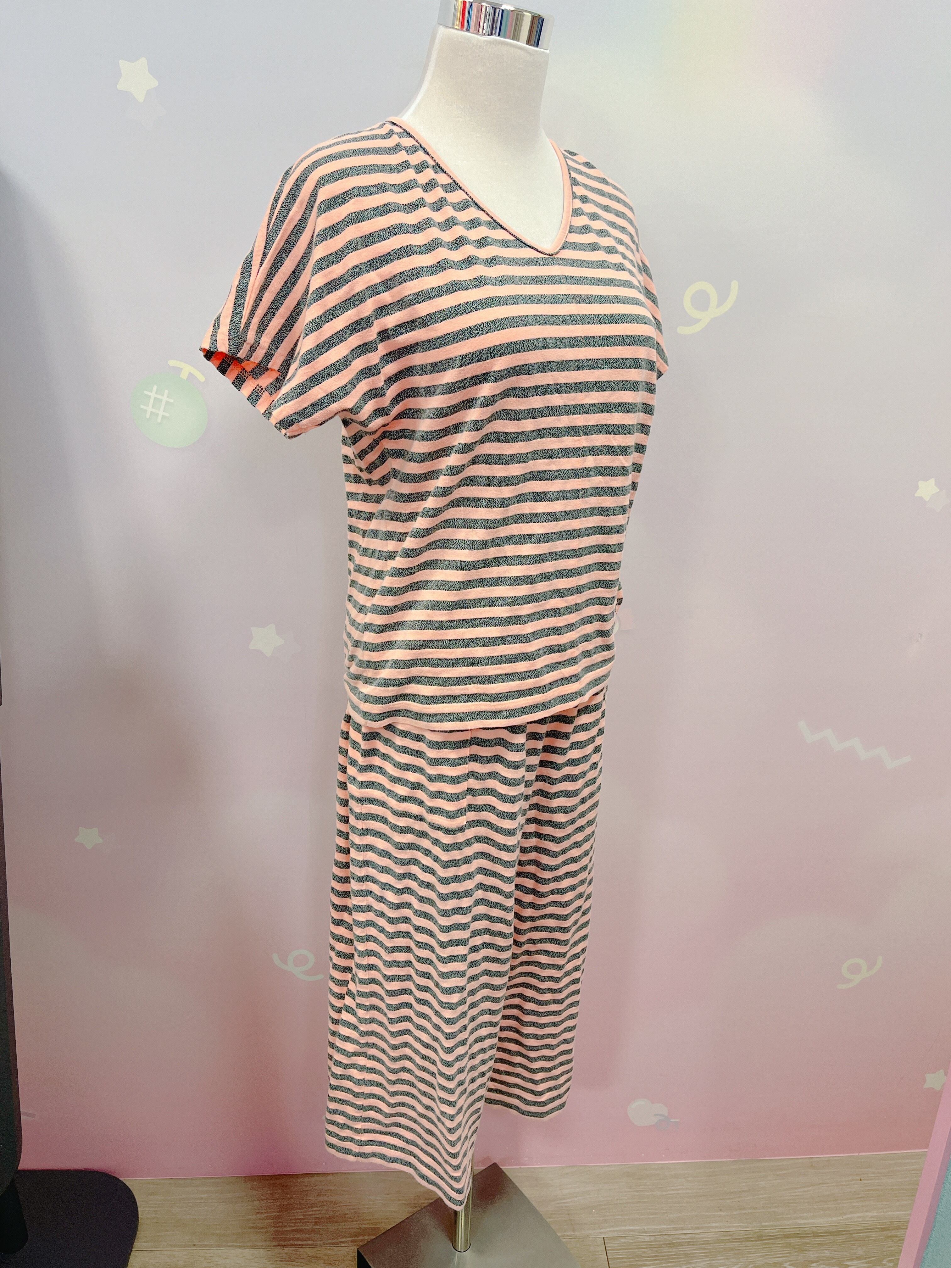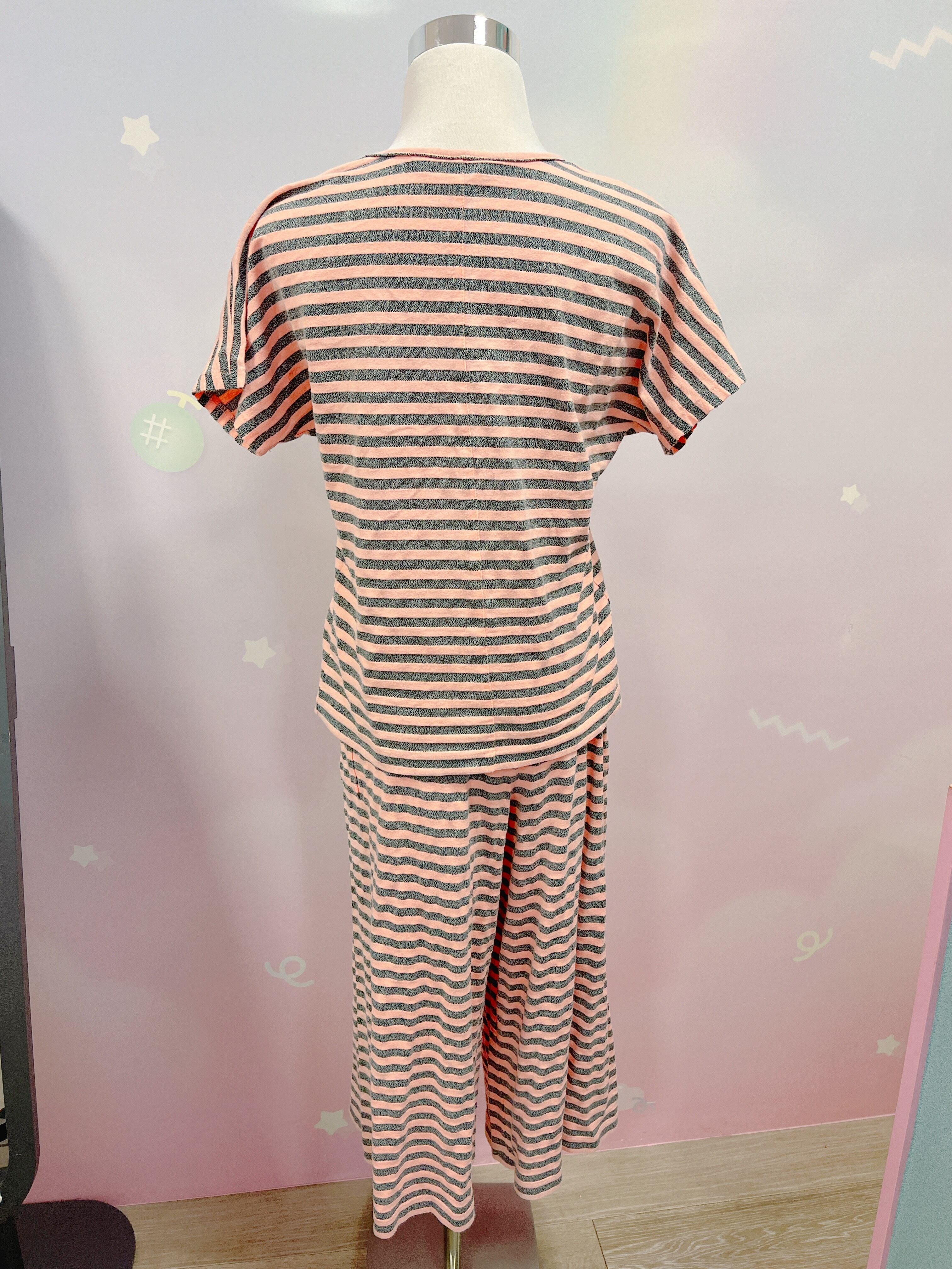 Vtg ボーダーセットアップ ピーチピンク×グレー