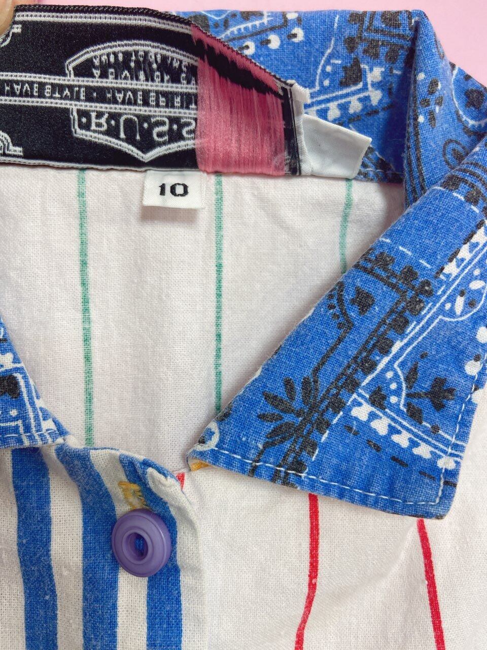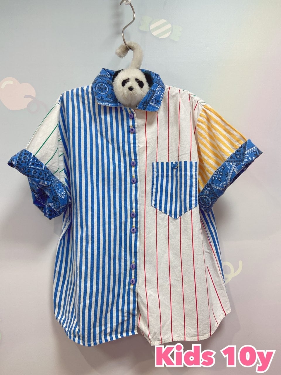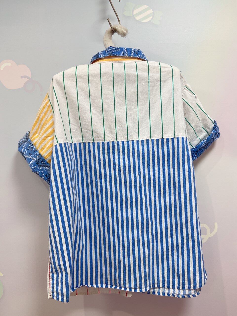 クレイジーカラーが可愛い半袖シャツです。袖は腕まくりする仕様のデザインです。