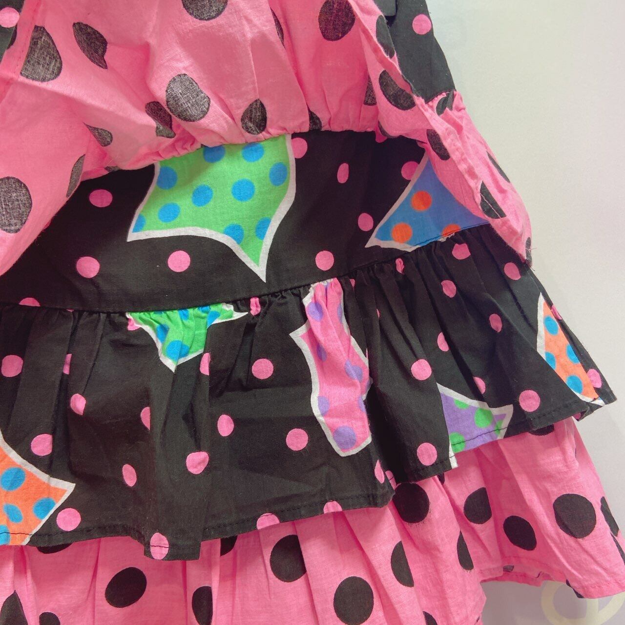 80’s感満載なネオンピンク×ブラックの3段フリルスカートです。