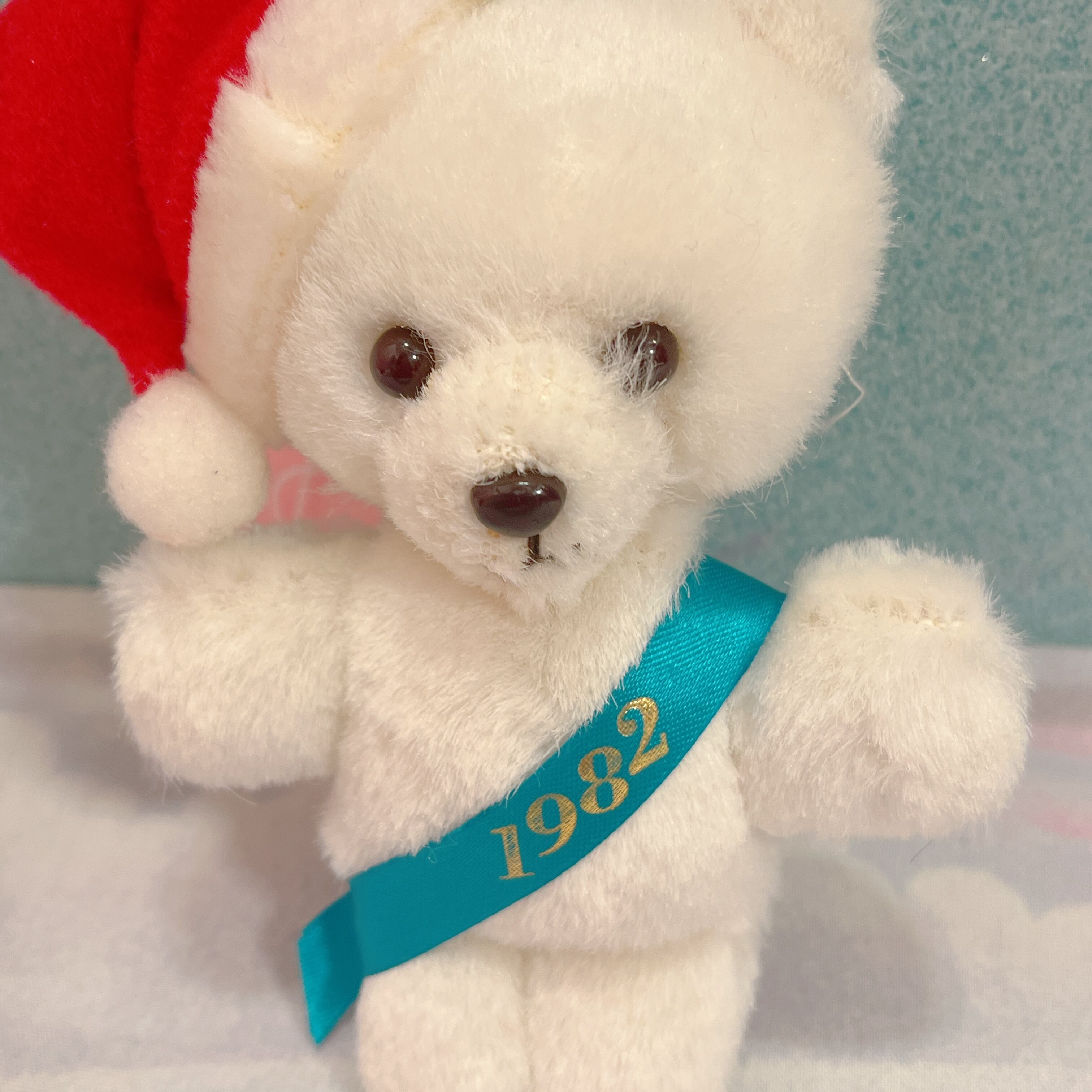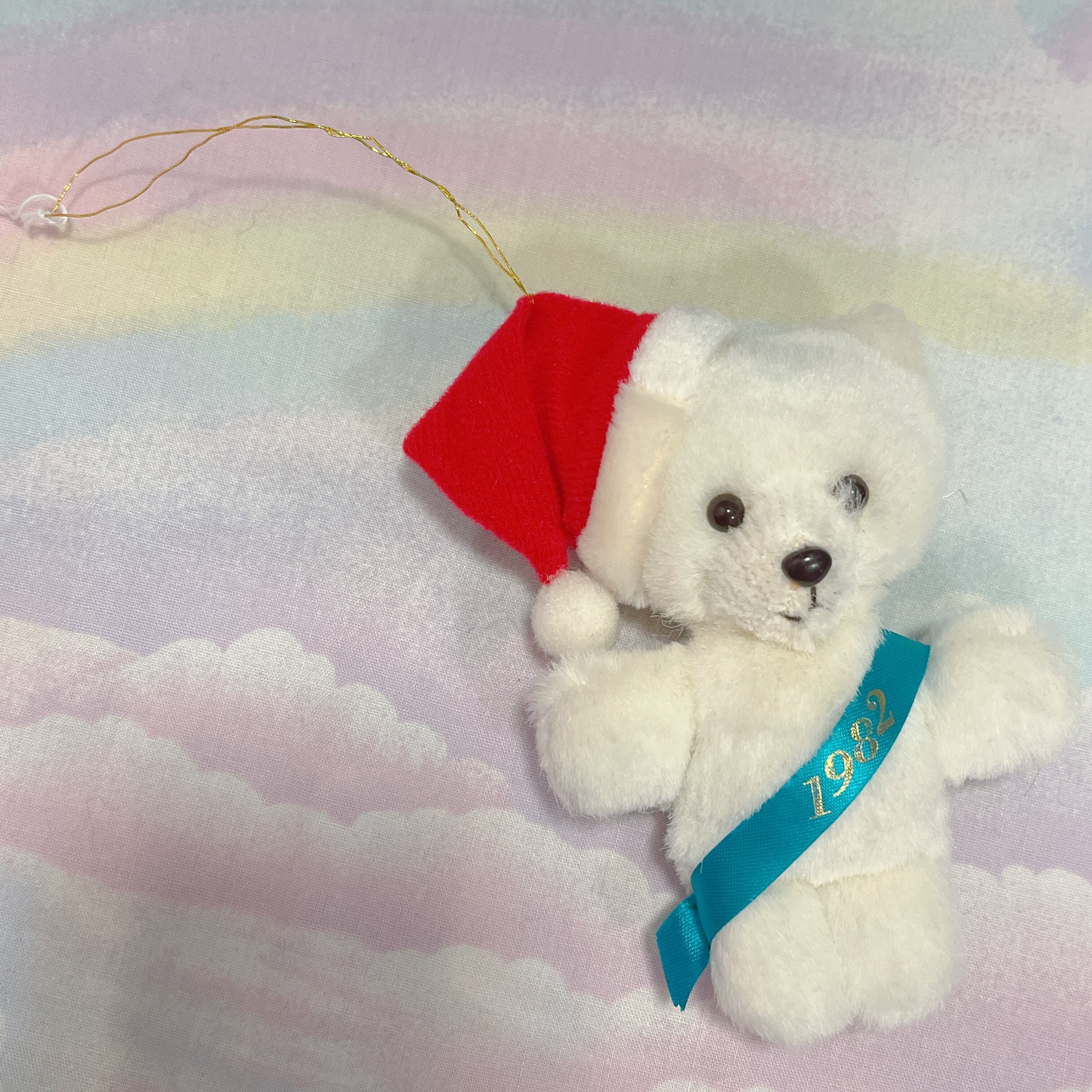 Vtg クリスマスぬいぐるみ ミニ白くまサンタ たすき