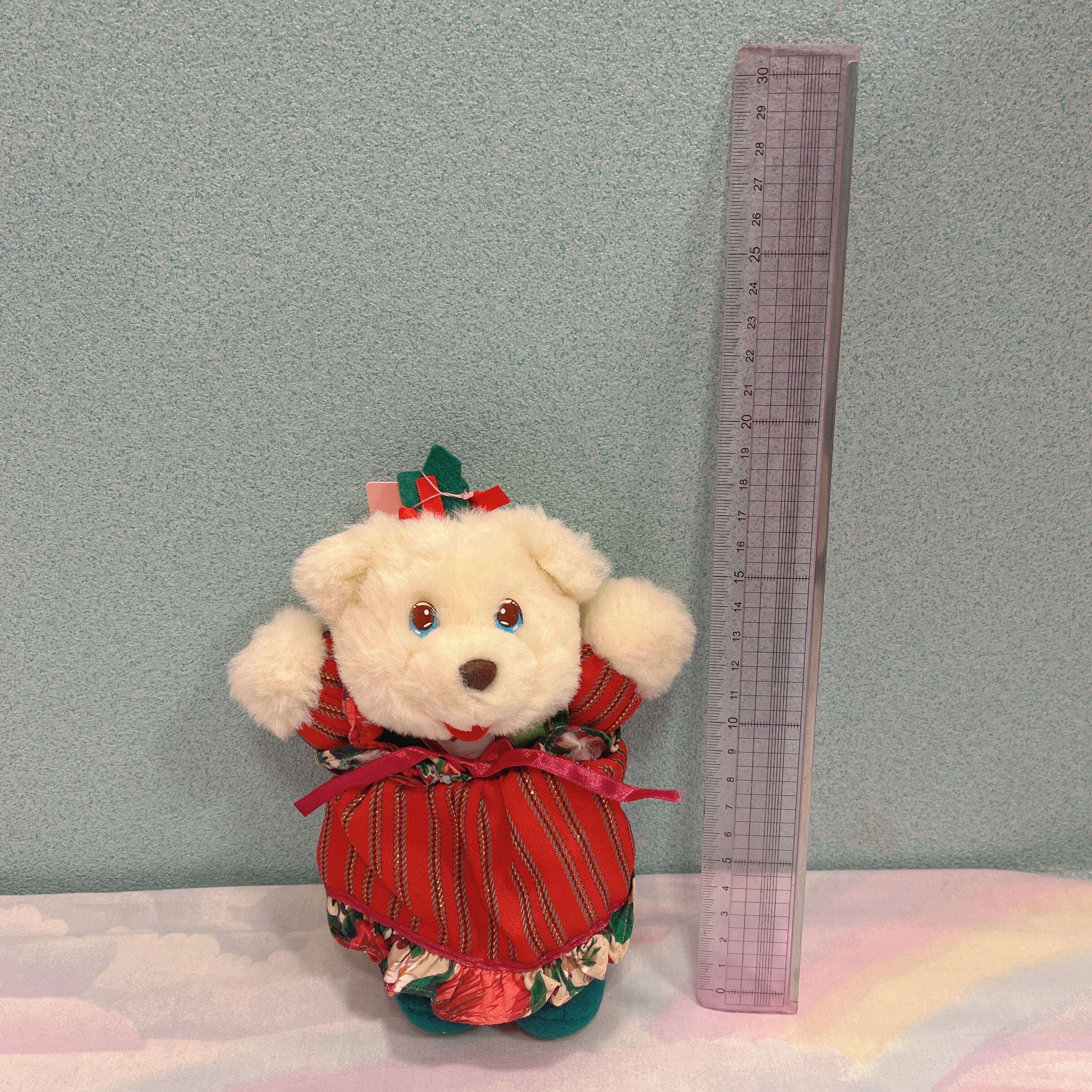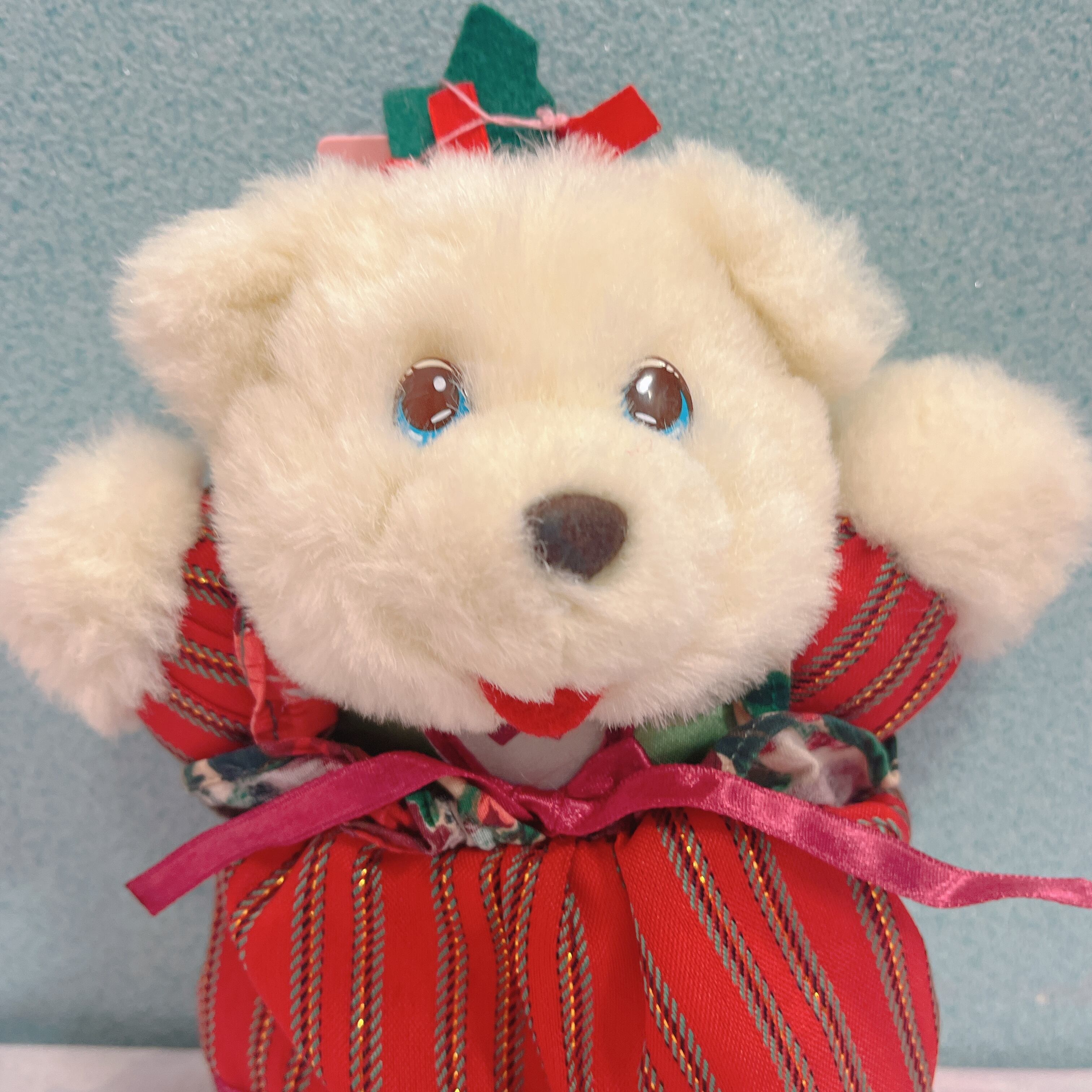 Vtg クリスマスぬいぐるみ クリーム色くま ワンピース