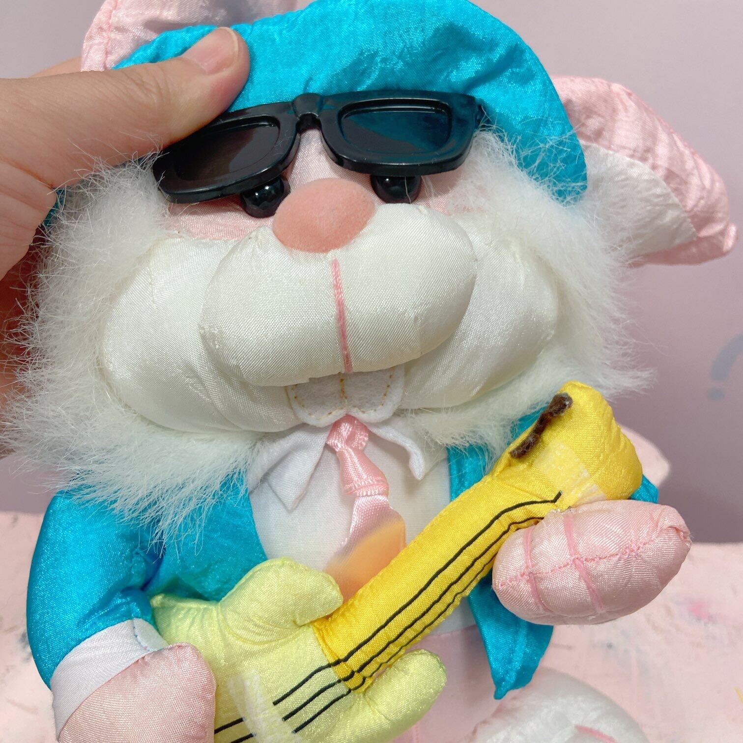 Vtg ぬいぐるみ サングラスうさぎ 黄色ギター