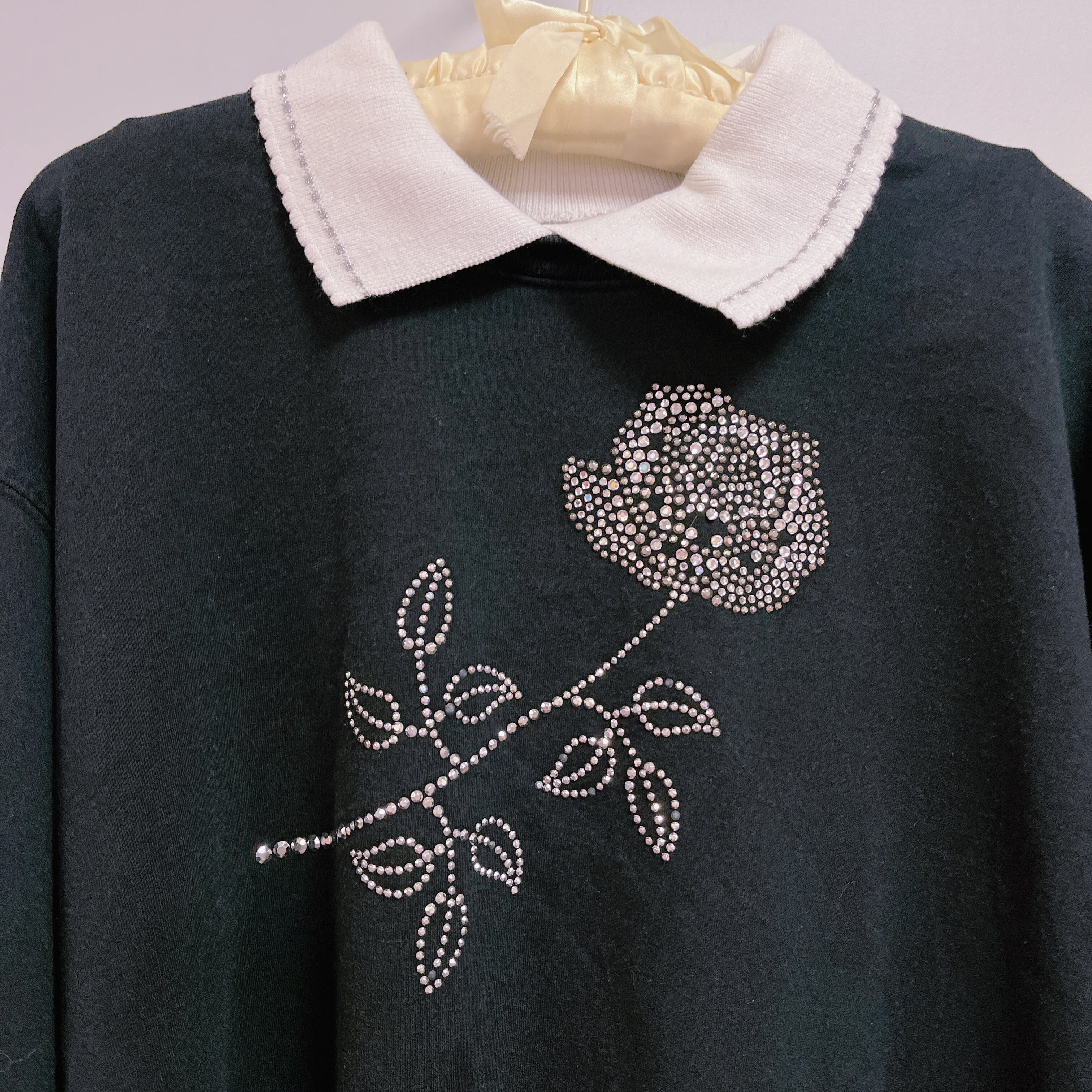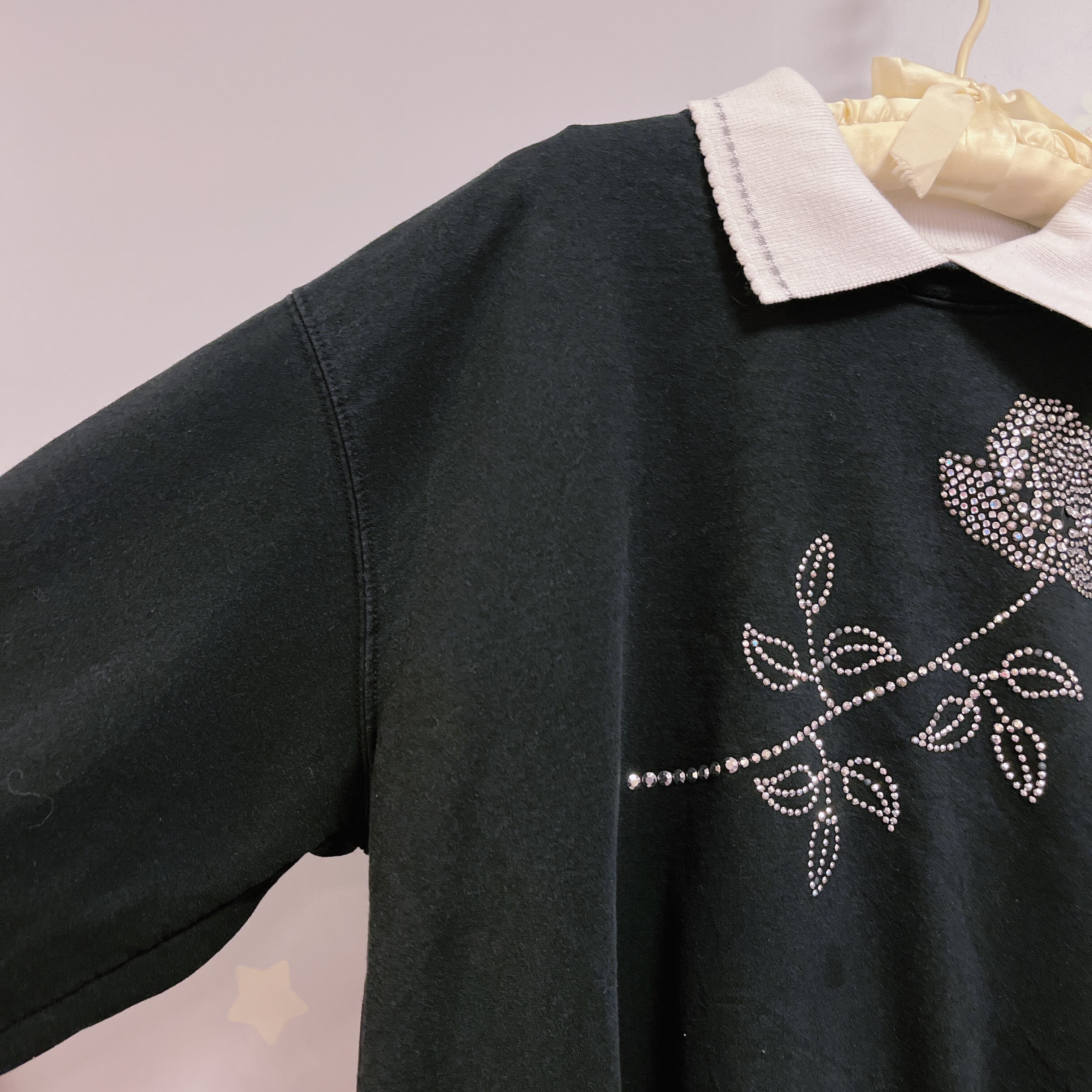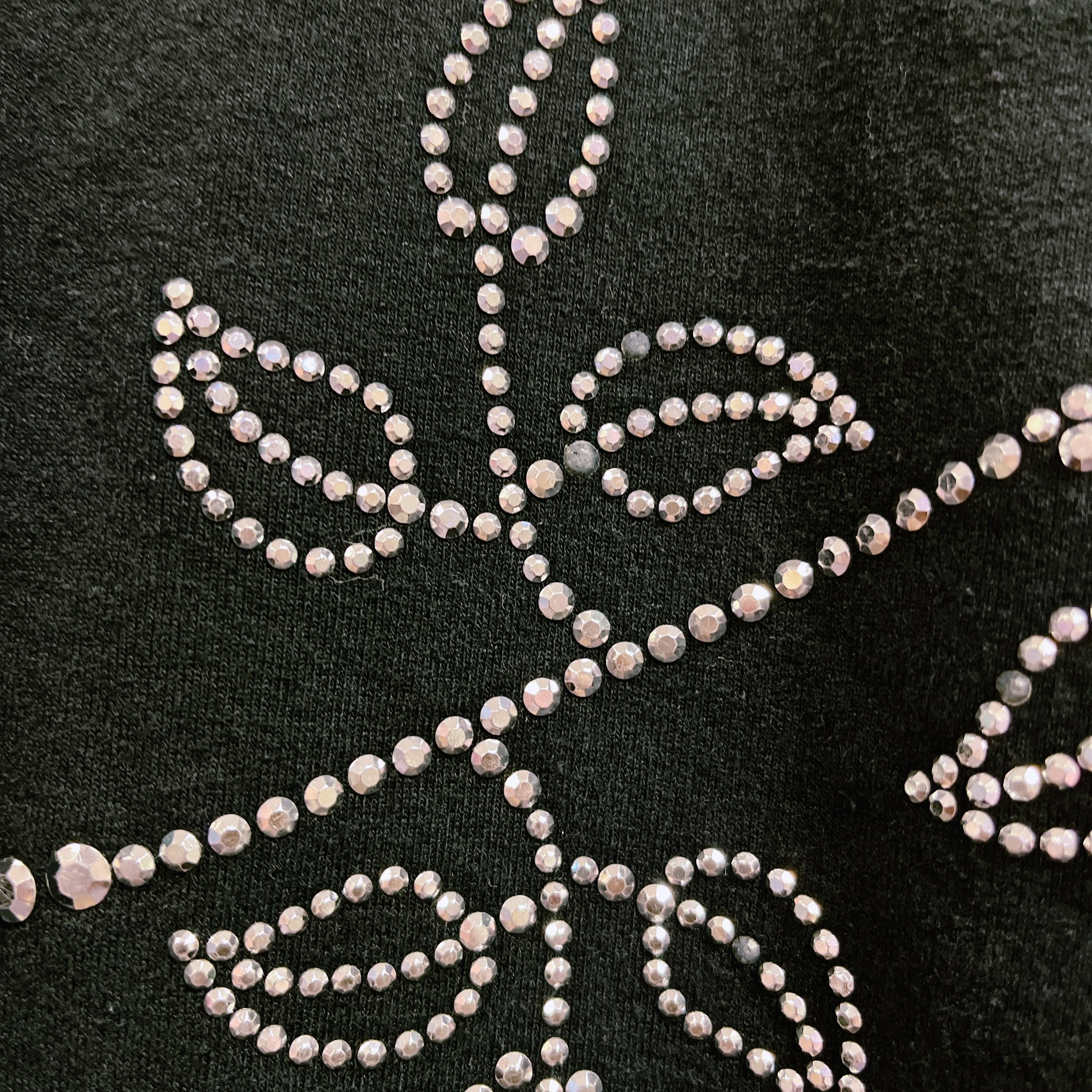 フロントにうっすらシミ、ストーン外れ数箇所あり。(最後の画像2枚参照)