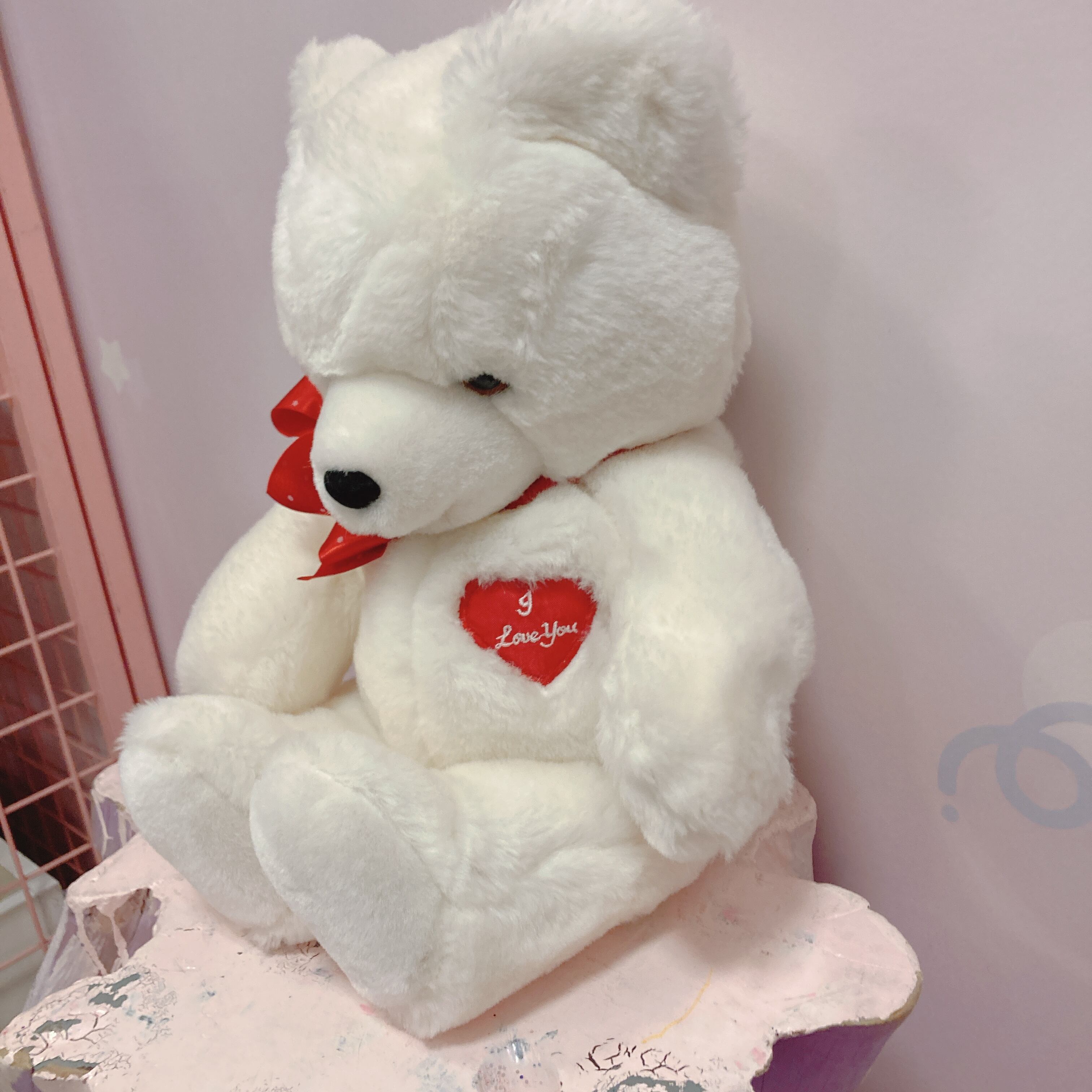 Vtg バレンタインぬいぐるみ 白くま オルゴール付き