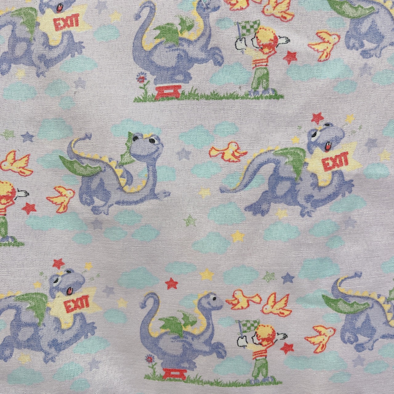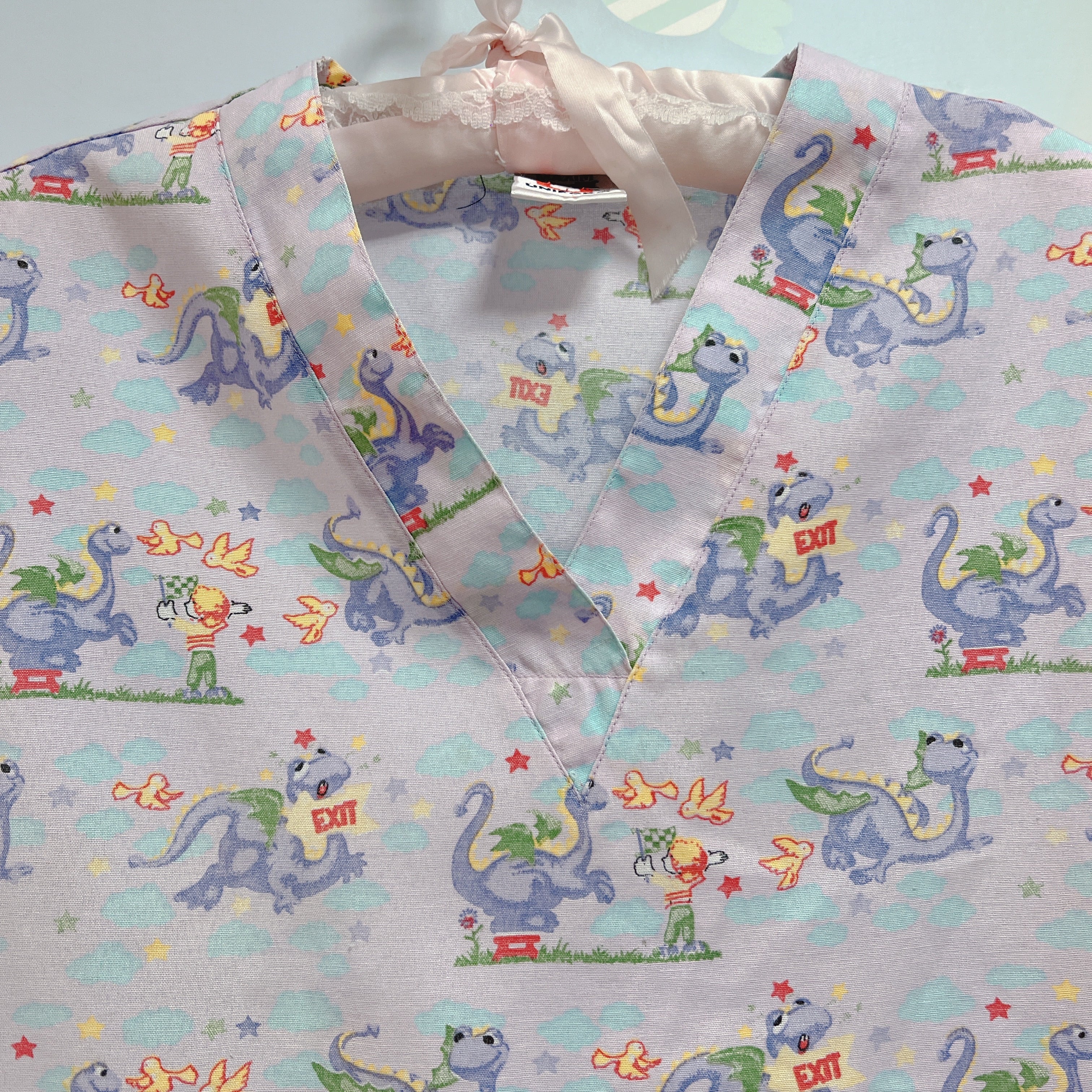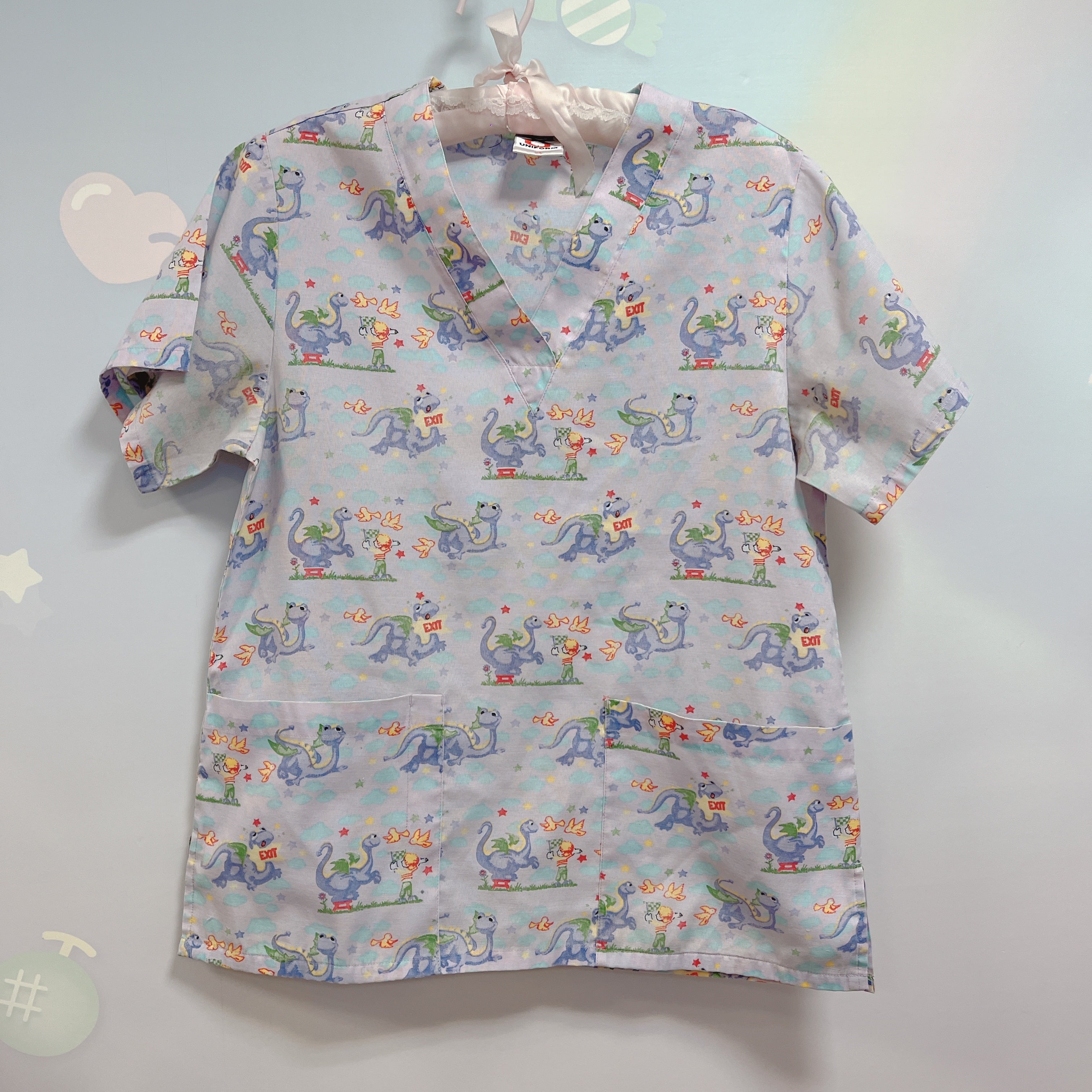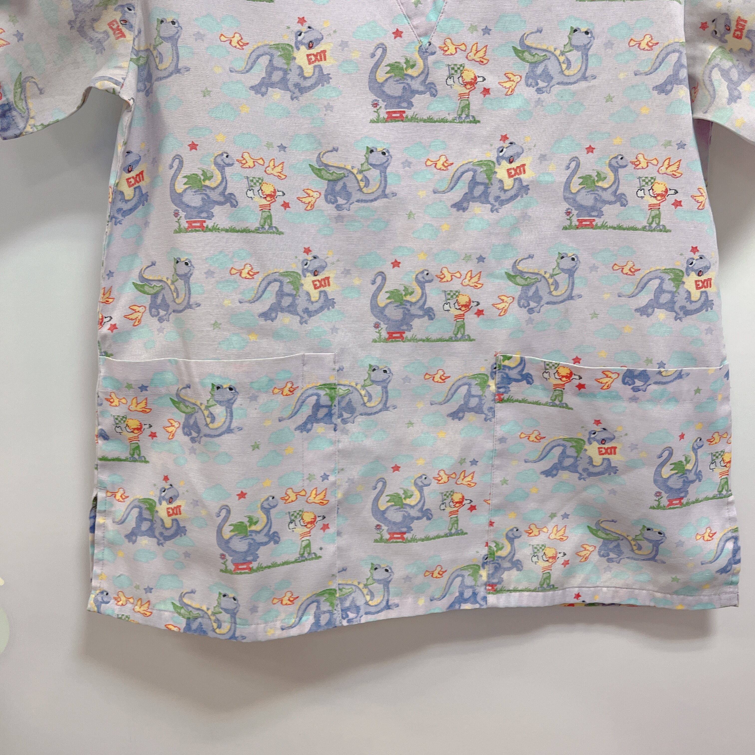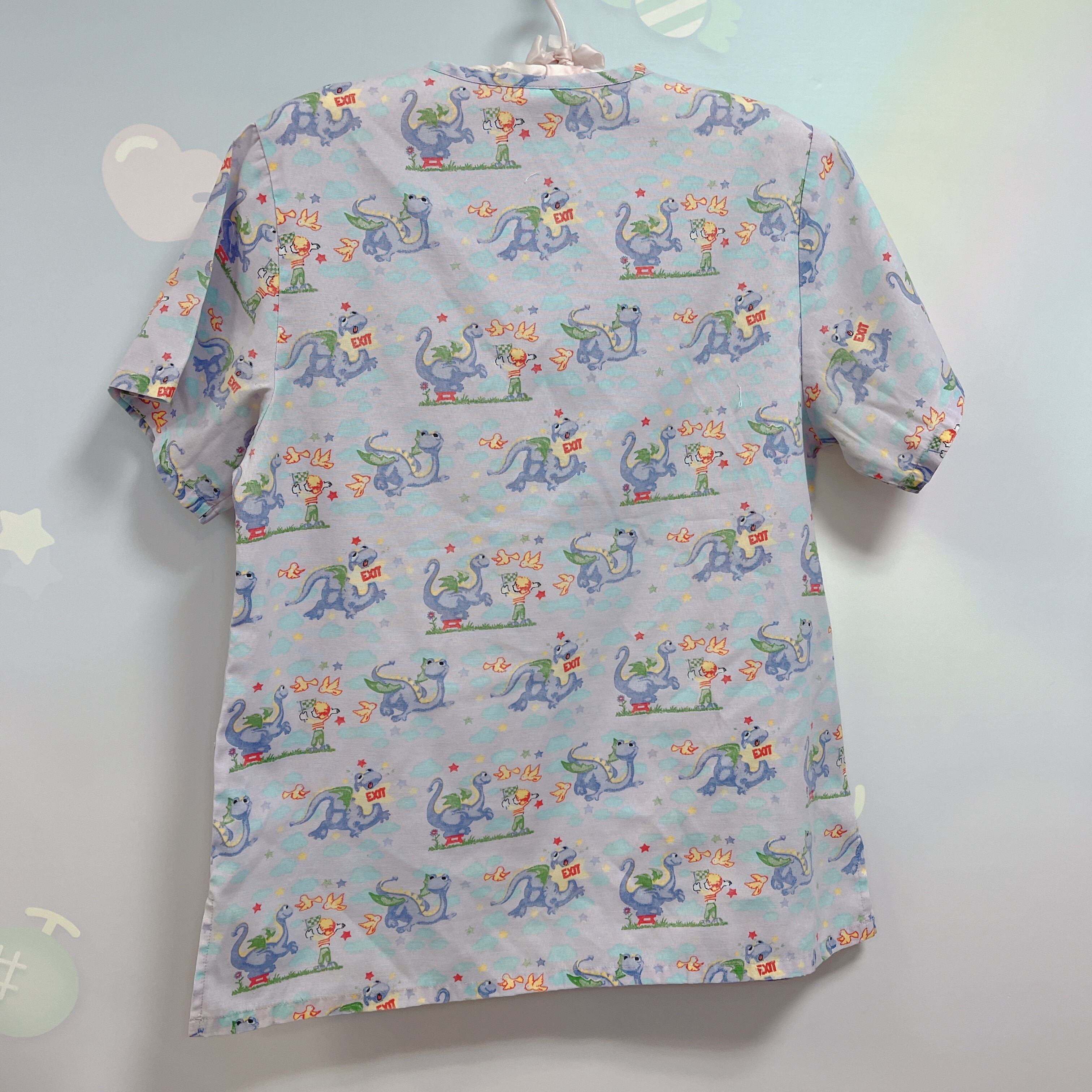 Vtg スクラブシャツ ラベンダー ドラゴン柄
