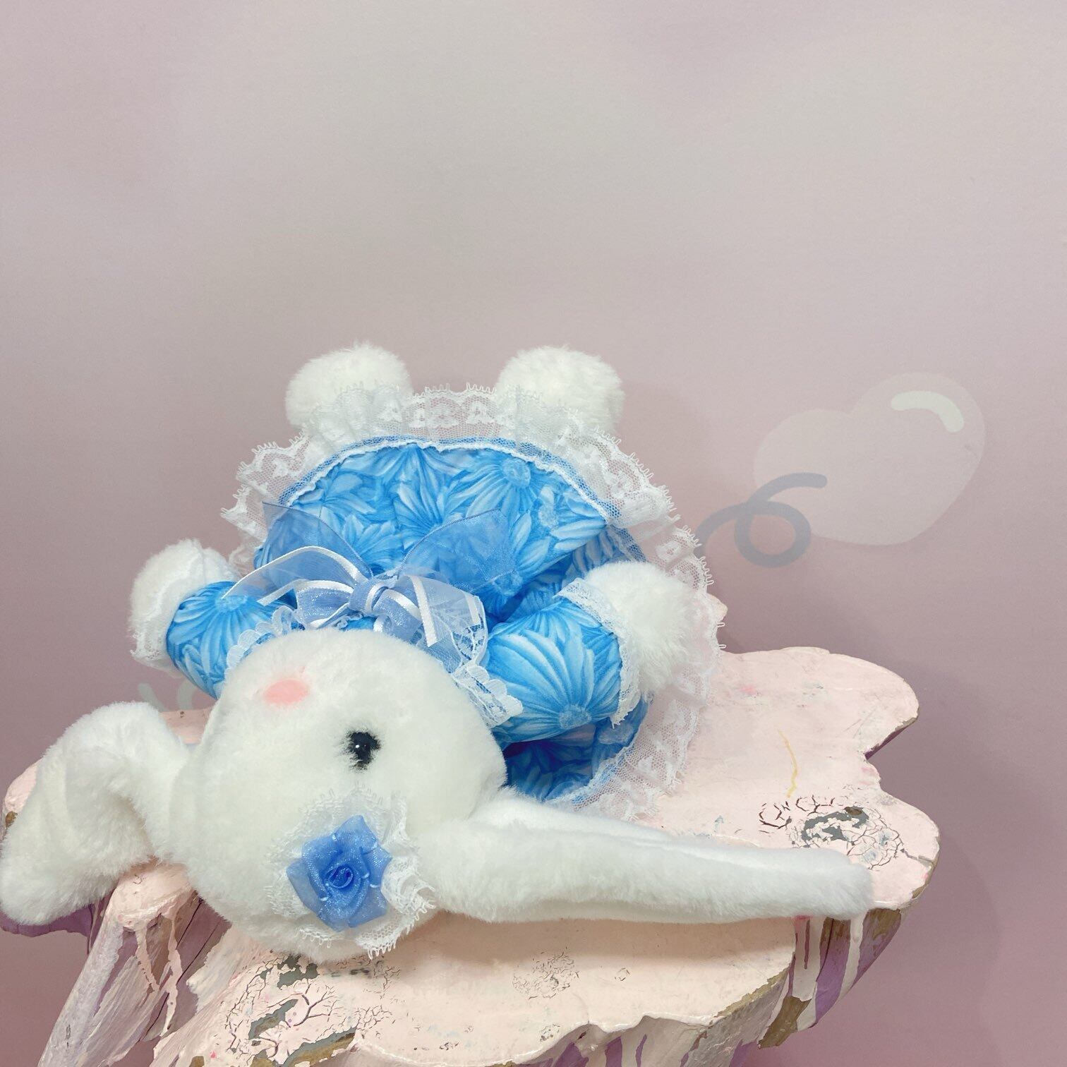 Vtg ぬいぐるみ 青色ワンピースうさぎ