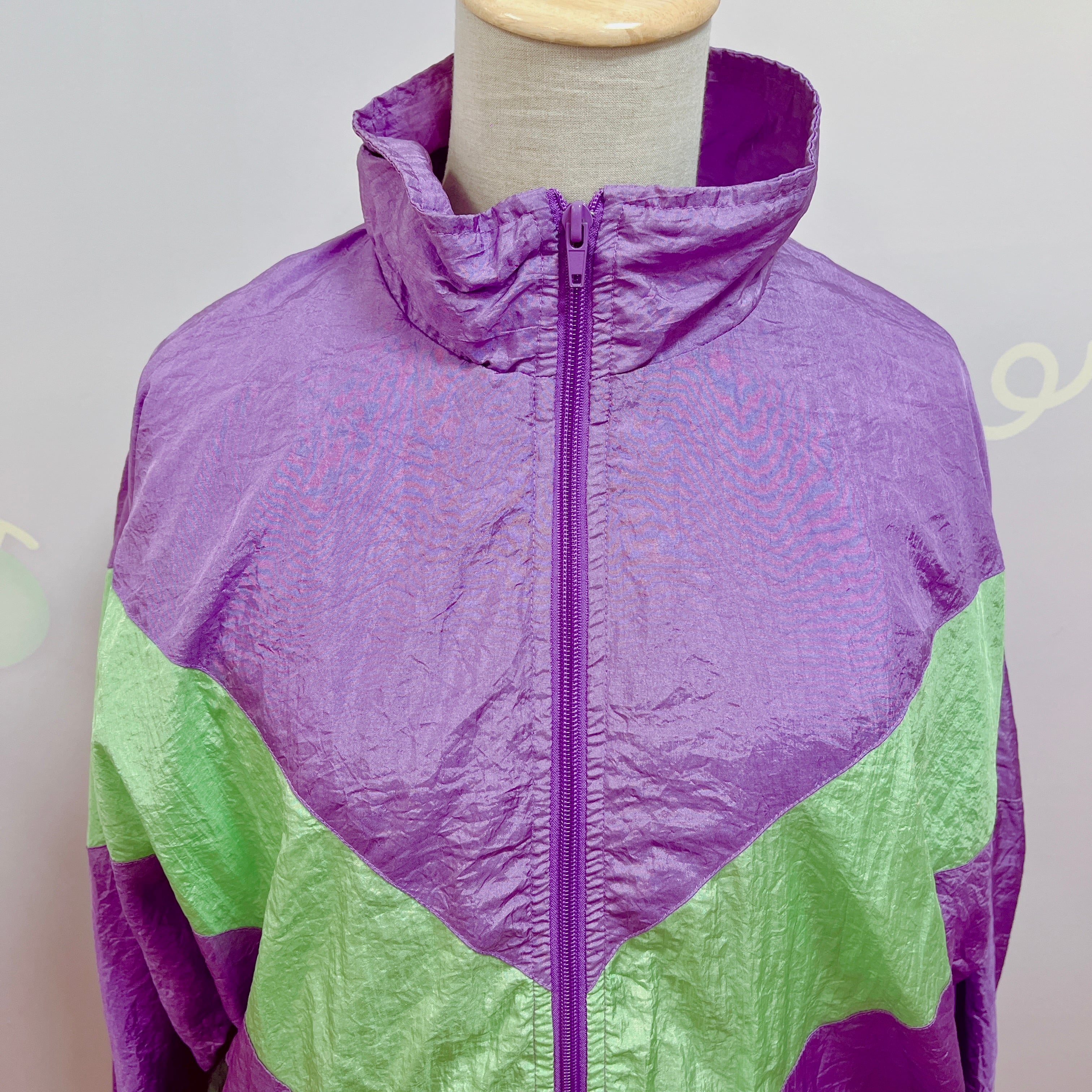 Vtg ナイロンブルゾン パープル×黄緑