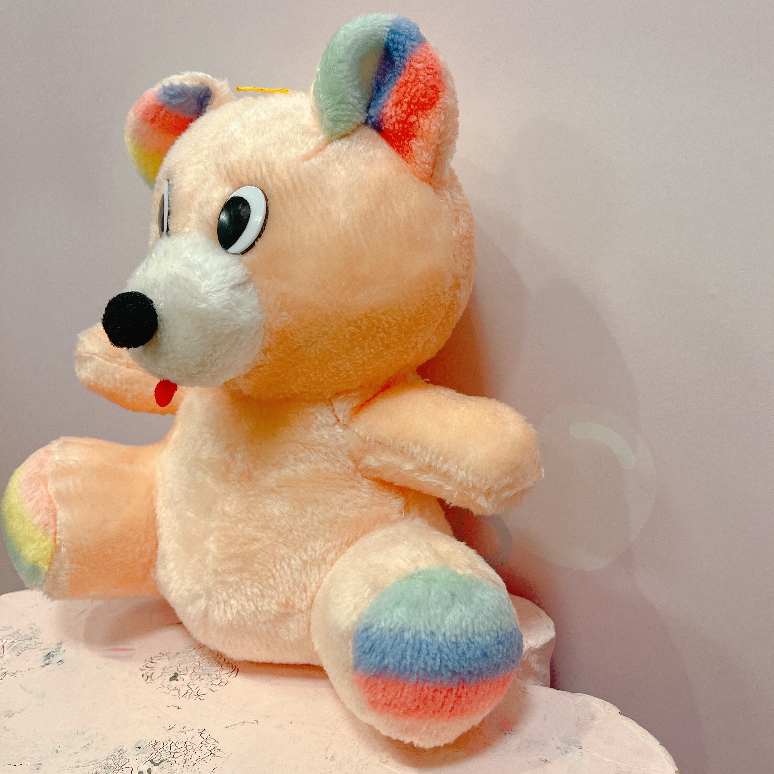 Vtg ぬいぐるみ くま オレンジ×レインボー