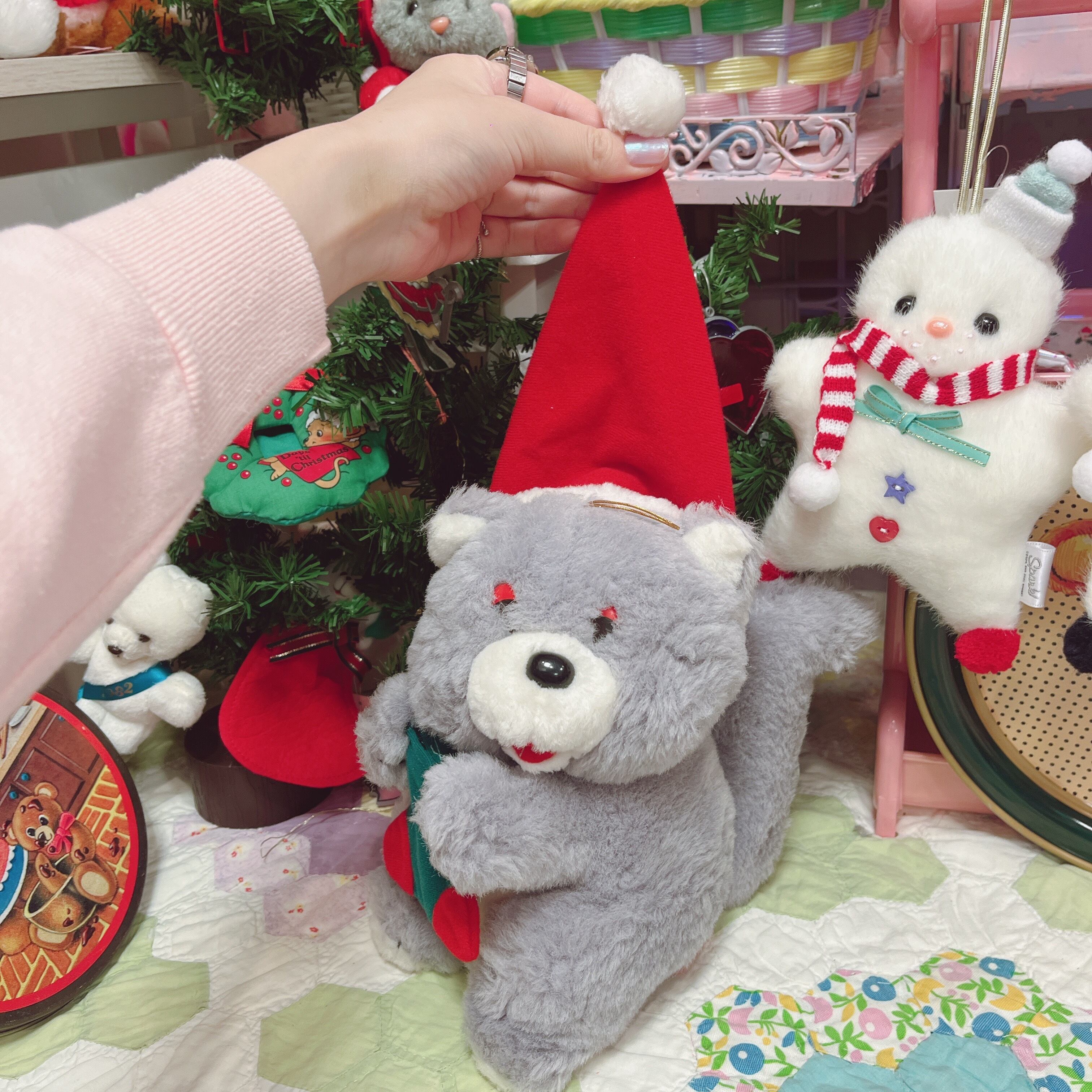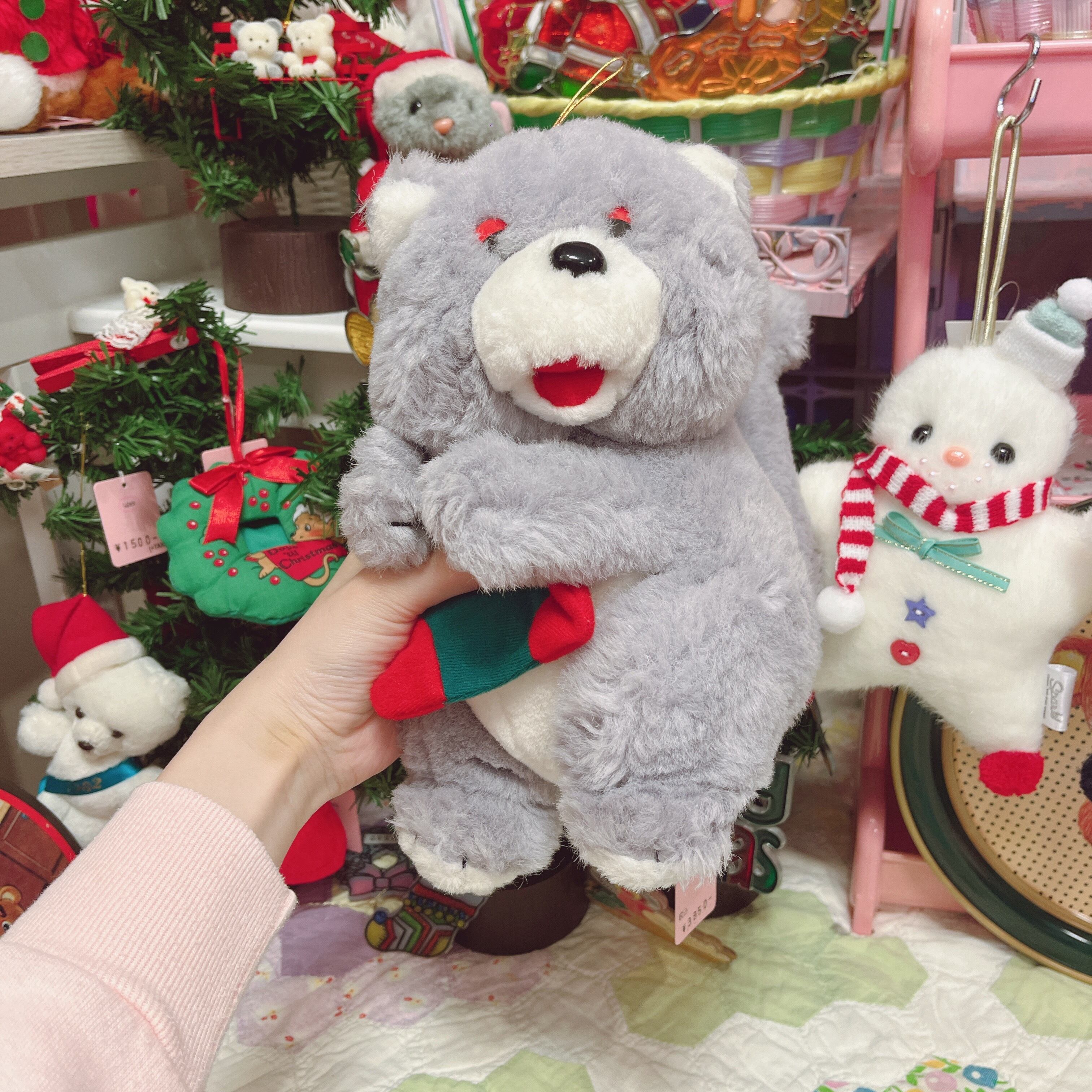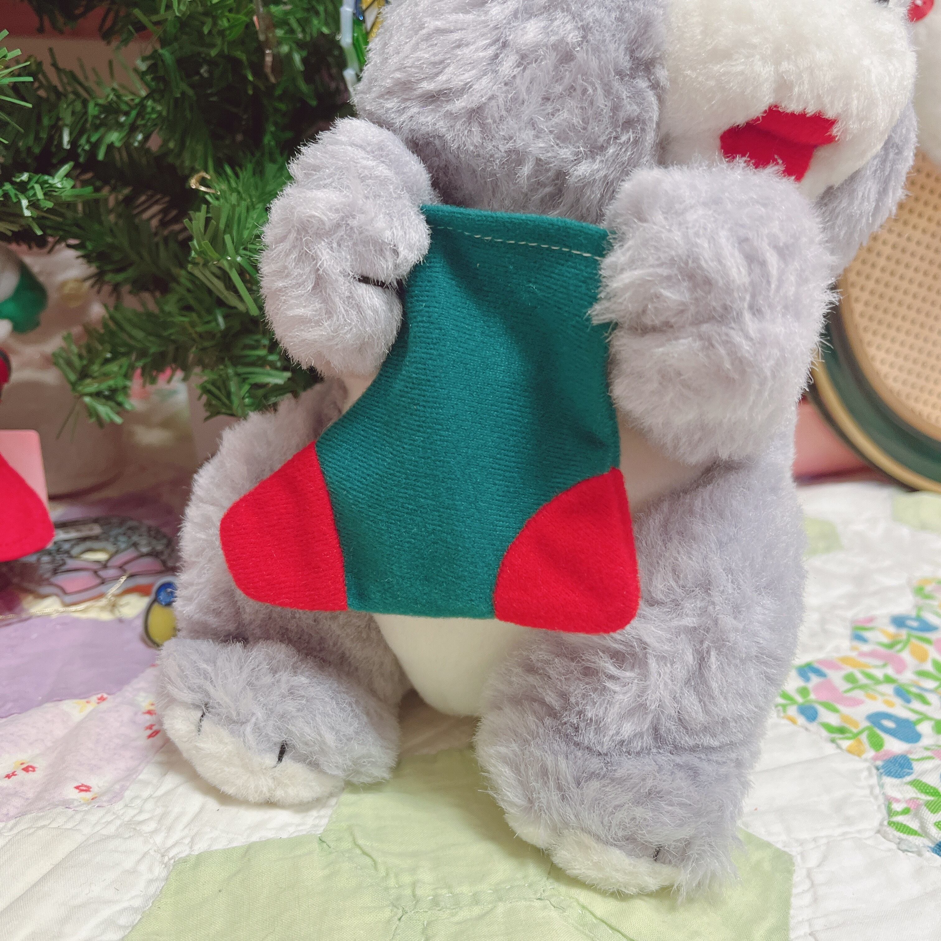 Vtg クリスマスぬいぐるみ グレー猫サンタ