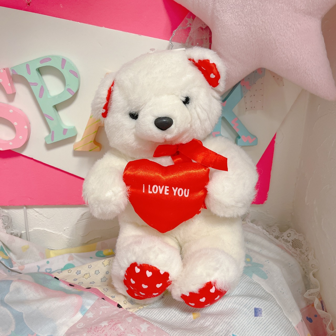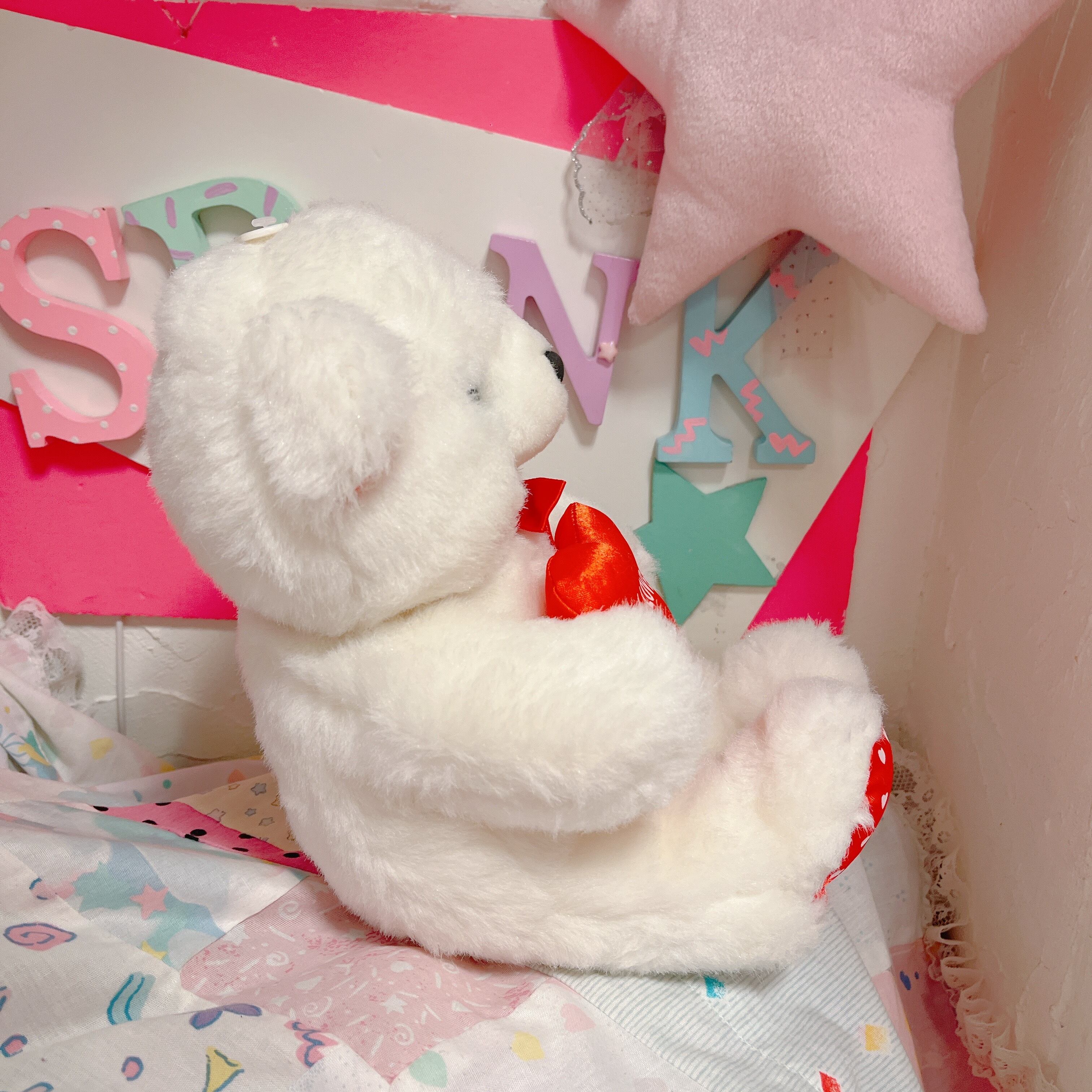 Vtg バレンタインぬいぐるみ 白くま 赤ハート